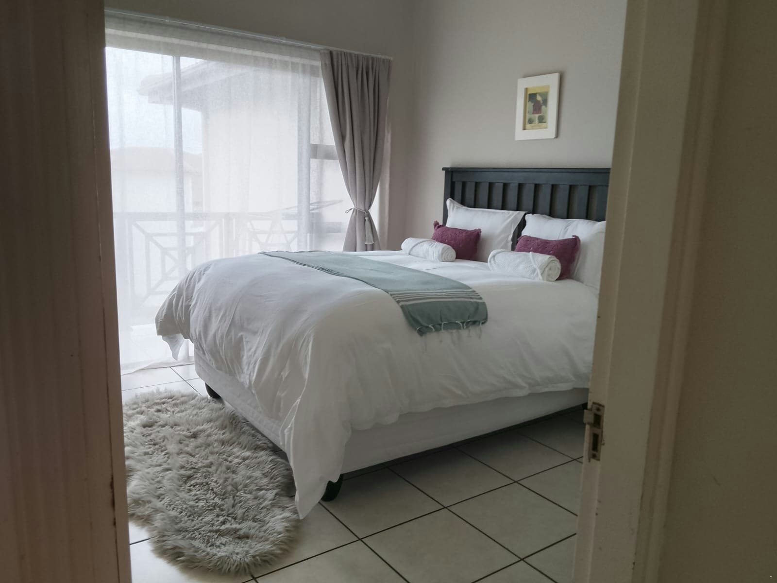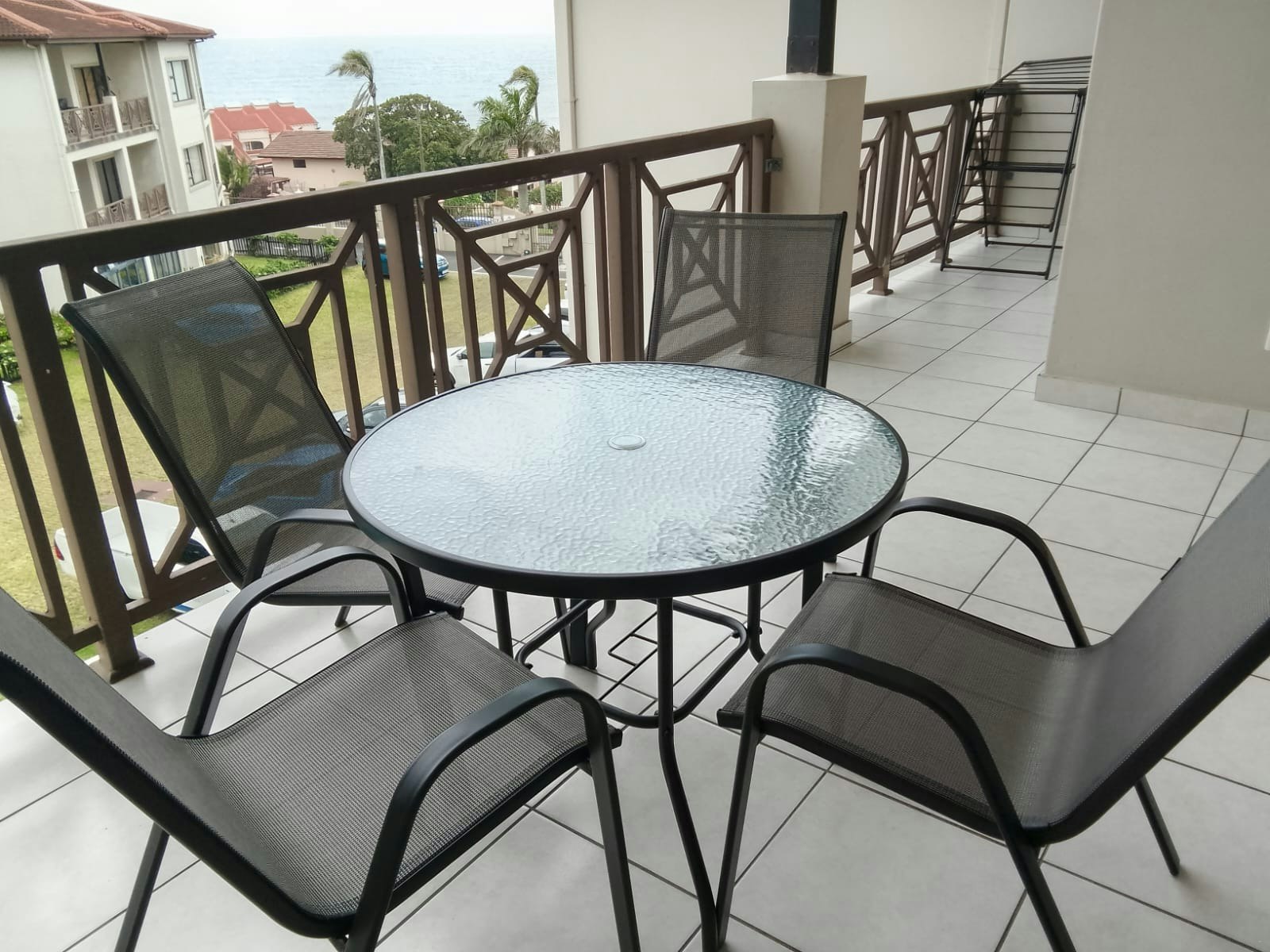 Relax on the spacious balcony, ideal for sundowners. Guests have access to communal facilities, which include outdoor seating, a braai area, and a refreshing swimming pool—perfect for cooling off on warm summer days.