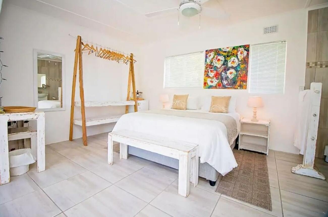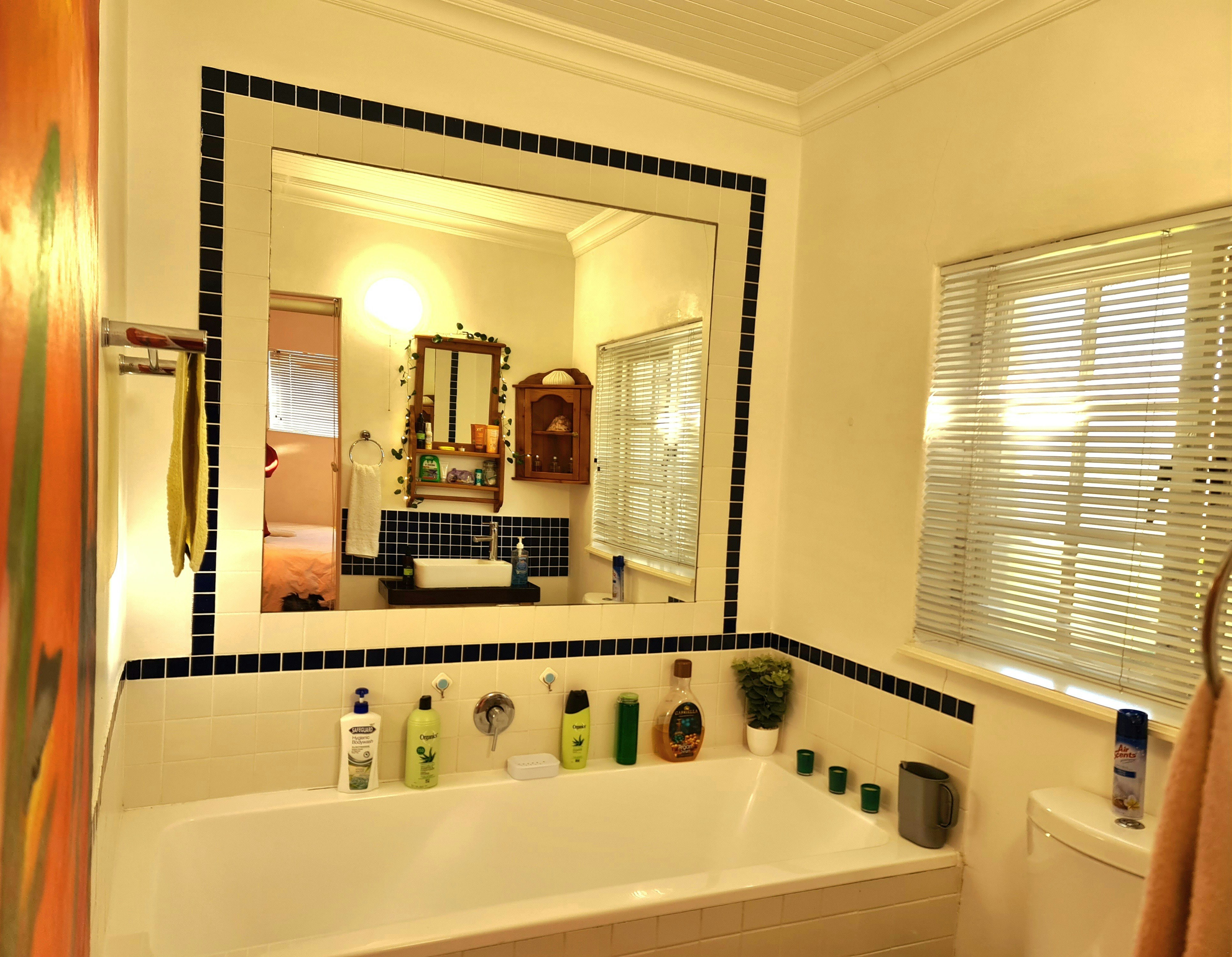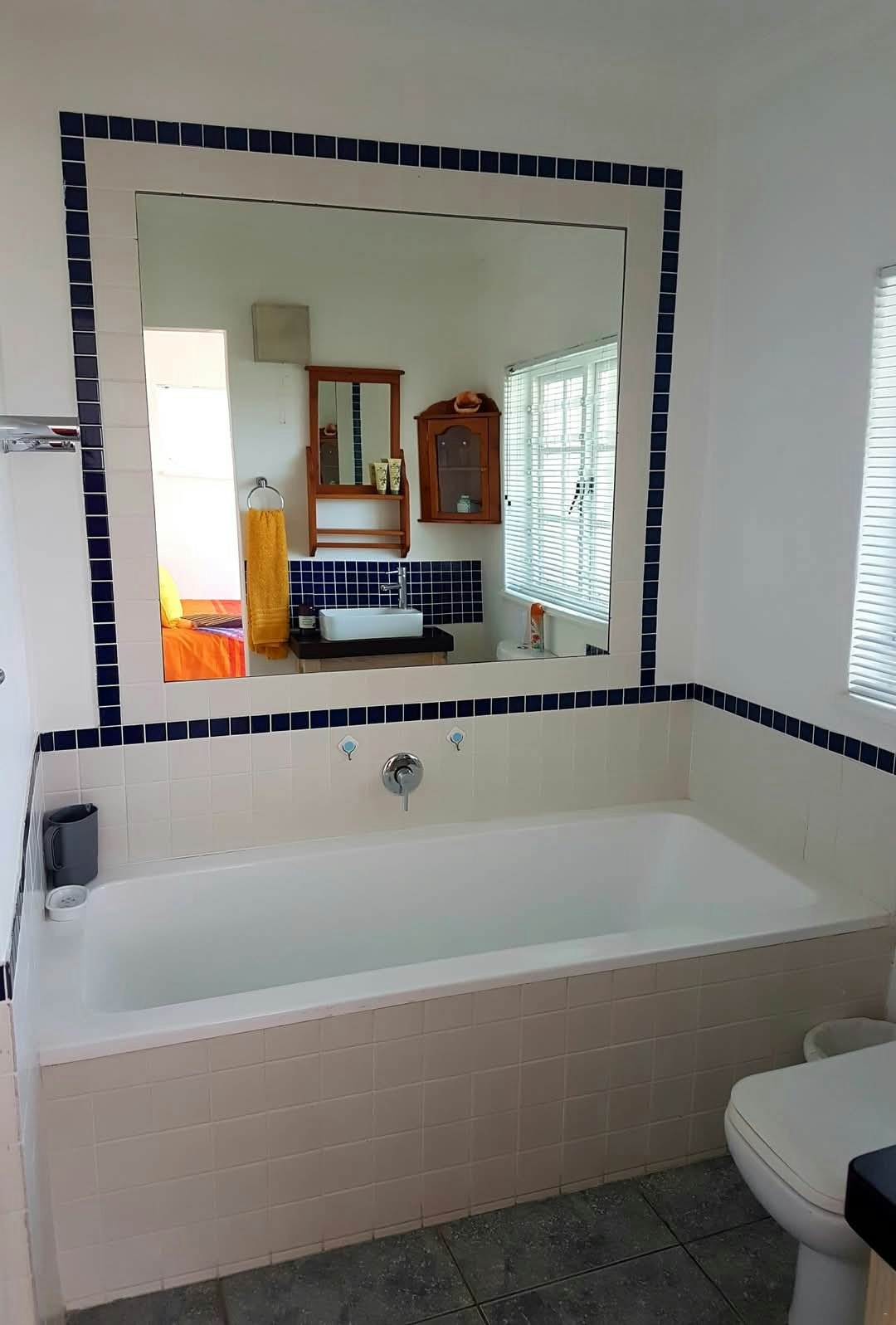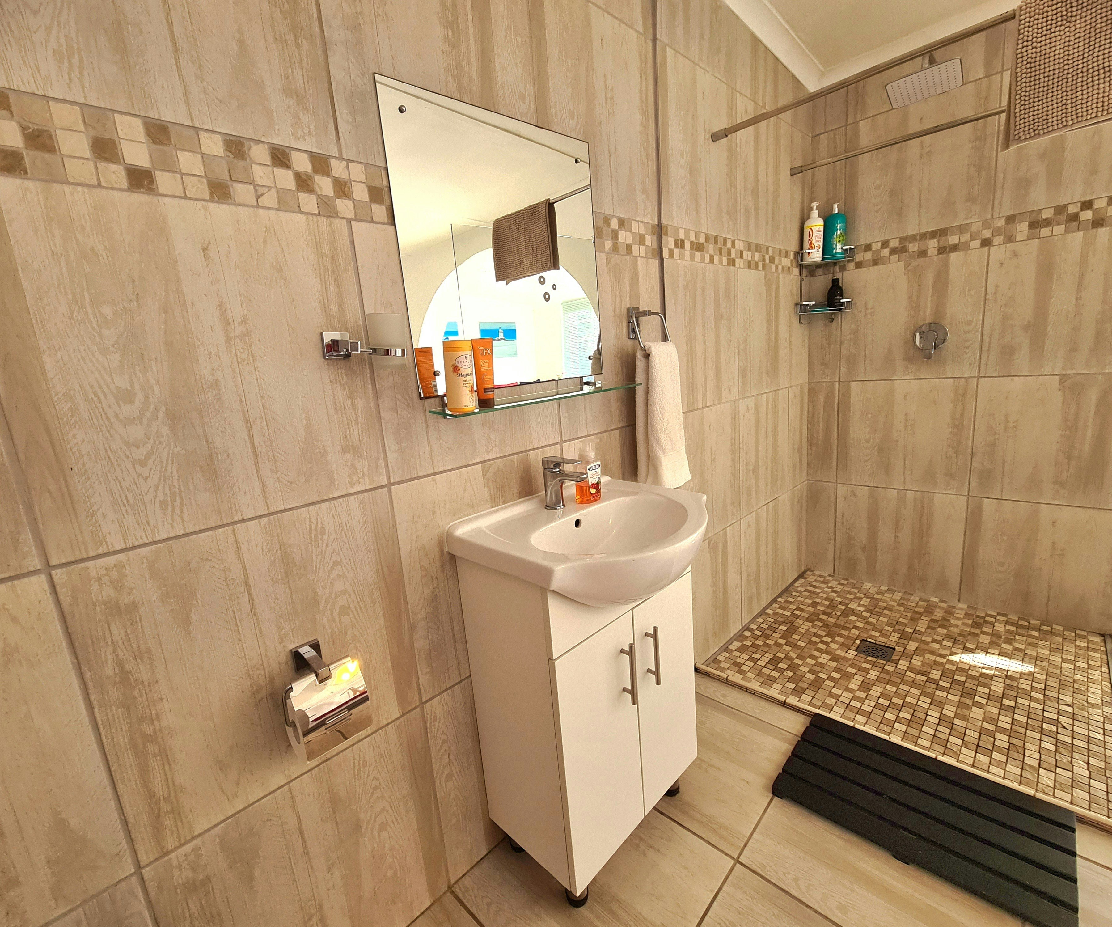 Deluxe Chalet is the largest of the 3 chalets on the property. It is spacious and comprises an open-plan bedroom with a queen-size bed and an en-suite open-plan bathroom with a shower, basin and toilet. The chalet comprises a living area and a kitchenette. The kitchenette is equipped with a fridge, microwave, cutlery and crockery, kettle, and a plunger for filter coffee. The front glass sliding door opens up to the communal swimming pool with a mountain view. In addition, the chalet is equipped with free uncapped Wi-Fi and a TV with selected DStv channels.