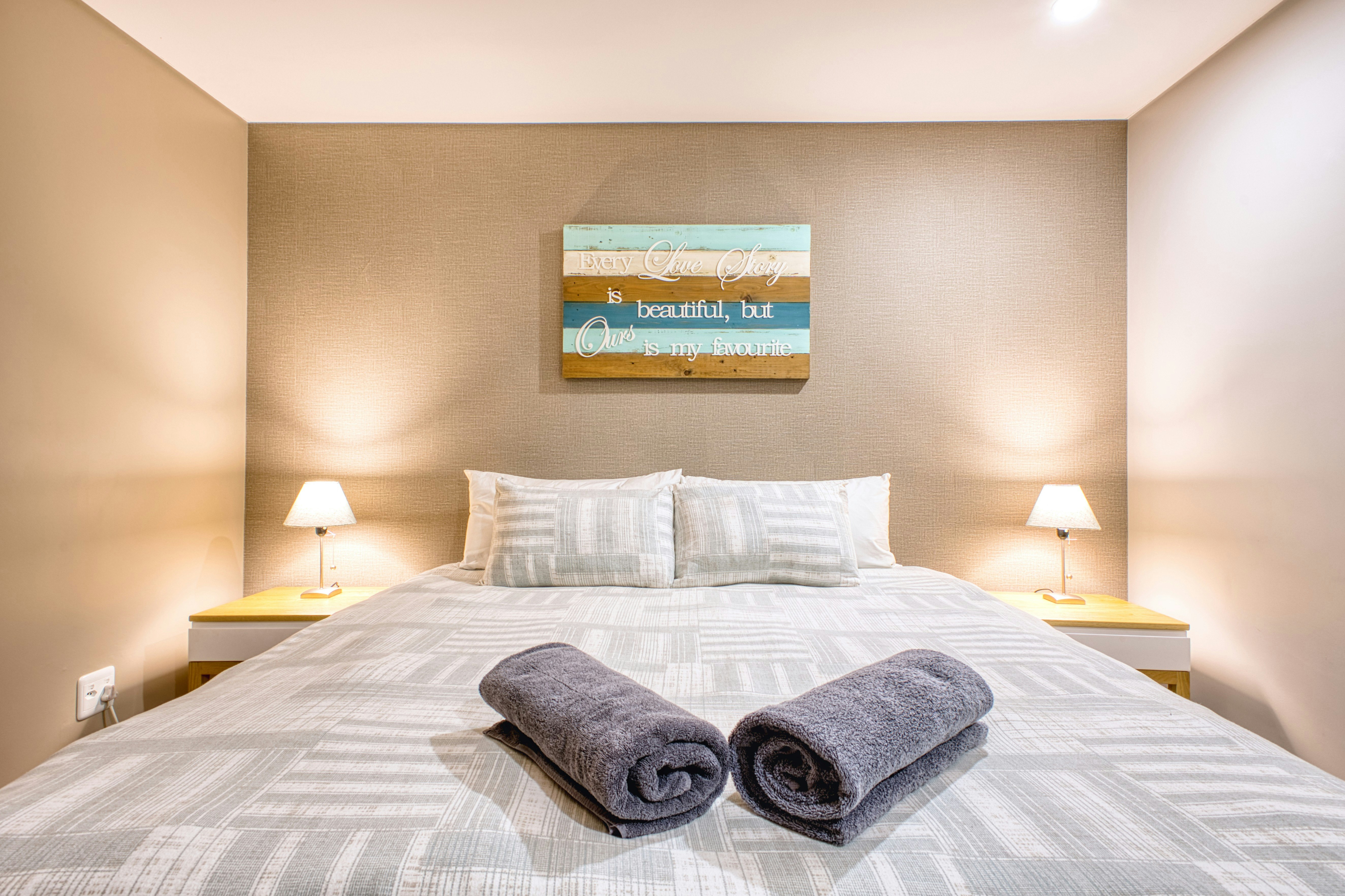 This holiday home can accommodate up to 6 guests and comprises 3 bedrooms and 2 bathrooms. 2 of the bedrooms are furnished with king-size beds, 1 of which includes an en-suite bathroom fitted with a shower, bath, washbasin, and toilet. The remaining bedroom contains a double sleeper couch, and the second bathroom is fitted with a shower, washbasin, and toilet.
