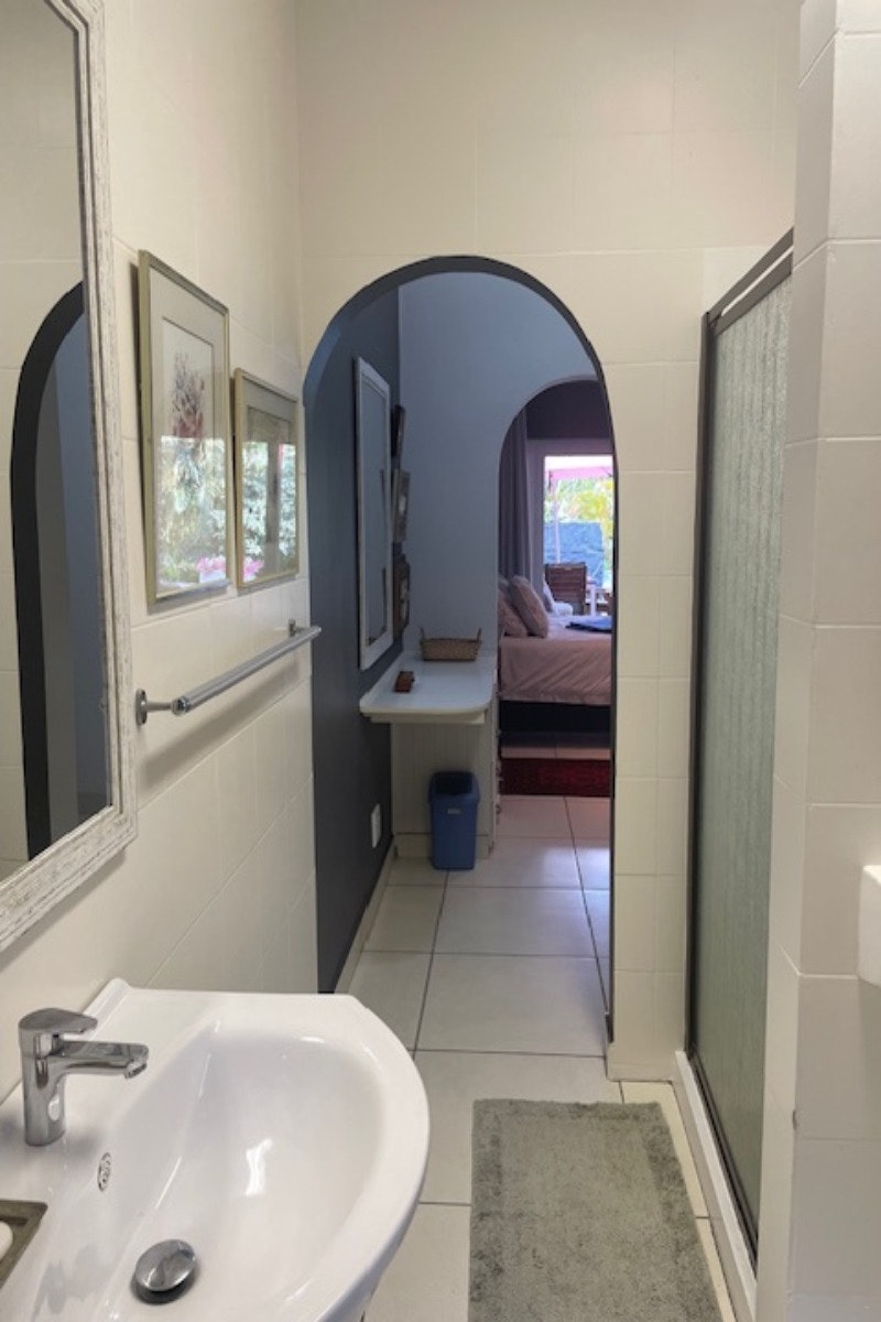 Guests can relax on a private patio, enjoy the communal braai facilities, or take a refreshing dip in the shared swimming pool. Secure on-site parking is available.