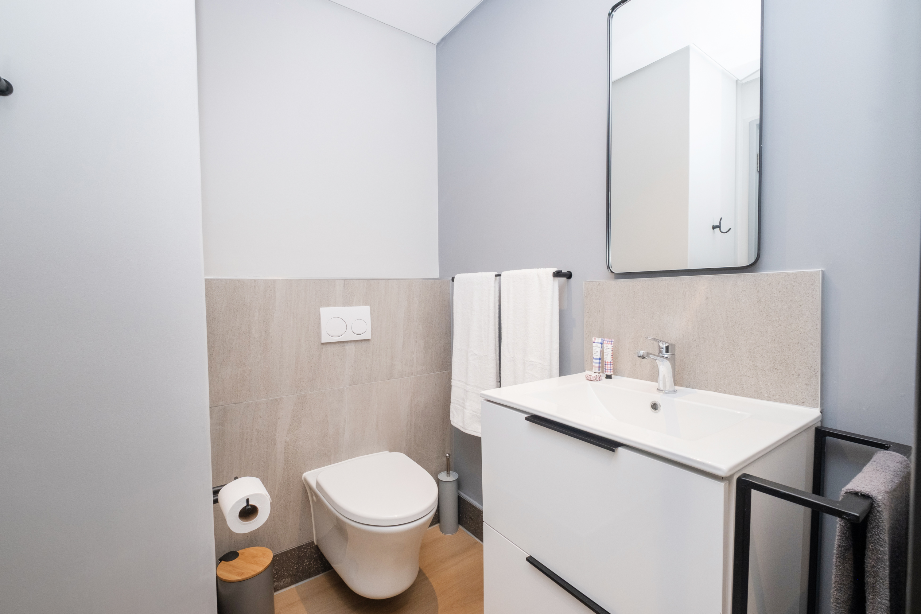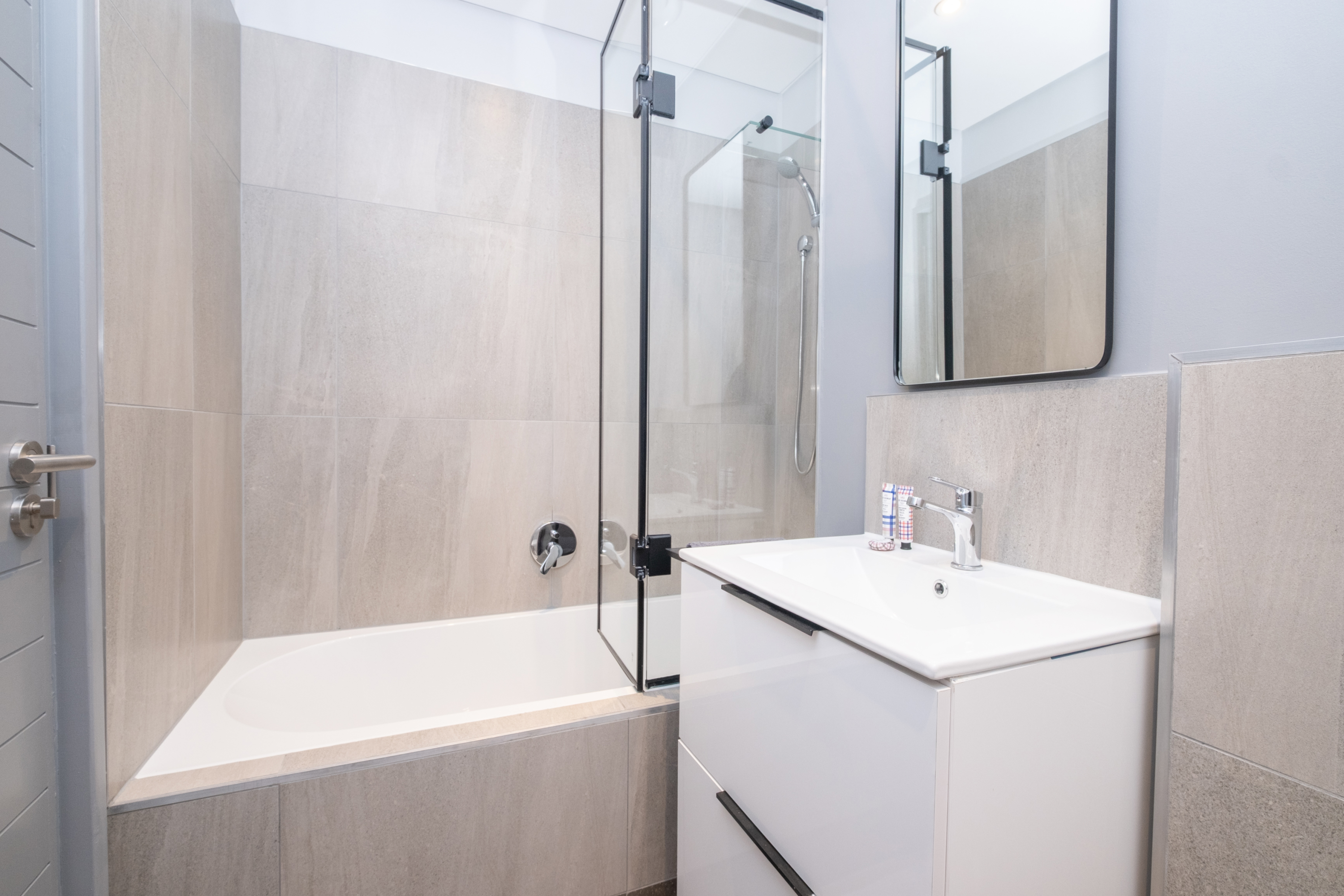 This apartment can accommodate up to 4 guests and comprises 2 bedrooms and 2 bathrooms. Both bedrooms are furnished with a queen-size bed. The first bedroom has access to an en-suite bathroom fitted with a shower, washbasin and toilet, while the shared bathroom contains a shower fixed over the bath. Linen and bath towels are provided.