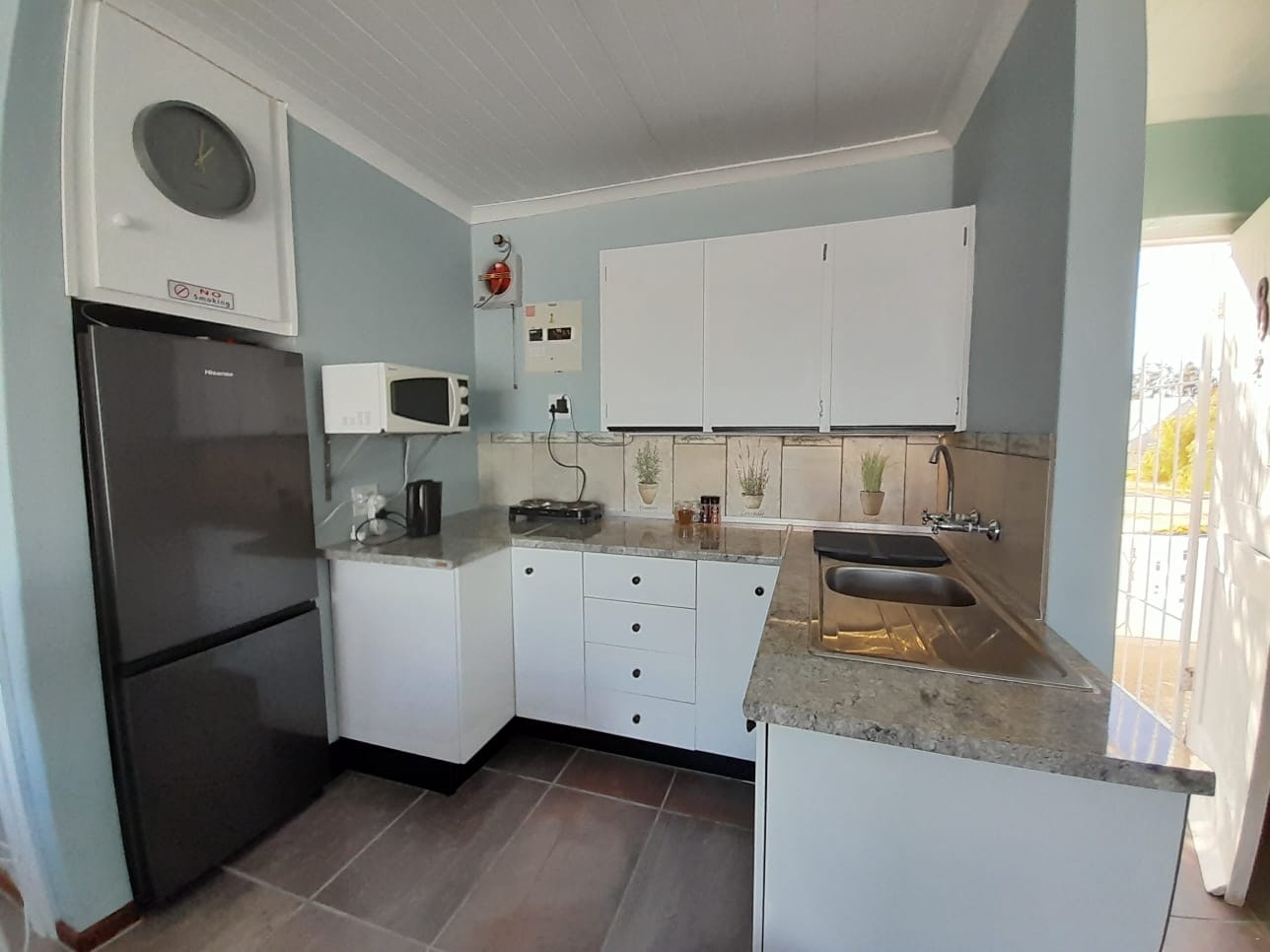 The kitchen is equipped with a fridge-freezer, a 2-plate stove, a kettle, and a microwave. The living area features a comfy seating space, a TV, and a dining area. It opens up onto a spacious balcony with a built-in braai area, providing guests with uninterrupted views of the river. Additionally, the property has complimentary Wi-Fi and secure parking in a lock-up garage.