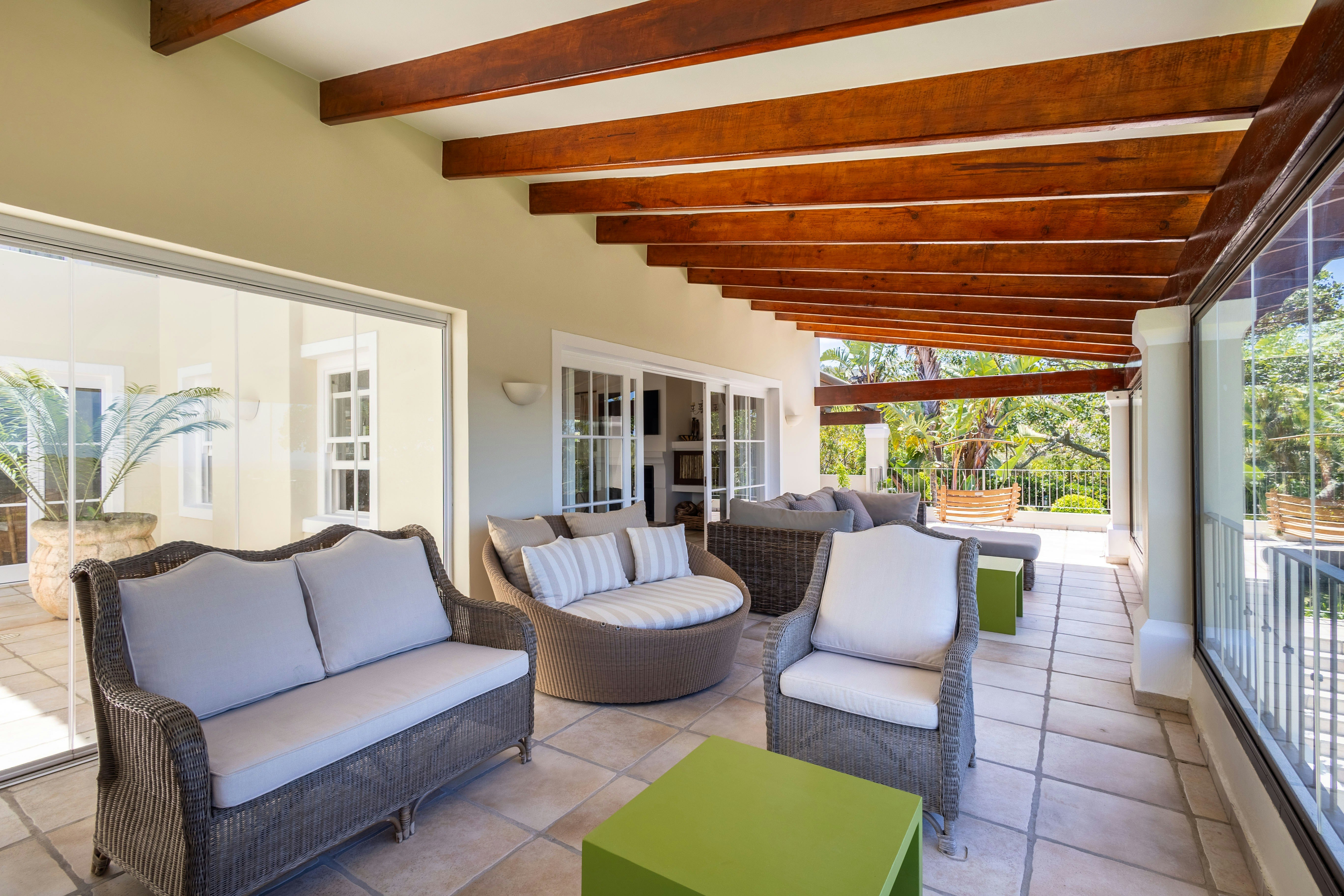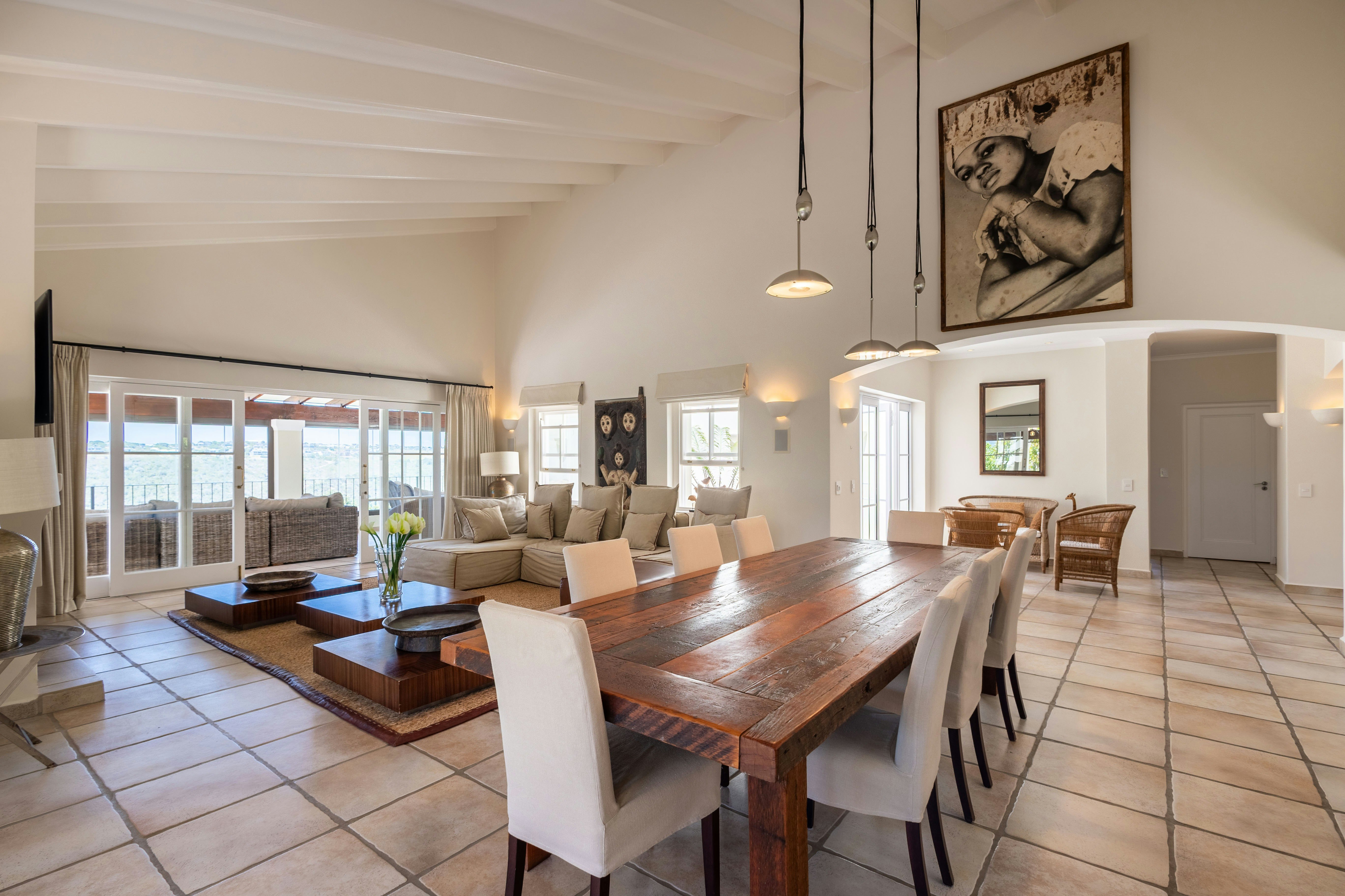 Die ingangsvlak vorm die hart van die huis en beskik oor 'n oopplan-sitkamer, eetkamer en volledig toegeruste kombuis. Die sitkamer maak oop na 'n balkon wat uitkyk oor die tuin en swembad. Die kombuis is toegerus met 'n yskas-vrieskas, stoof, asmasjien en 'n tuimeldroër, oond, mikrogolfoond, skottelgoedwasser en basiese kookgerei. Die sitkamer het gemaklike sitplek en 'n TV met stromingsdienste. Bykomende geriewe sluit WiFi in.