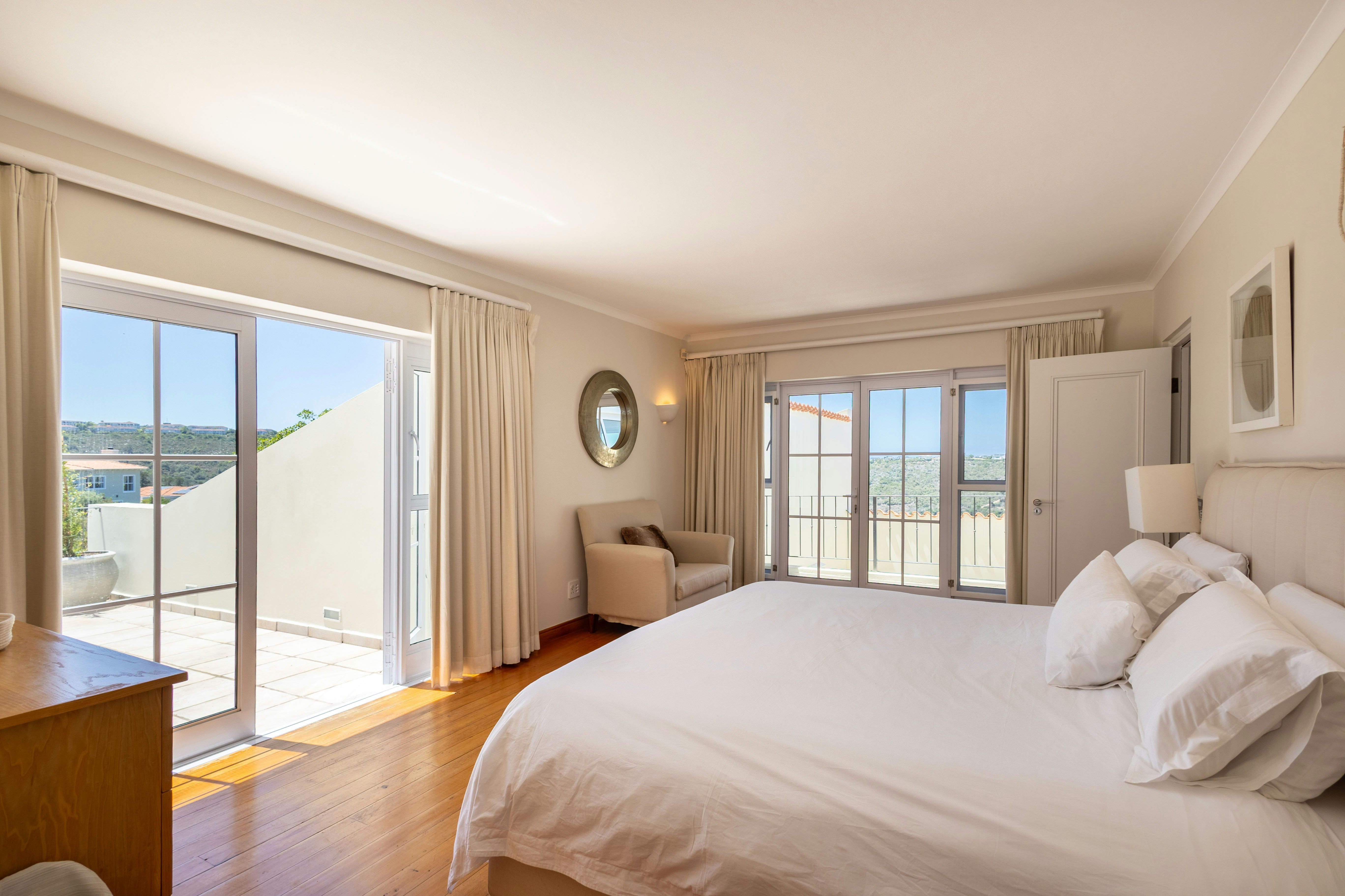 Die eerste en tweede slaapkamers is op die ingangsvlak geleë. Die eerste slaapkamer is ingerig met 'n koningingrootte-bed en het 'n en suite-badkamer met 'n stort, toilet en wasbak. Hierdie kamer maak oop na 'n privaat patio met sonstoele. Die tweede slaapkamer het 'n koninggrootte-bed en 'n en suite-badkamer met 'n bad, stort, toilet en wasbak. Hierdie kamer maak oop na 'n balkon met uitsigte oor die tuin. Die derde en vierde slaapkamers is bo geleë. Beide kamers is ingerig met koninggrootte-beddens. Die derde slaapkamer het 'n en suite-badkamer met 'n bad, stort, toilet en wasbak, terwyl die vierde slaapkamer 'n en suite-badkamer met 'n stort, toilet en wasbak het. Beddegoed en badhanddoeke word voorsien; gaste word egter aangeraai om hul eie strandhanddoeke saam te bring.