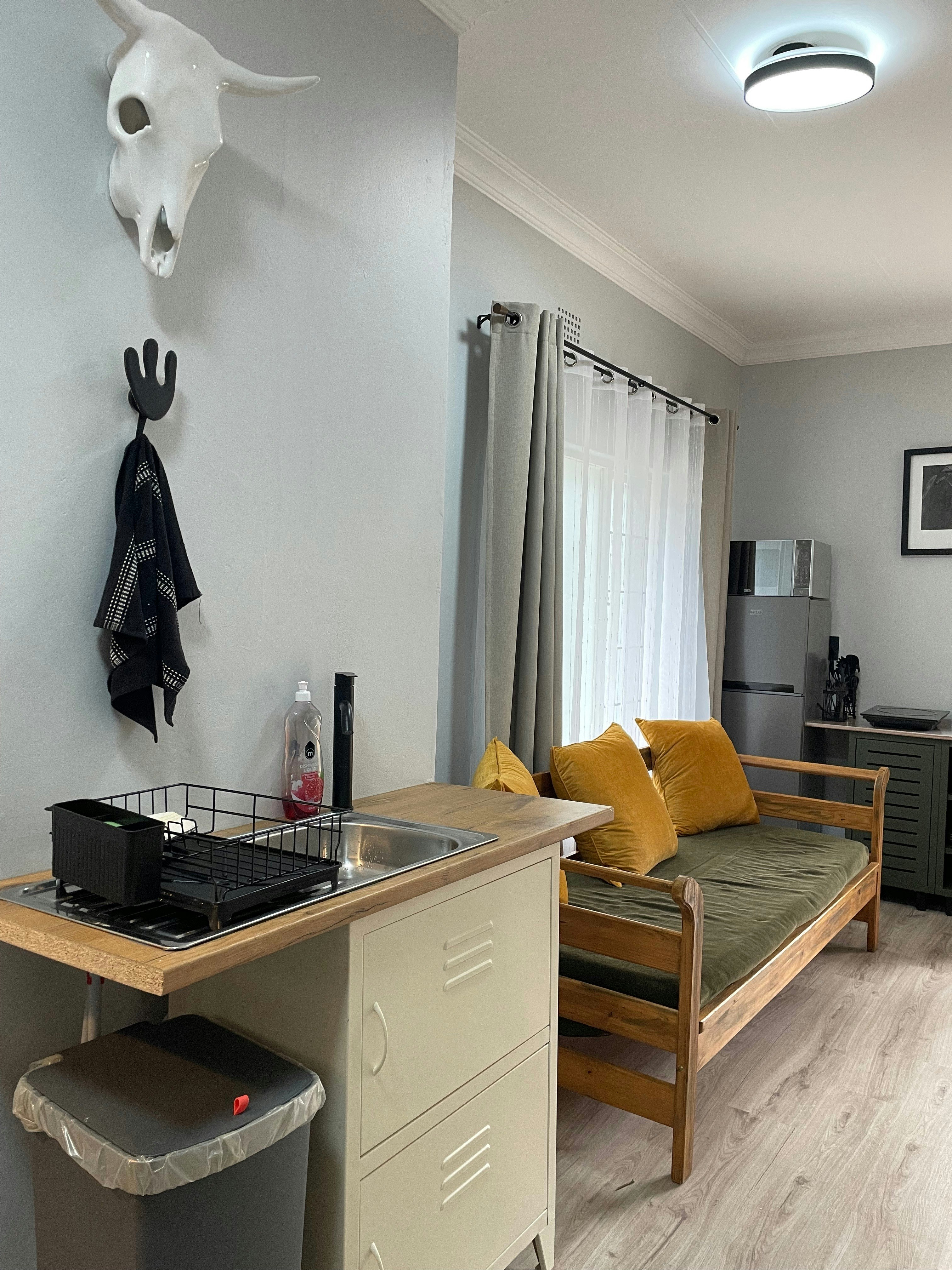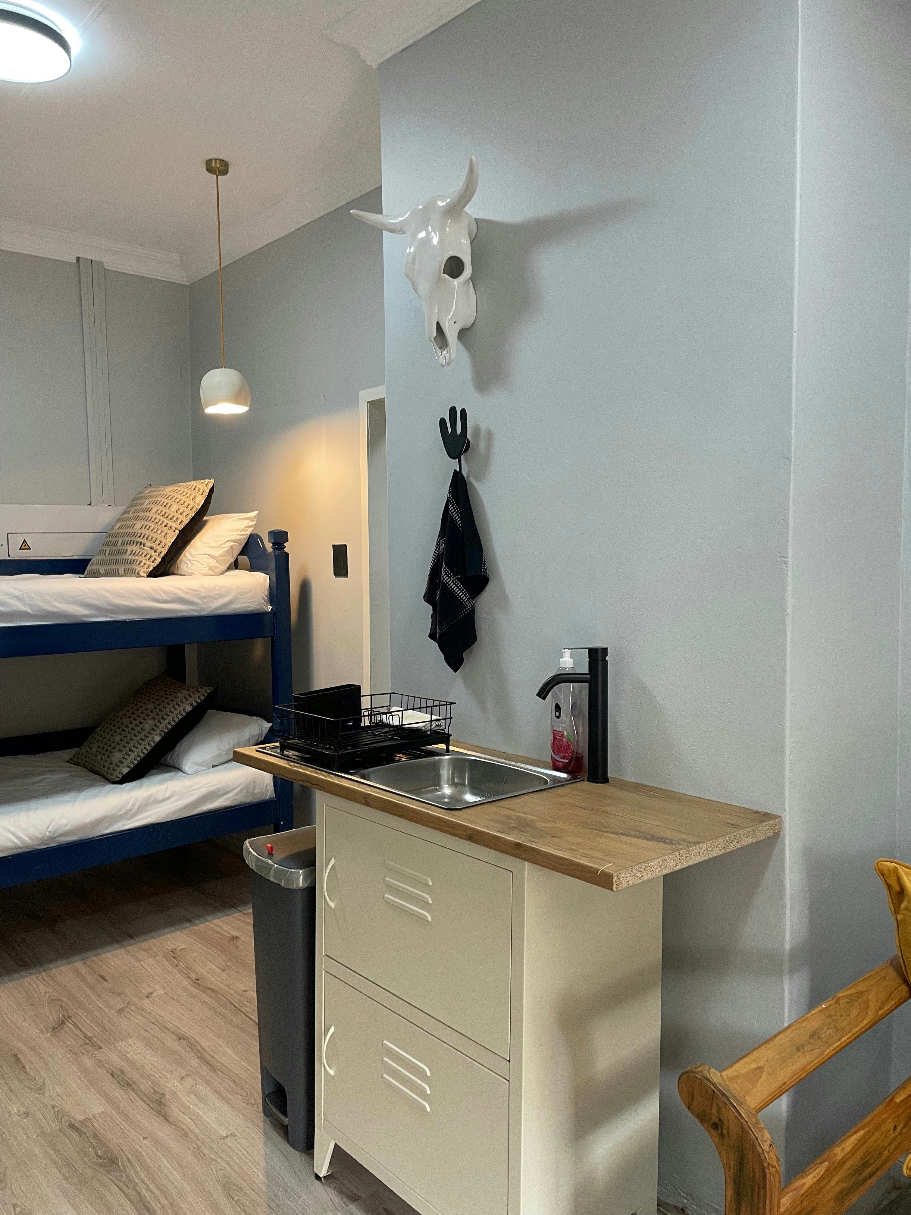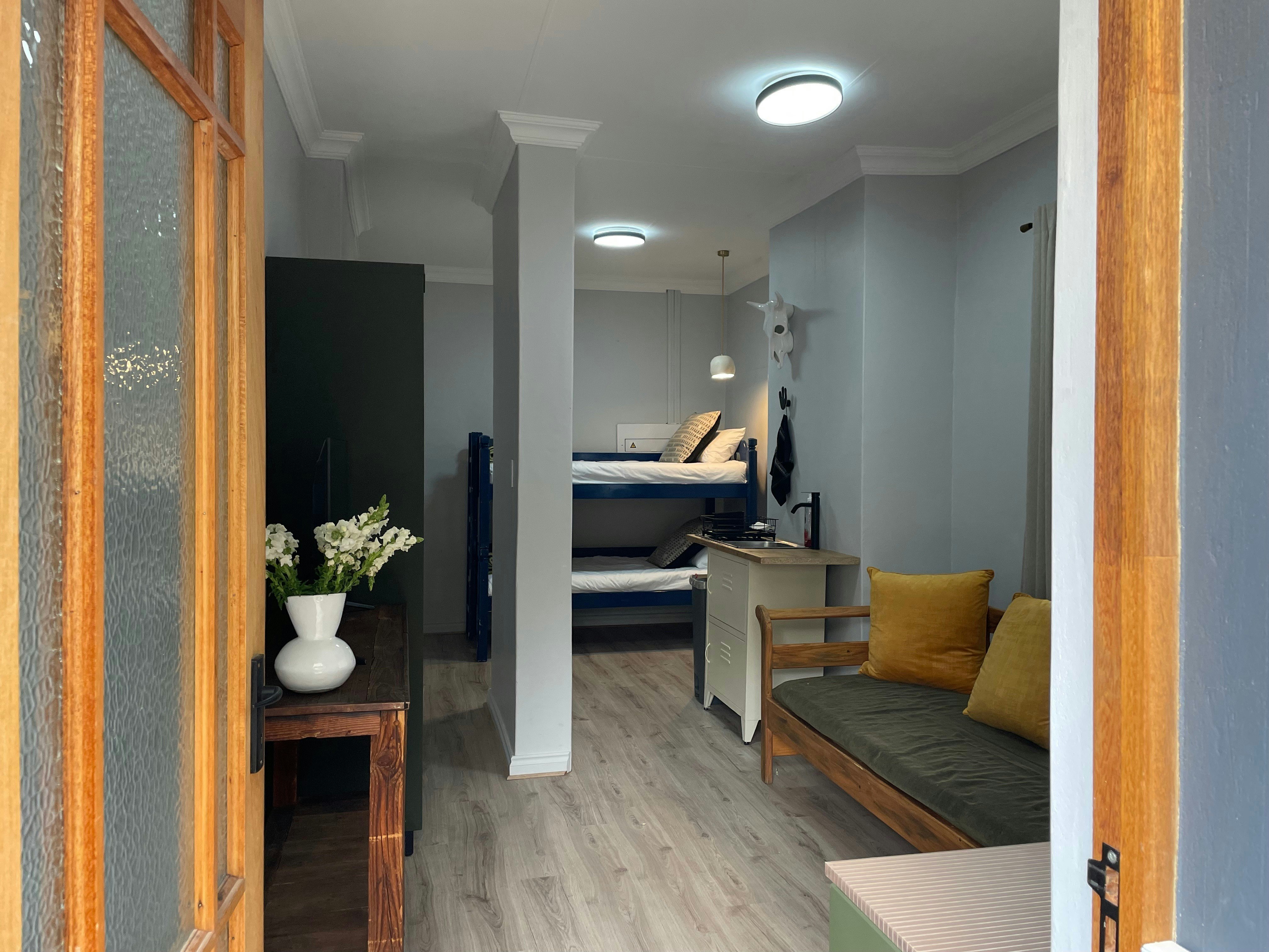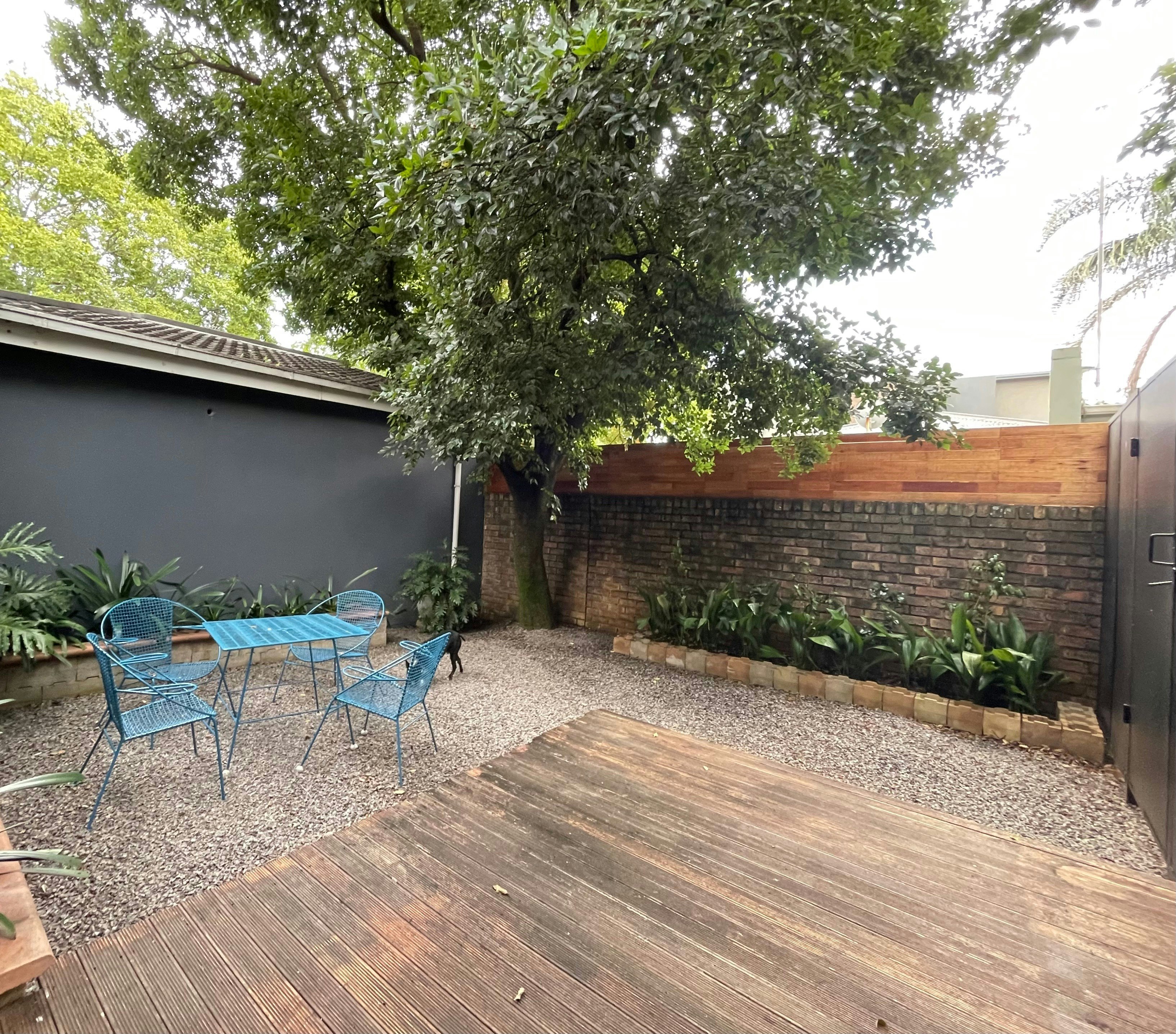 83 on Eighth bied twee knus selfsorgkamers op die gasheer se perseel in Menlopark, Pretoria – ideaal vir paartjies wat Pretoria toe kom vir vermaak, skoolsport of werk, en op soek is na gerieflike, korttermynverblyf. Die oopplan-kamers is gemeubileer met ’n dubbelbed en elkeen beskik oor ’n en suite-badkamer met stort (met ’n trappie), toilet en wasbak. Kamer 1 het ’n lessenaar, TV en ’n volledig toegeruste kombuisie met induksieplaat, yskas, mikrogolf en ketel. ’n Privaat tuin met sitplek vir twee bied ’n rustige buitelug-ruimte; ’n Weber is op versoek beskikbaar vir buitebraai. Kamer 2 beskik oor ’n kleiner kombuisie met yskas, mikrogolf en ketel, en ’n gedeelde sitarea buite vir oggendkoffie of tee. Gratis WiFi en veilige parkering agter ’n elektriese hek is beskikbaar. Die ligging is uitstekend – sentraal tussen Menlyn Main, Brooklyn en Menlyn winkelsentrums, asook Wilgers en Groenkloof Life hospitale. Nabygeleë besienswaardighede sluit in die Pretoria Country Club, Austin Roberts-voëlheiligdom, Dinokeng Natuurreservaat, asook verskeie voëlkyk-, fietsry-, stap- en perdryroetes.