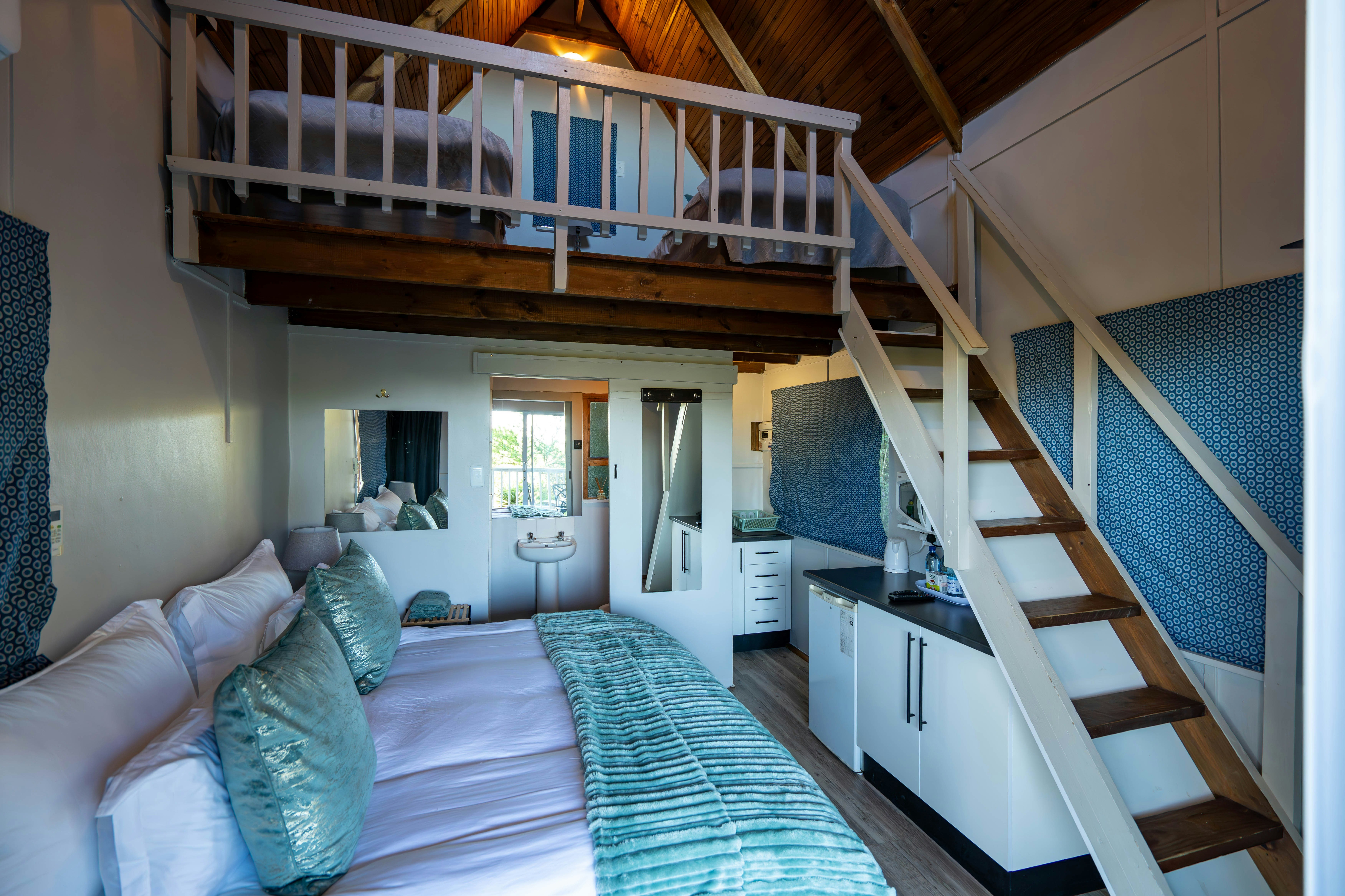 Accommodation is offered in cosy cabins and guest rooms, each featuring en-suite bathrooms, fans, heaters and private entrances. In addition, the units feature comfortable beds, linen and bath towels, kitchenettes with fridges, tea- and coffee-making facilities and a microwave, and for the guests’ entertainment, there is a TV. Access to Wi-Fi is available.