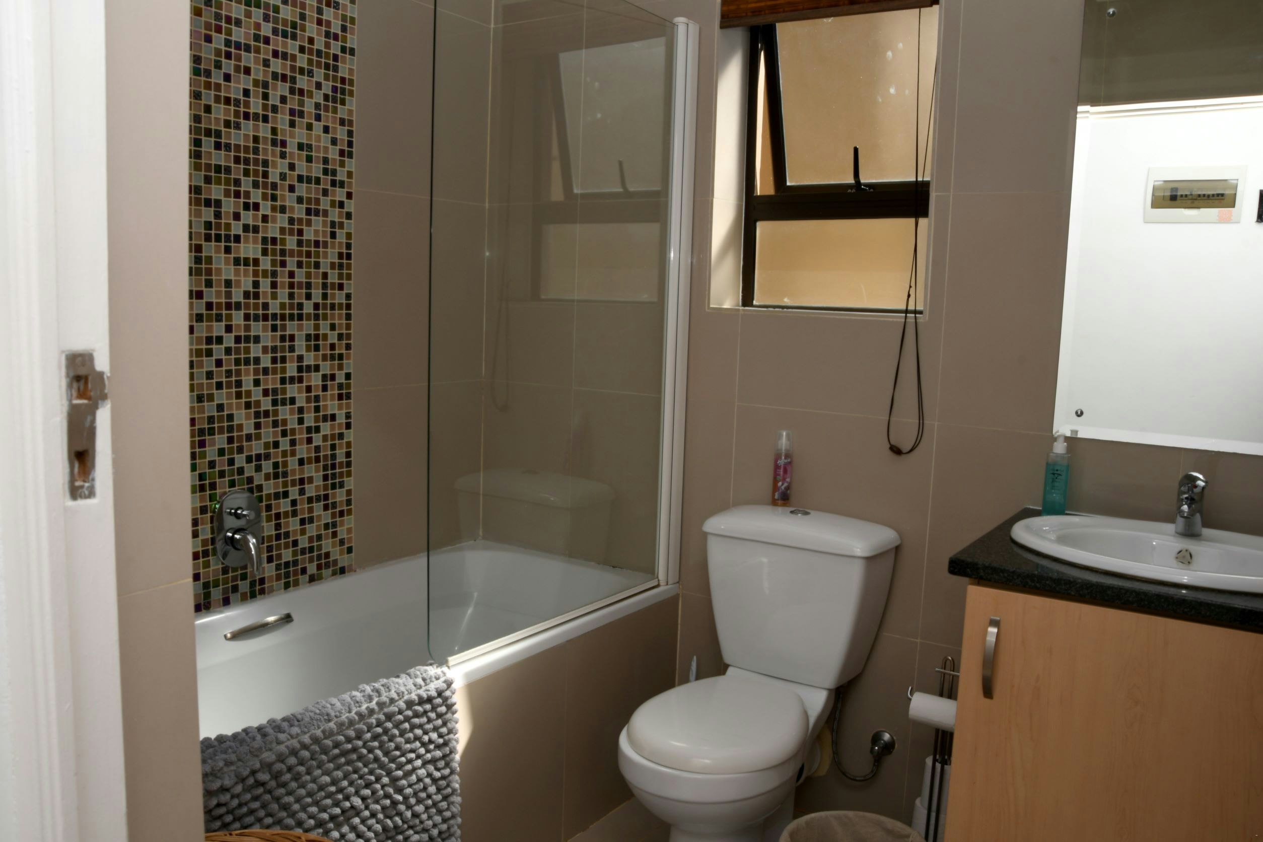The open-plan lounge has a TV, and opens onto a covered balcony which features outdoor furniture and a gas braai facility. Secure parking is available for 1 car. The balcony offers unobstructed views of the ocean and is the ideal whale watching spot during whale watching season.