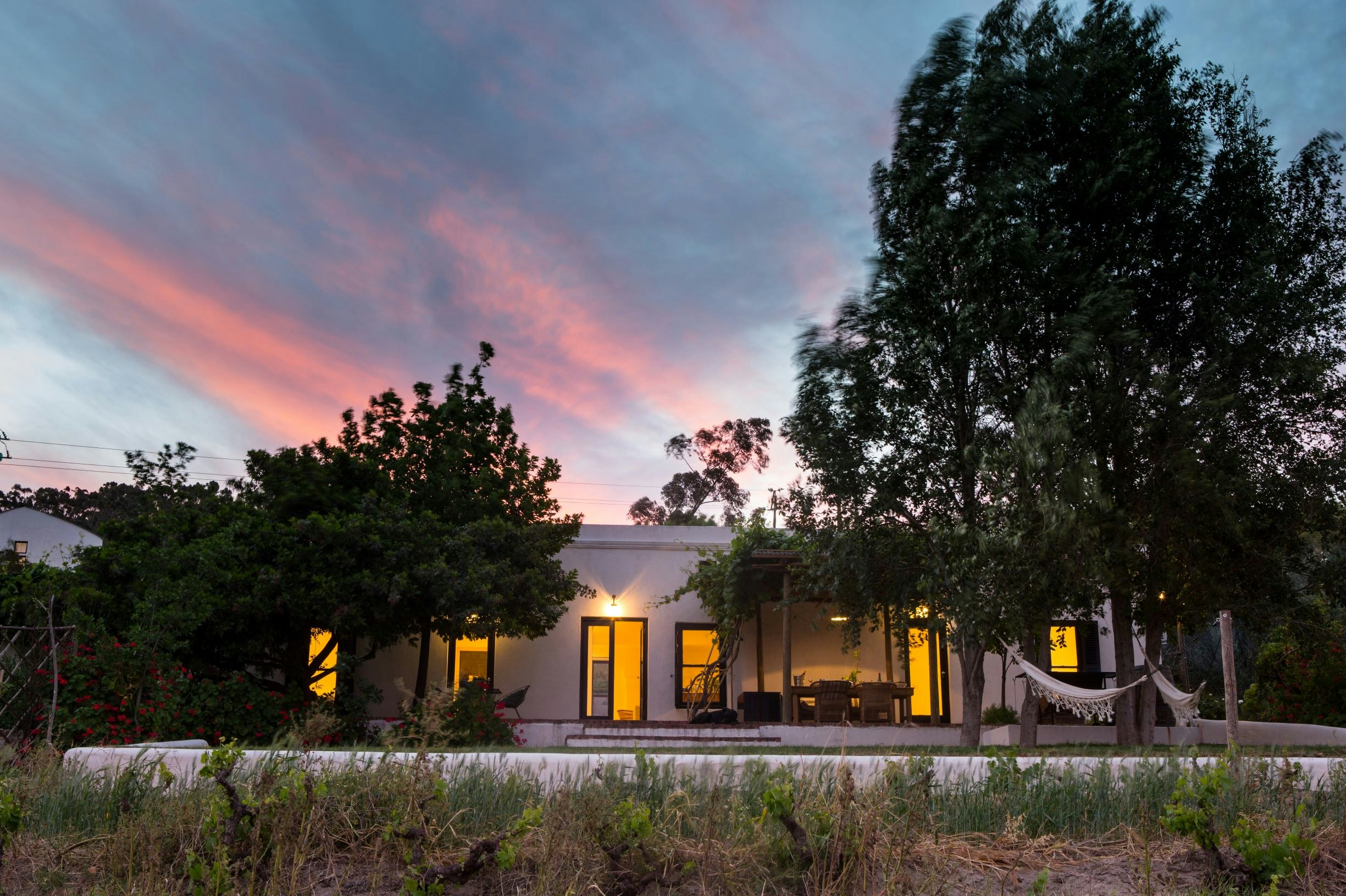 Hierdie gerestoureerde kothuis, meer as 100 jaar oud, is tussen die ou wingerdstokke, die groentetuin en plaasdam geleë en bied slaapplek vir 4 volwassenes en 1 baba. 'n Ekstra kind kan ook op versoek geakkommodeer word. Die kothuis is volledig toegerus vir selfsorg met 2 slaapkamers met en suite-badkamers, 'n kombuis en 'n sitkamer. Die slaapkamers is gemeubileer met 2 enkelbeddens wat in 'n koninggrootte-bed omskep kan word. Goeie kwaliteit linne en handdoeke word voorsien, sowel as 'n plaaslik verkrygde, heeltemal natuurlike verskeidenheid toiletware. Die eerste slaapkamer is toegerus met 'n klein kluis en het 'n en suite-badkamer met 'n rolblad en 'n buitestort. Die tweede en suite-badkamer het 'n stort. Elke kamer is toegerus met ondervloerse verhitting, lugversorging, oorhoofse waaiers, 'n haardroër, sowel as USB-proppunte. Die kombuis is volledig toegerus met 'n stoof en oond, 'n mikrogolfoond, 'n yskas, sowel as tee- en koffiemaakgeriewe, en maaltye kan by die etenstafel geniet word. Die sitkamer het 'n knus kaggel, en die leefarea maak oop na 'n oordekte stoep met buitebraaigeriewe terwyl jy die sonsondergang dophou. Gaste kan ontspan in die hangmatte, of afkoel in die privaat plaasdam.