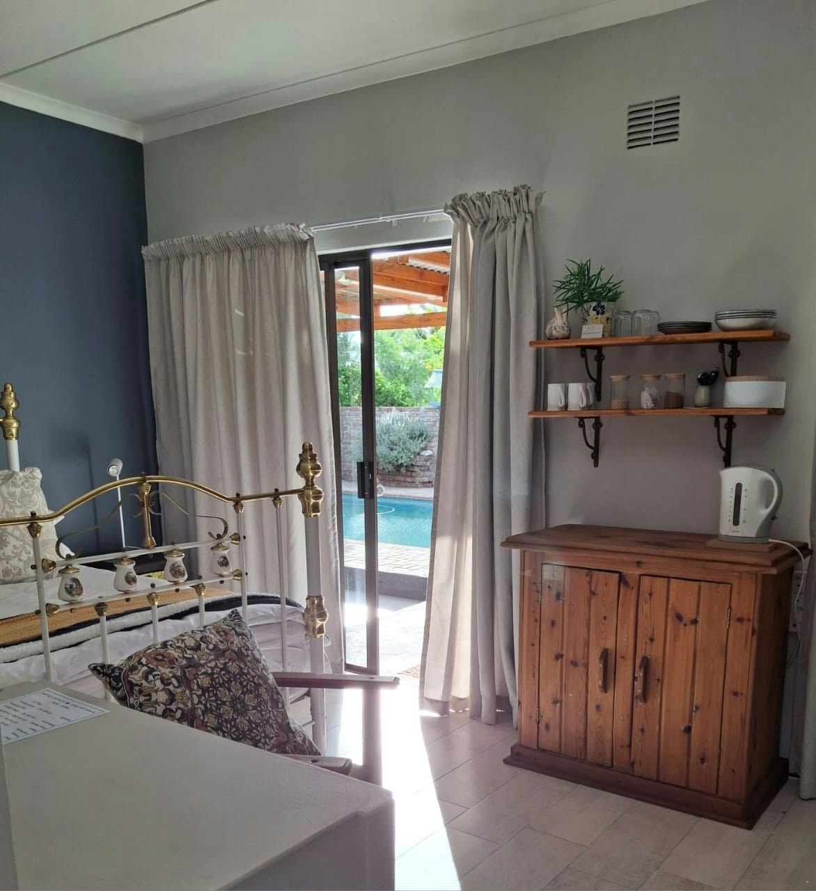 The unit opens onto a relaxing garden with outdoor seating. Guests can enjoy the shared swimming pool, braai area, and secure gated parking. This property is conveniently located near restaurants and popular activities in and around Beaufort West, including hiking, birdwatching, mountain biking, stargazing, 4x4 drives, and game viewing in the Karoo National Park.