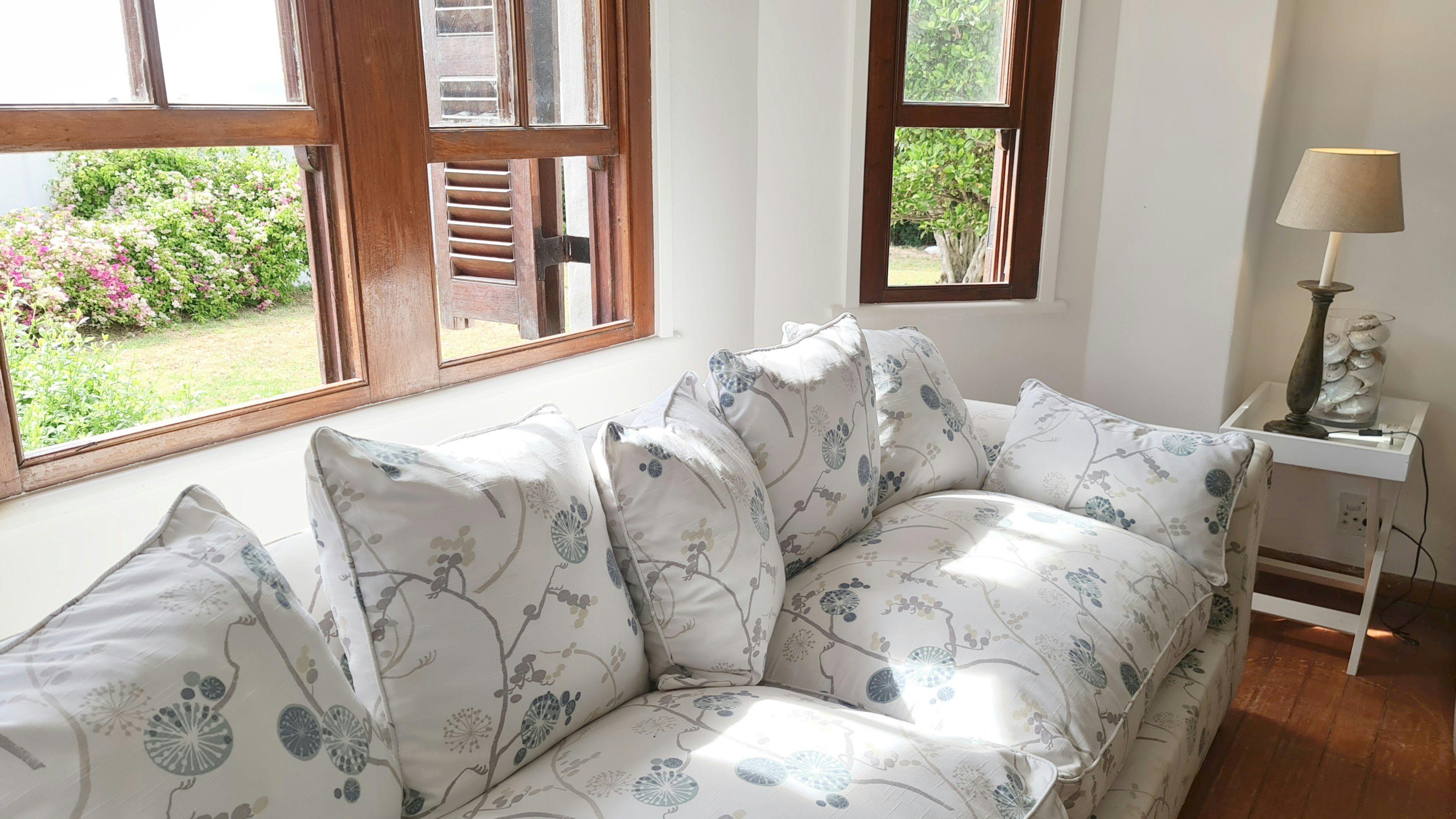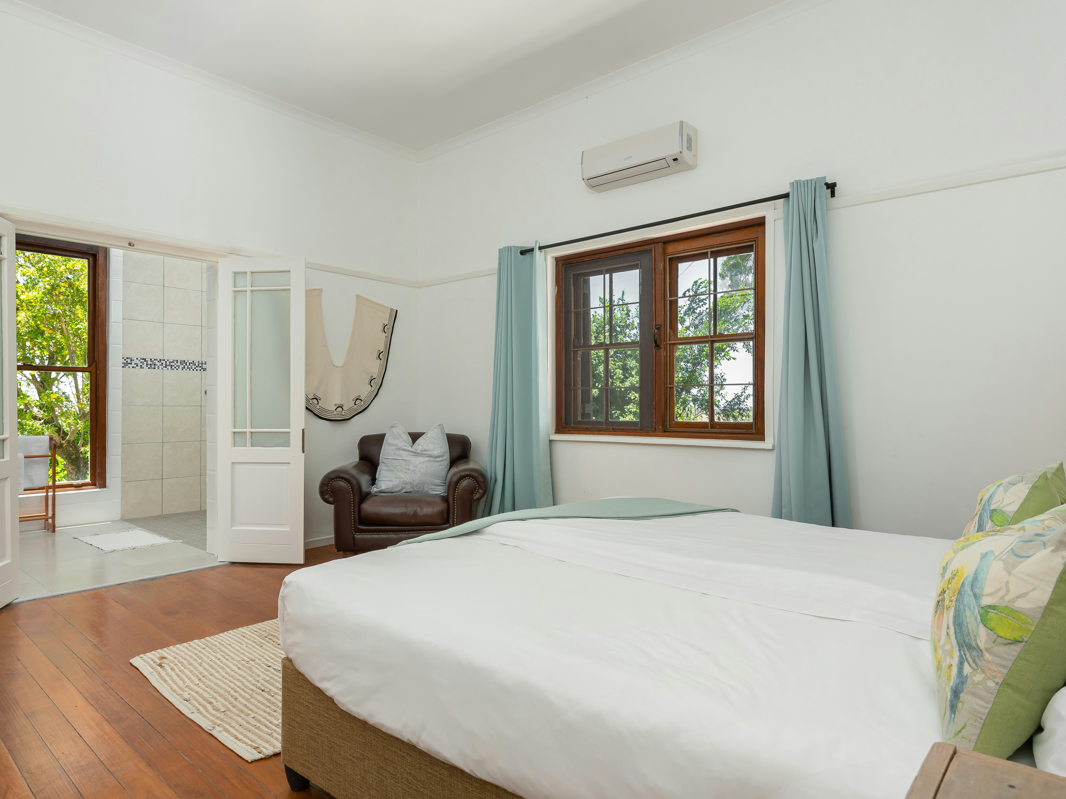 Abbotts Hill offers an old-world charm of solid wooden doors, floors, sash windows and shutters; the 3.5 m high ceilings and large windows provide lots of natural light. This charming home can accommodate 8 guests and comprises 4 bedrooms and 4 bathrooms. Each bedroom is furnished with an extra-length king-size bed. Some can be converted into twin beds on request, and each room features a private bathroom with a walk-in shower; in addition, each bedroom has air-conditioning and a remote-controlled ceiling fan.