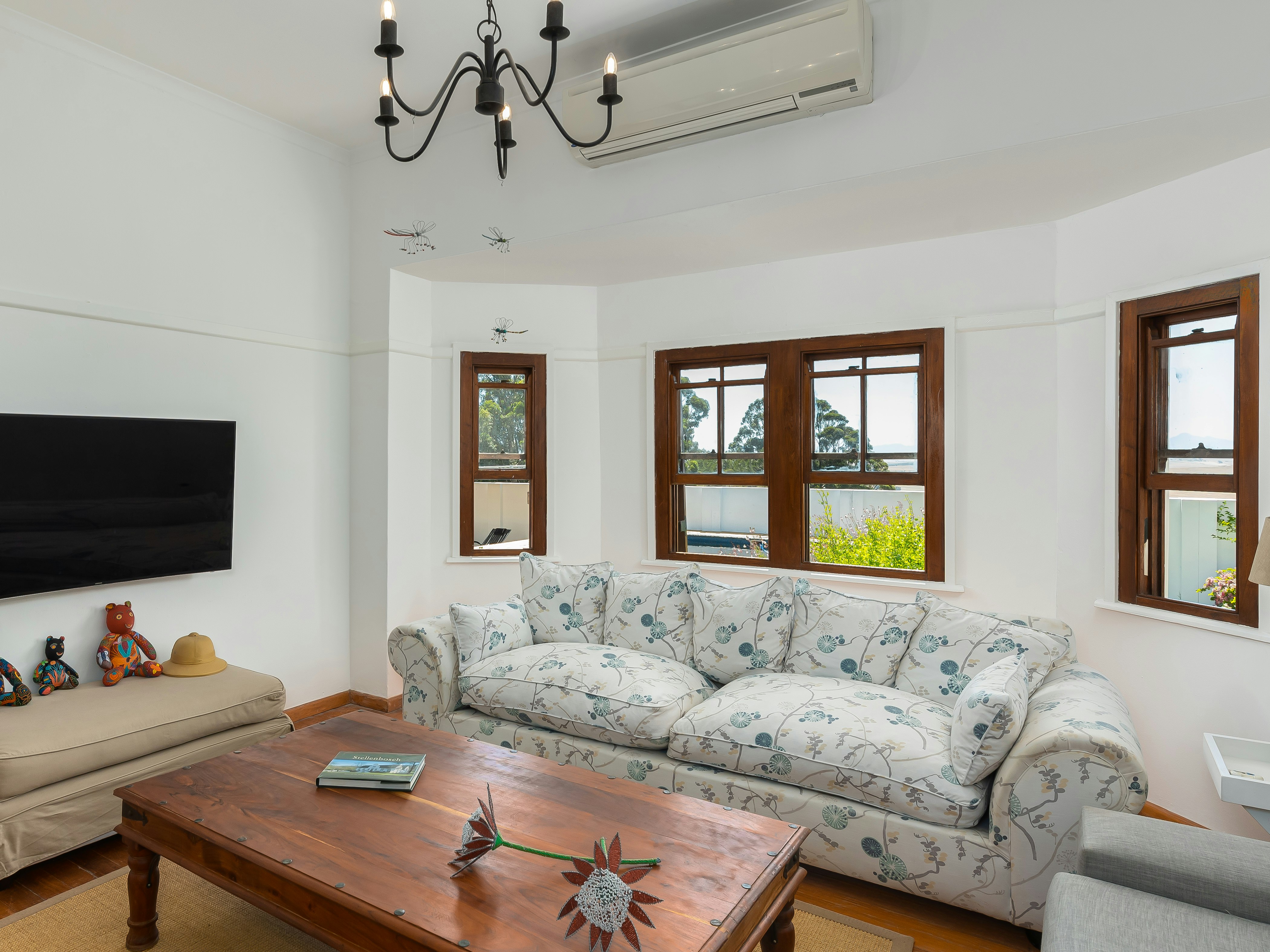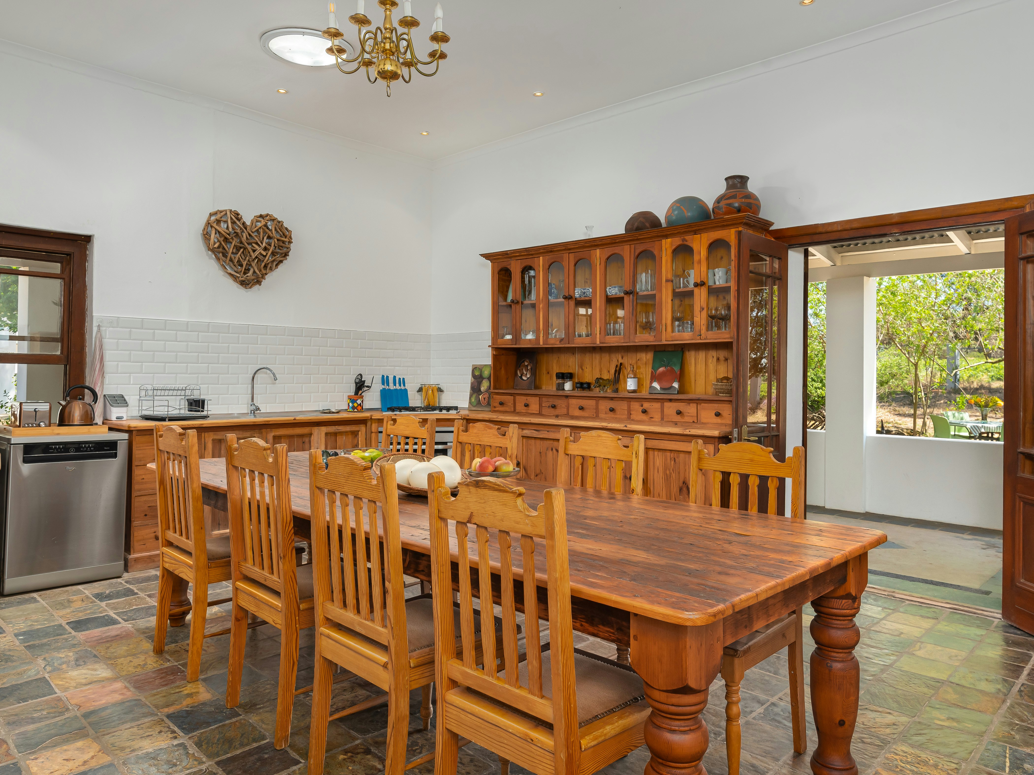 The well-equipped kitchen contains the necessary appliances to prepare and cook meals including a gas stove and gas oven. Guests are welcome to bring their own Nespresso pods and coffee beans. The open-plan living area leads out to the wraparound verandah, which boasts an outdoor dining area and overlooks the large swimming pool.