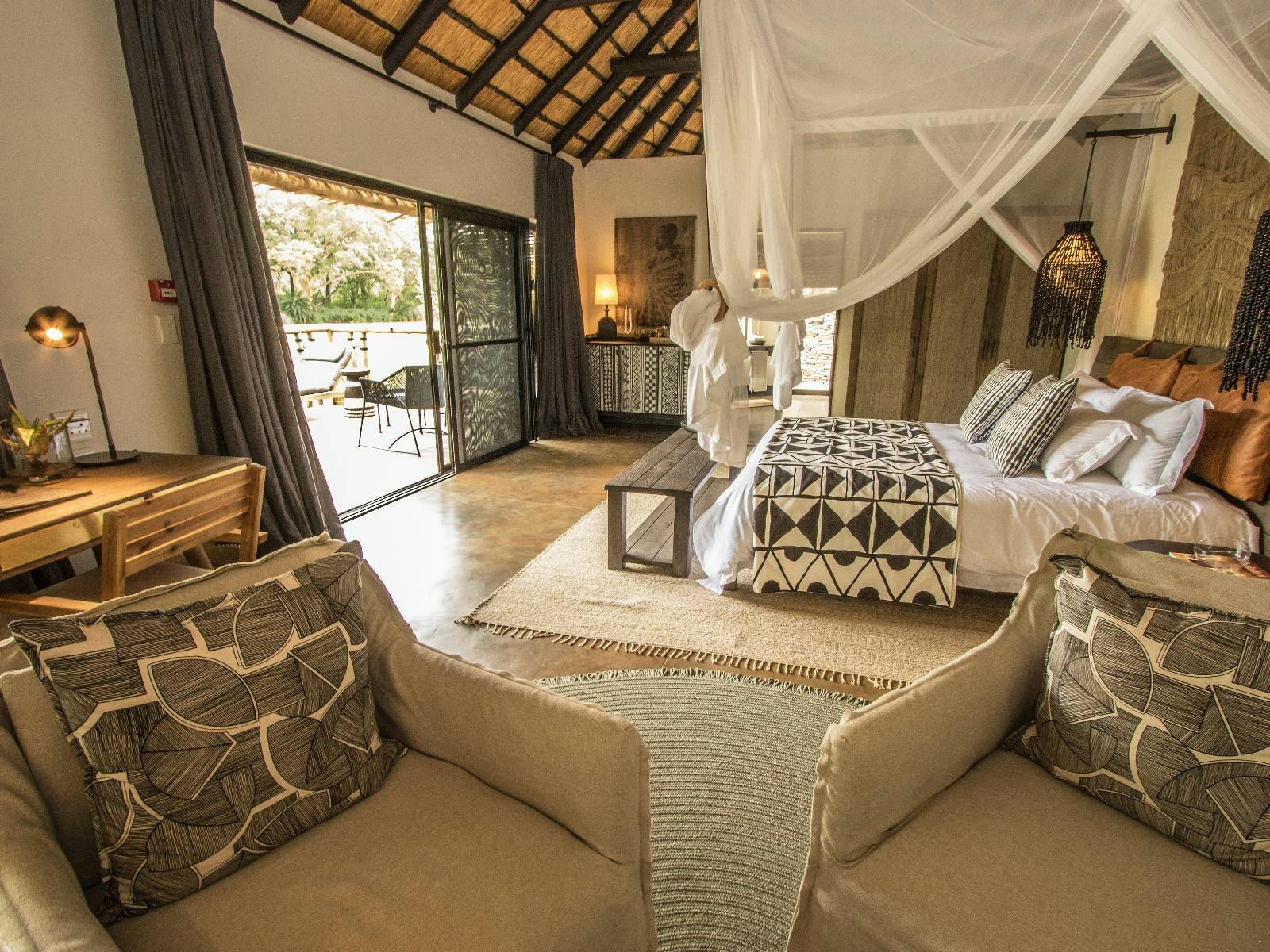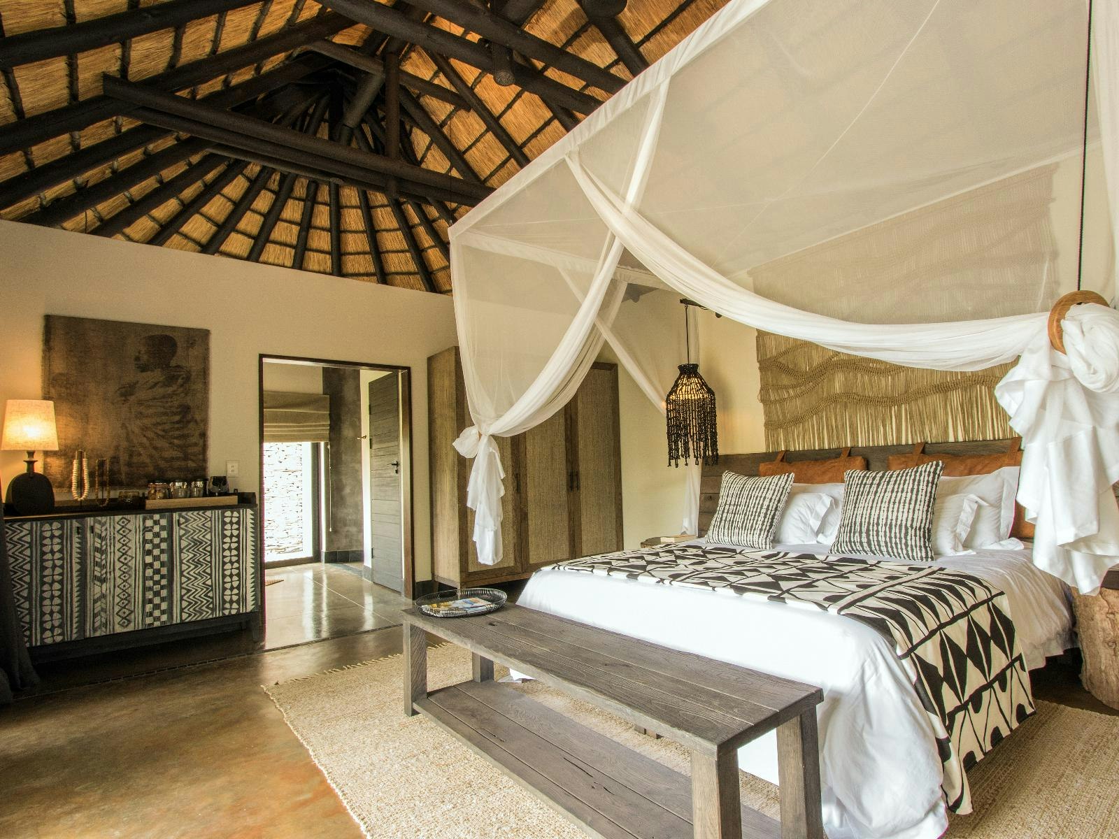 Accommodation consists of 20 thatched suites, each sleeping up to 2 adults and 1 child. Each suite has a king-size bed, an en-suite bathroom with a shower and toilet, and an additional outdoor shower. In-room facilities include air conditioning, a ceiling fan, mosquito nets, a stocked mini-fridge, tea- and coffee-making facilities, a safe, desk, hairdryer, heater, seating area, terrace, daily housekeeping, turndown service, and wake-up service.
