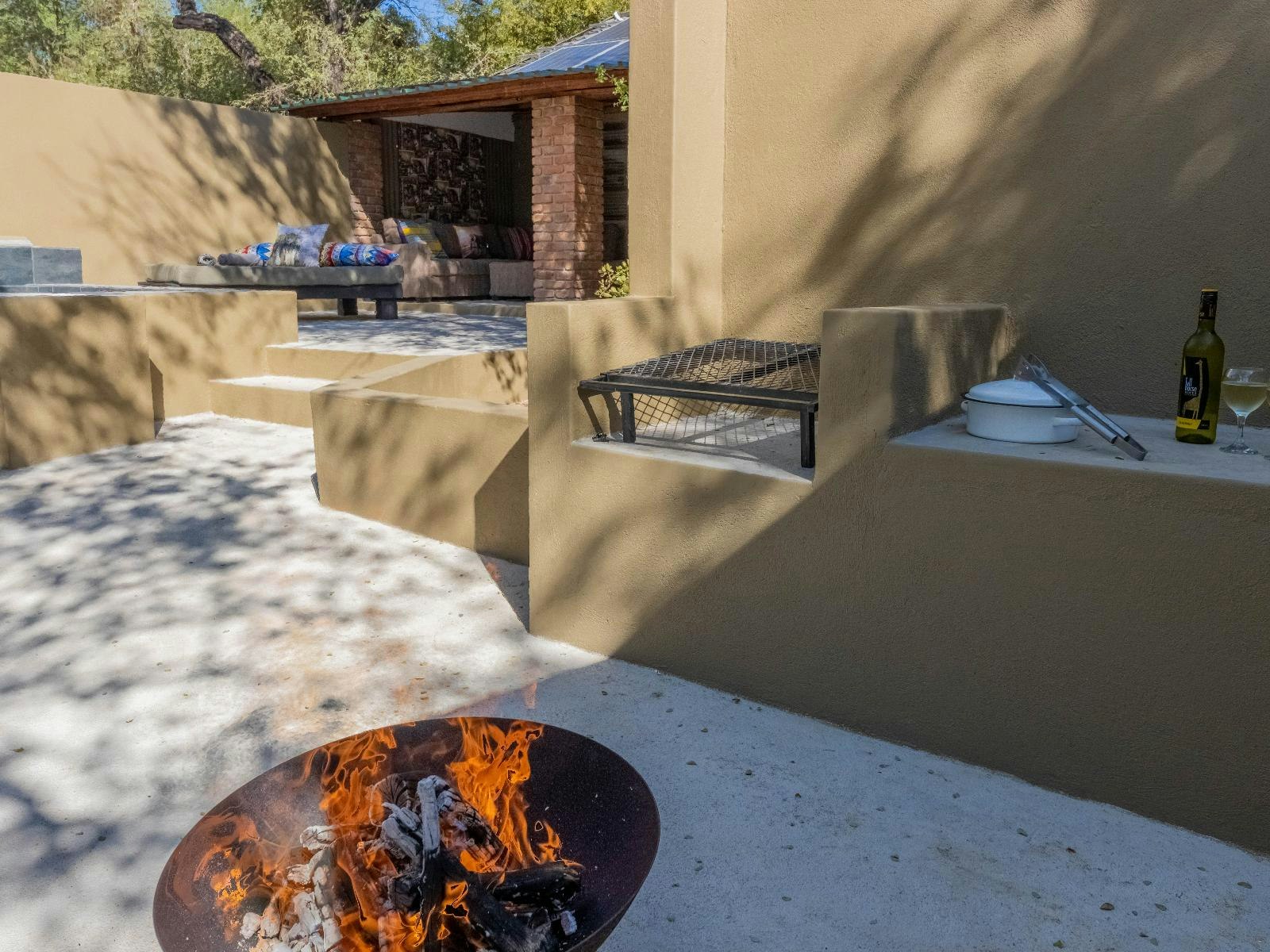 The Villas are all about outdoor living surrounded by nature! The patio has a barbeque area with comfortable seating as well as barbeque facilities. There is an outdoor dining area with an umbrella for shade as well as a thatched sitting area and deck with sun loungers. There are beautiful trees on the patio, knob thorns, jackalberry, and red thorns. The patio also has a large swimming pool to cool down on hot summer days. Guests at Sky Villa have exclusive use of the above.
