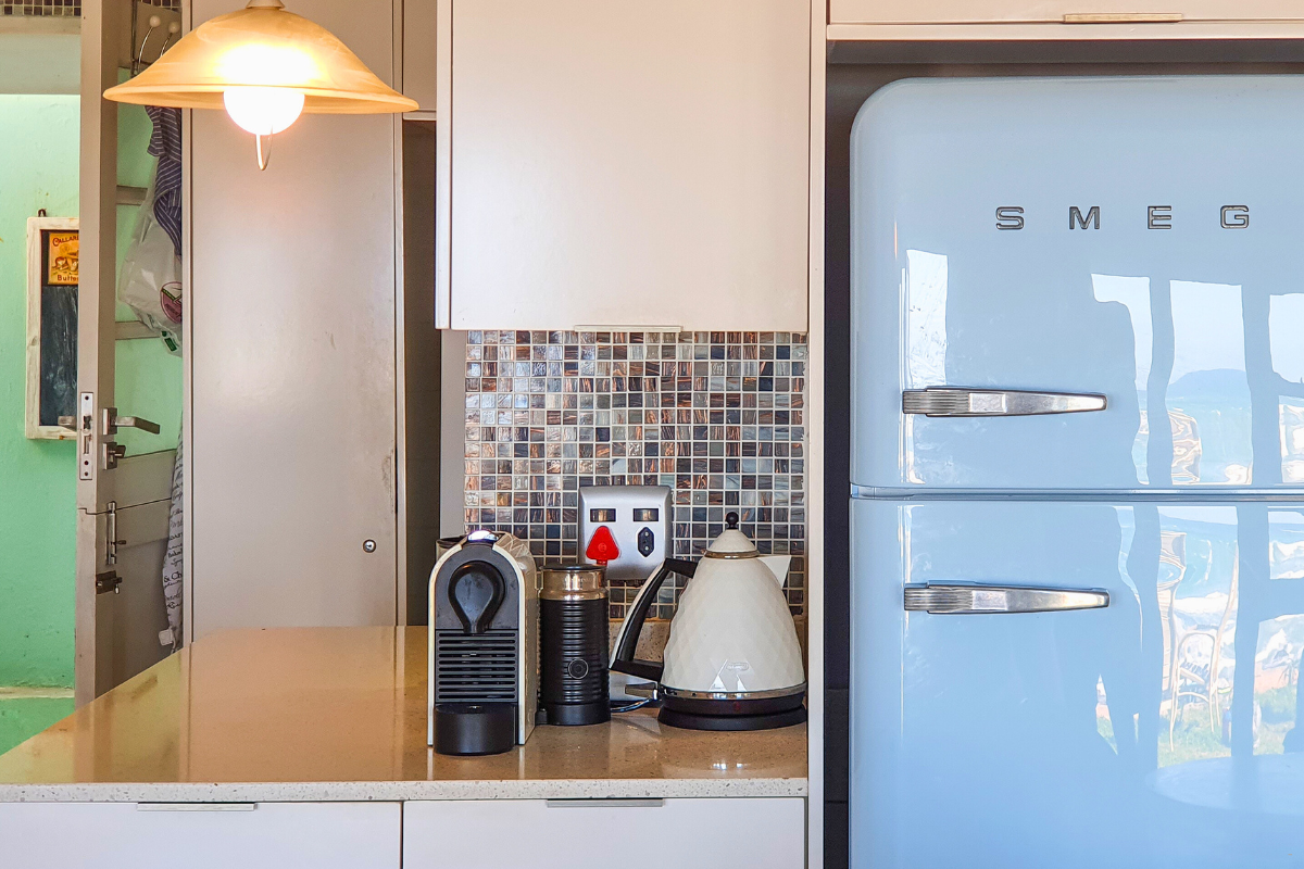 Die leefarea beskik oor 'n sitarea, eetarea en kombuis. Die kombuis is met 'n gasstoof, oond, mikrogolf, yskas-vrieskas, skottelgoedwasser, wasmasjien, tee- en koffiemaakgeriewe en eetgerei en breekware toegerus. Die eetarea het 'n etenstafel vir 8 gaste. Die sitarea het 'n gemaklike sitkamerstel en 'n TV.