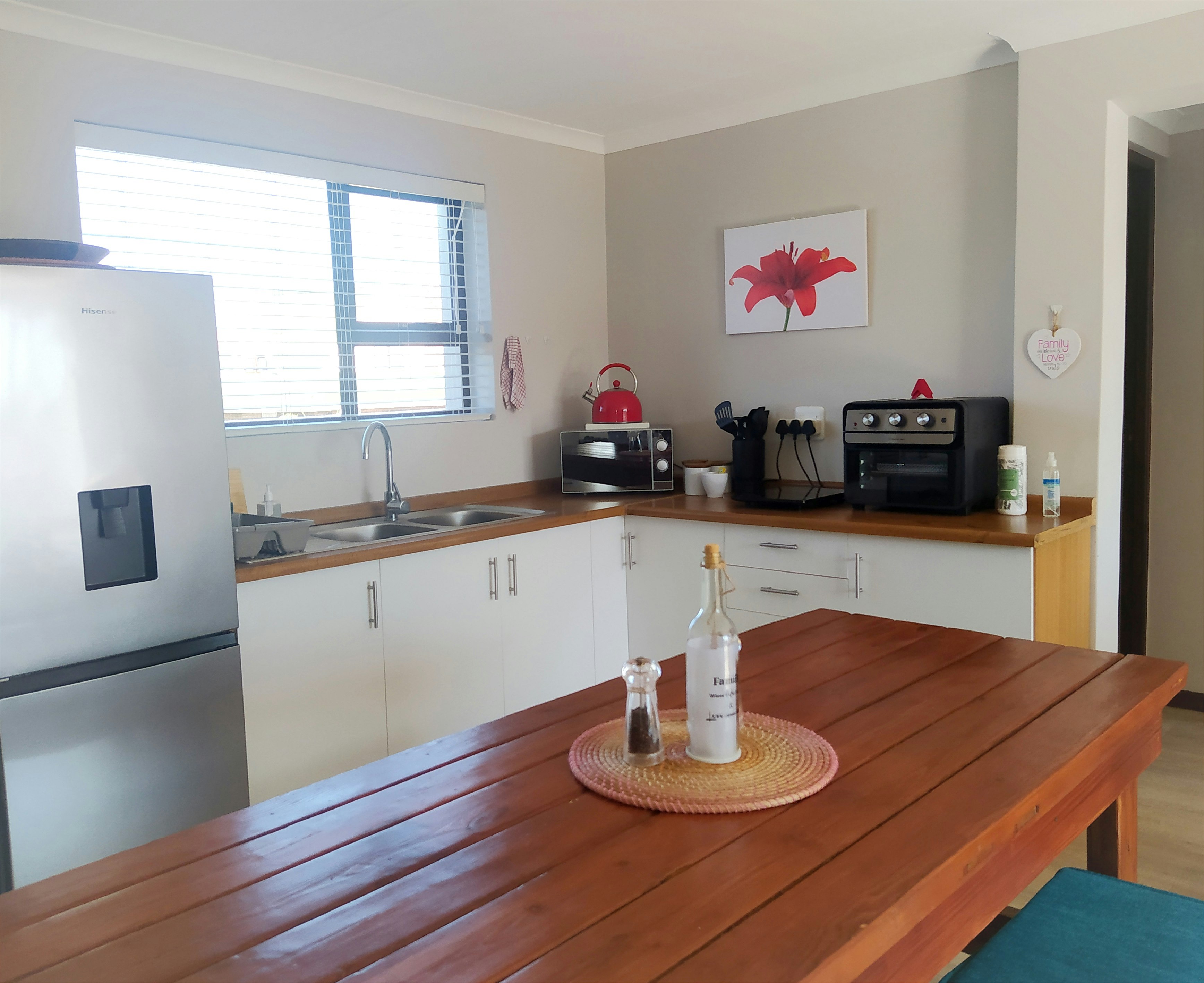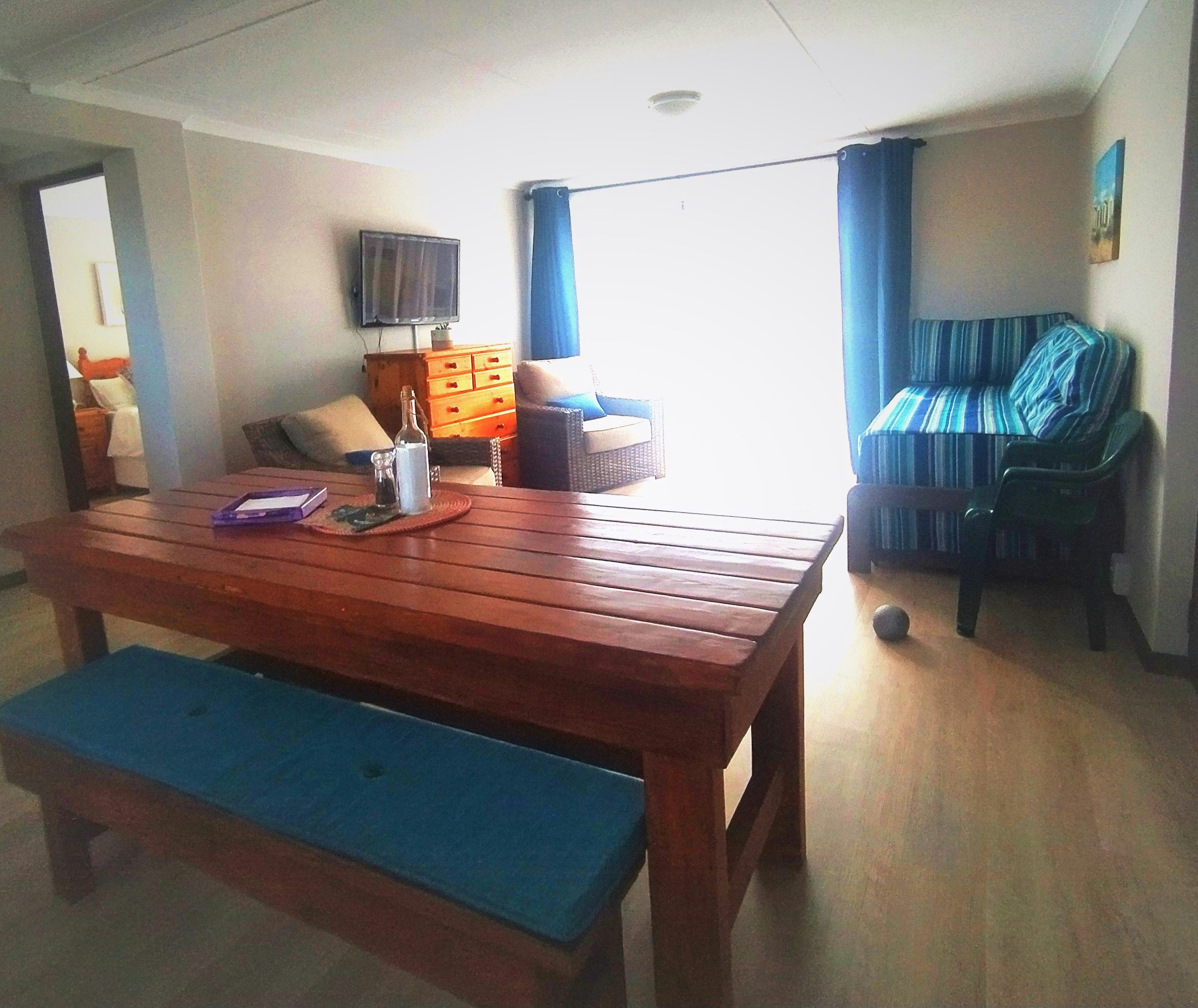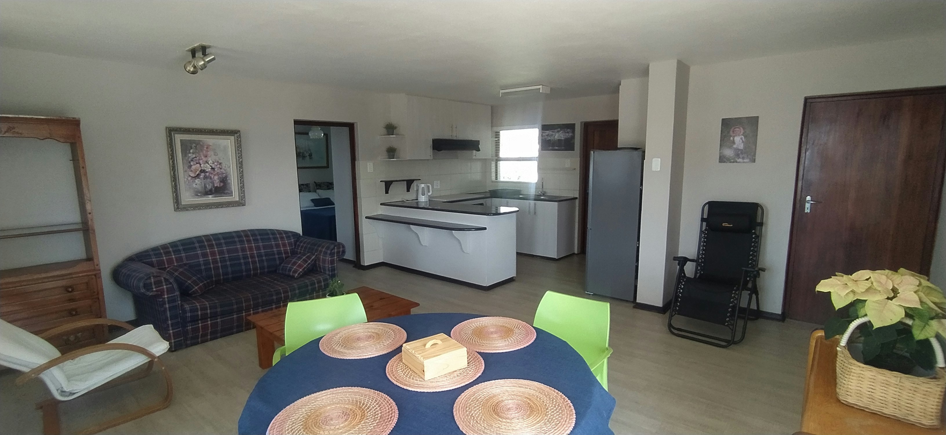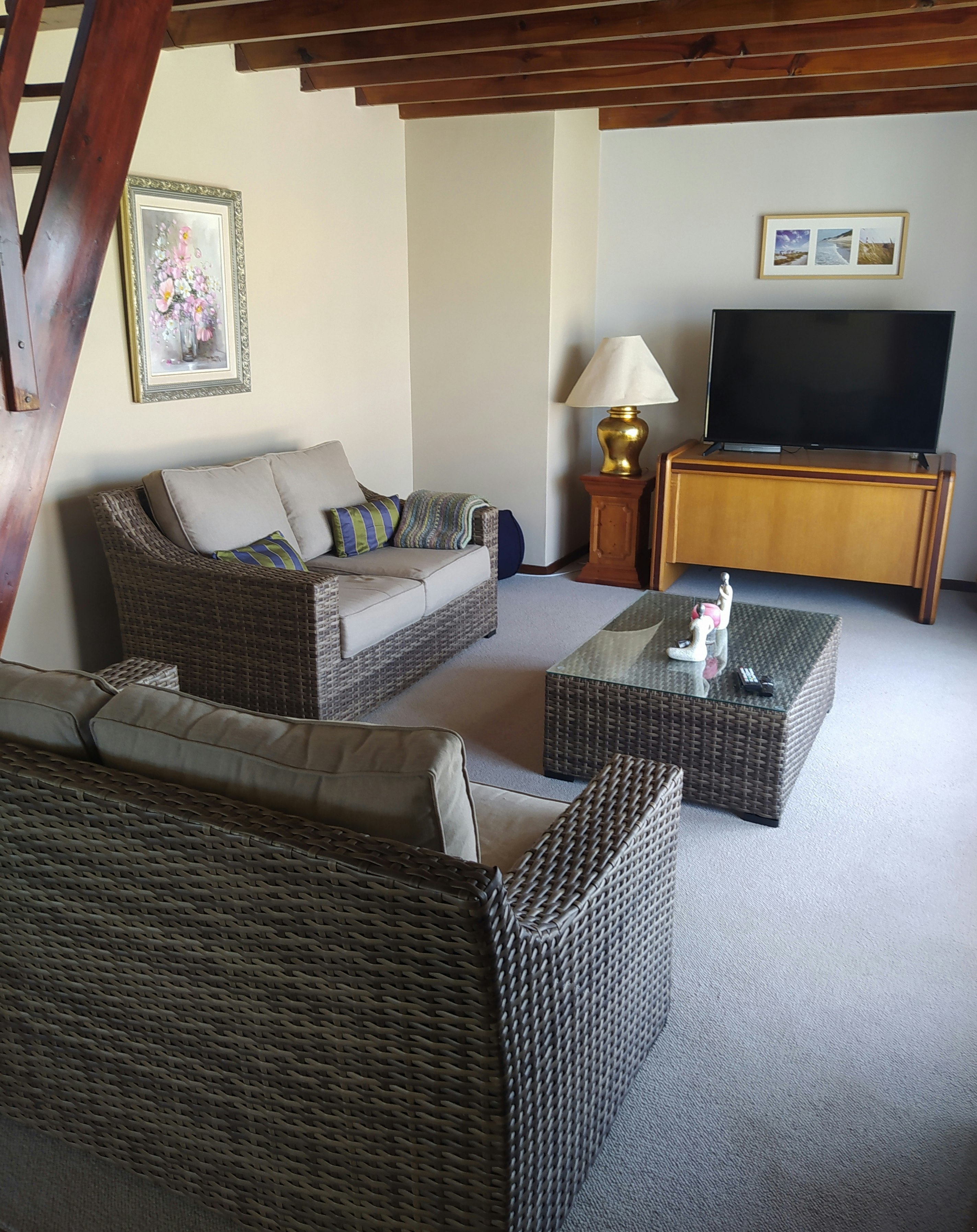 Alive@4 Villa comprises 4 bedrooms, bedroom 1 is furnished with a queen bed, room 2 has a double bed, rooms 3 and 4 is furnished with 2 single beds. This unit also has 2 en-suite bathrooms fitted with a toilet, bath, shower, and washbasin. The Villa is also fitted with a guest bathroom with a toilet and washbasin. Other facilities include a living room with indoor braai, a TV room, a 10 seater dining room, an equipped kitchen, and a laundry room. Each bedroom has a balcony with a beautiful view.