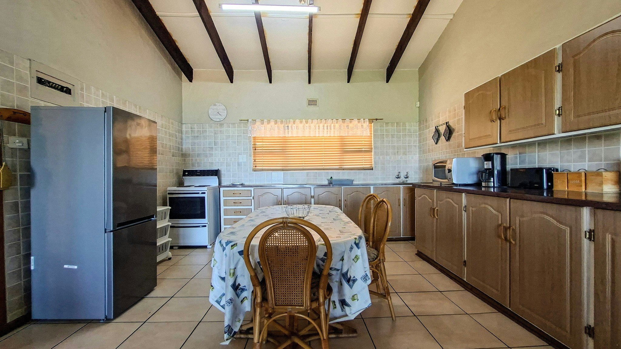 Die kombuis is toegerus met 'n stoof en oond, yskas-vrieskas, mikrogolf, ketel en broodrooster. Die leefarea het 'n platskerm-TV en 'n etenstafel met stoele en lei na 'n onderdakbalkon met 'n ingeboude braai. Gaste moet hulle eie Explora DStv-dekodeerder saambring om DStv te kan kyk.