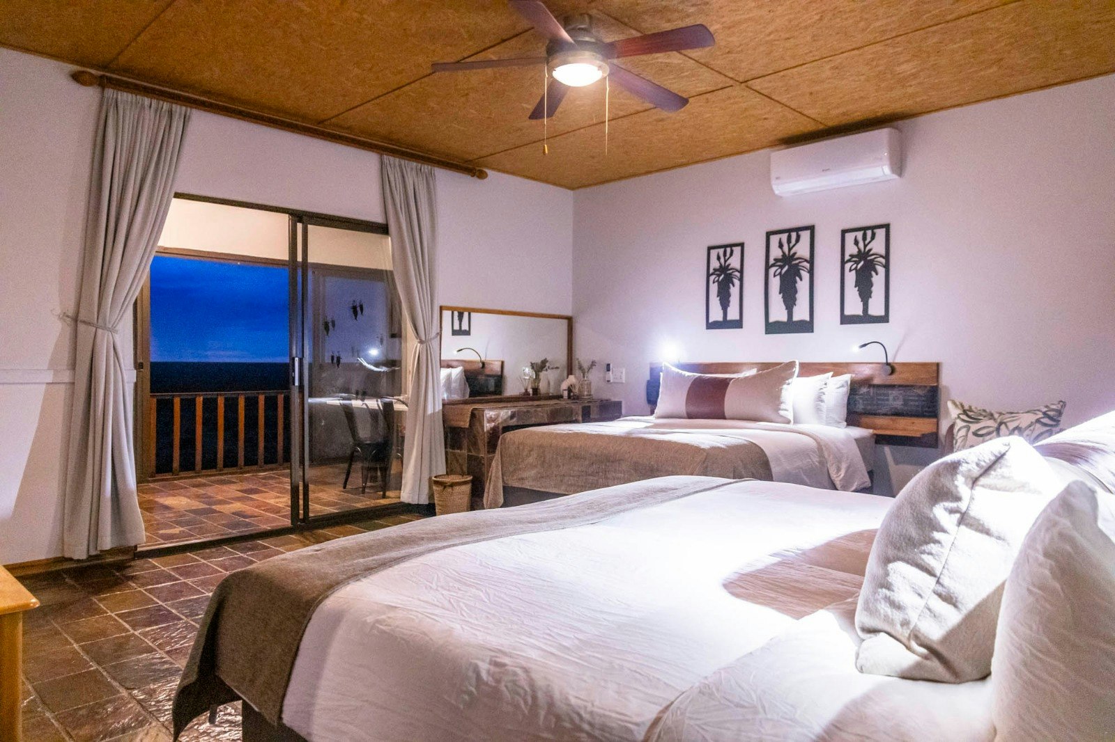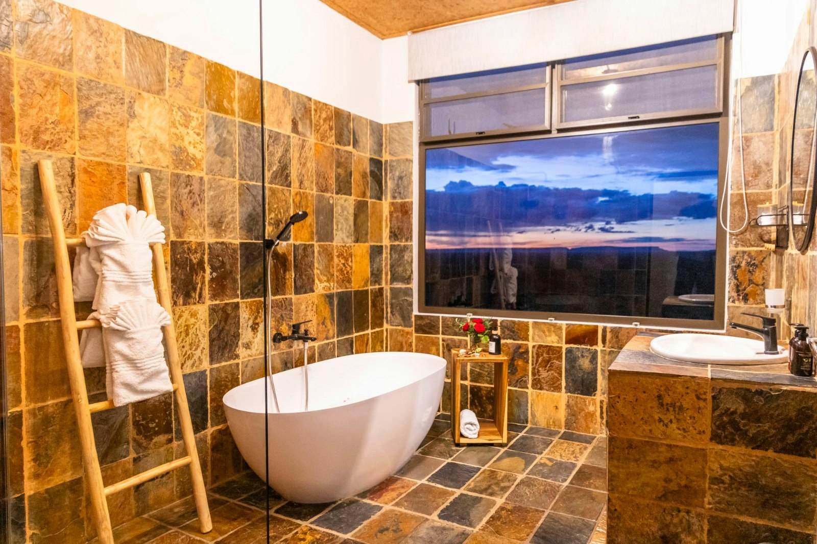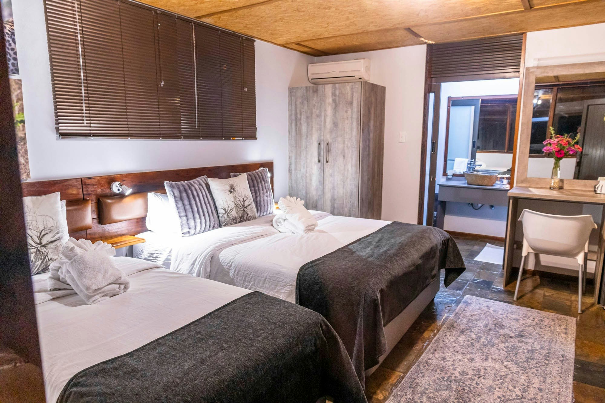 Each Family Room (also referred to as a Luxury Room) is furnished with 2 extra-length single beds and 1 queen-size bed, and features a private bathroom with a shower, bath, and toilet. The kitchen area includes basic appliances for meal preparation, indoor braai facilities, a coffee station with a kettle, plunger, beverages, and a fridge to keep food cold. Each room accommodates 2 adults and 2 children.