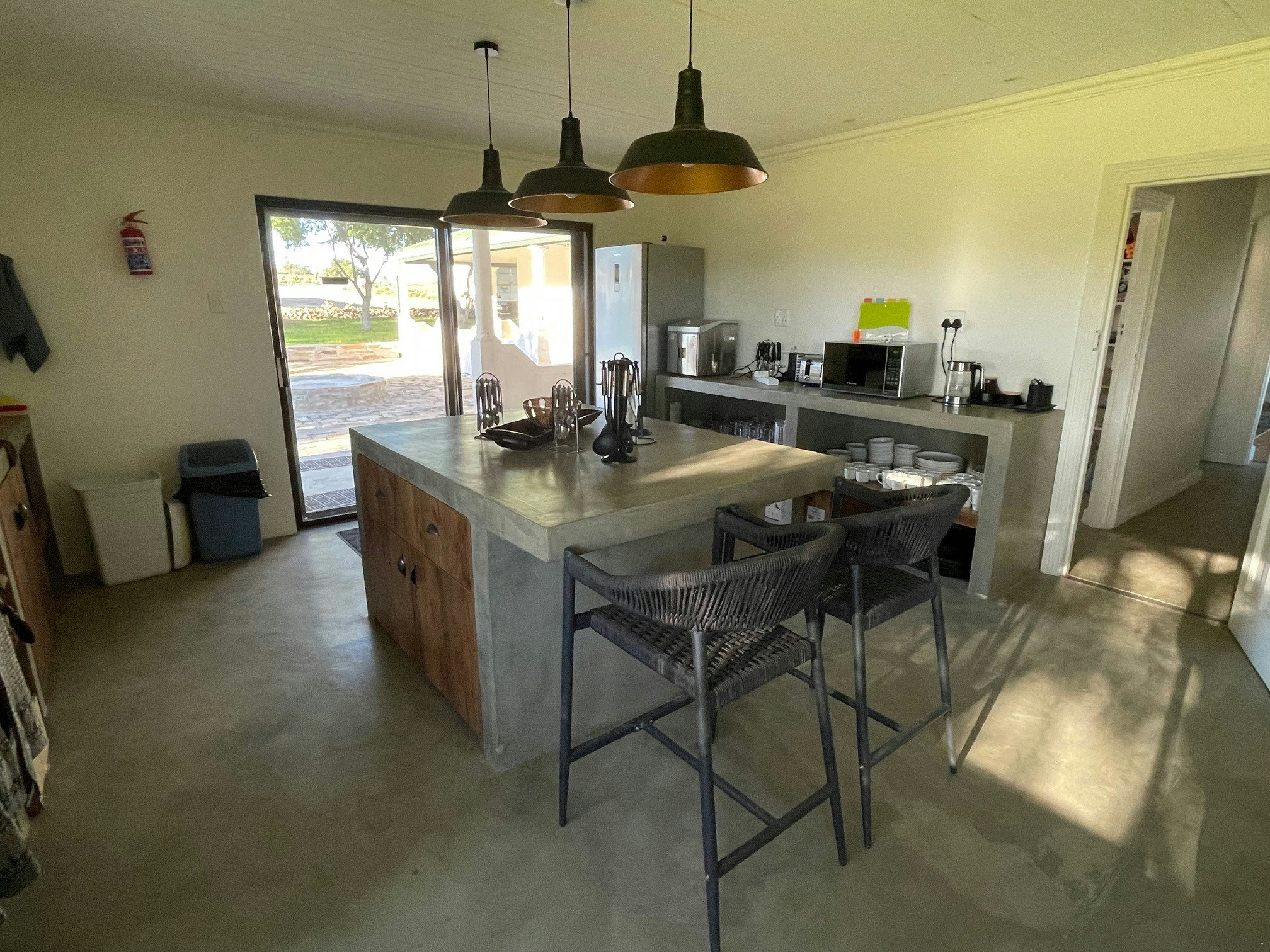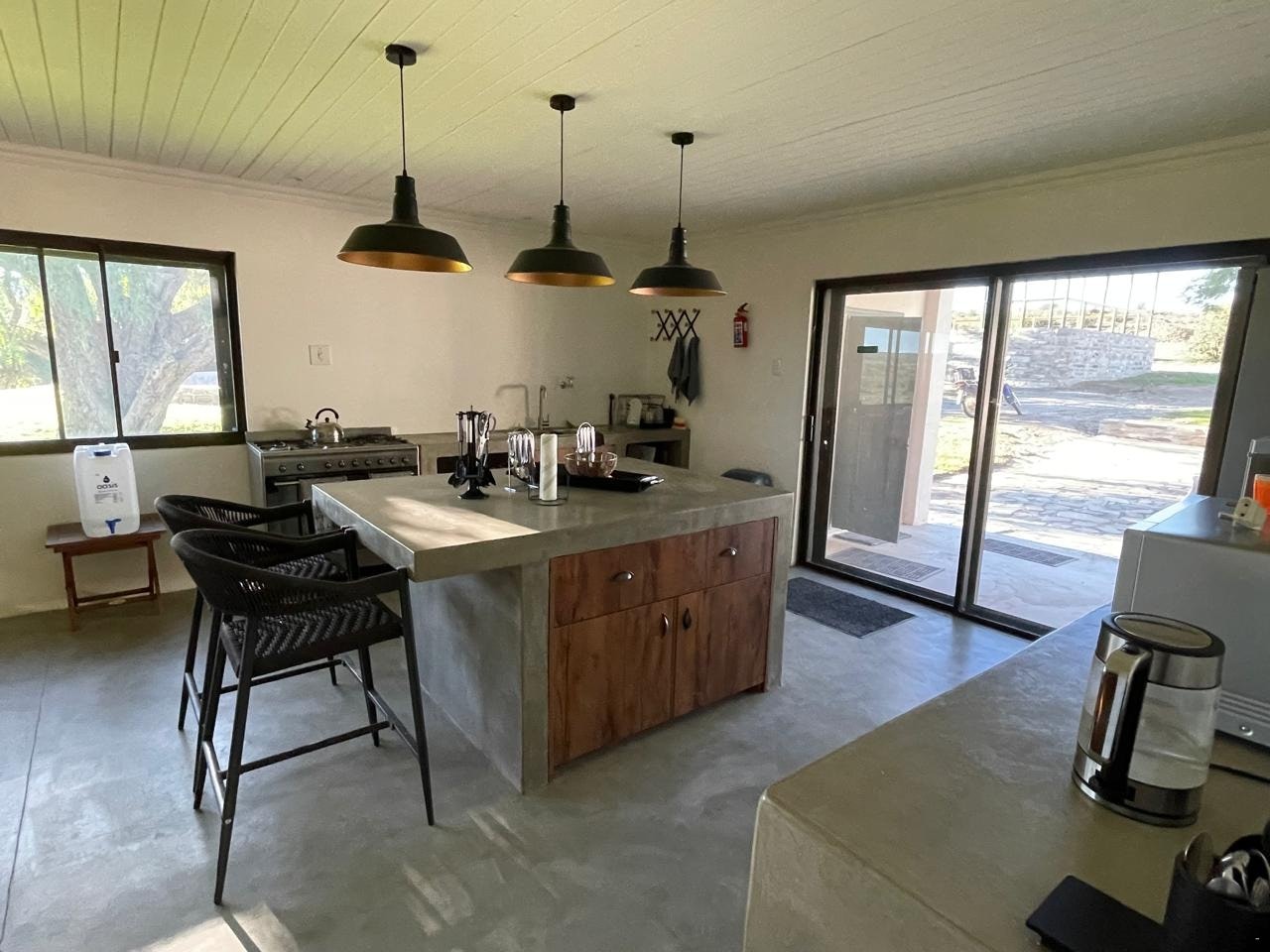 Die plaashuis se kombuis is met 'n vrieskas, yskas, mikrogolfoond, elektriese en gasstoof, -oond, broodrooster, ketel, ysmasjien, toebroodjierooster, 'n dompelkoffiepot, asook 'n verskeidenheid potte en panne. Daar is potjie- en broodpotte, pizza-braai, braaigeregte, braai-borde en 'n tang. Oorgenoeg breekware en eetgerei is beskikbaar. Boonop spog die ruim plaashuis met 'n binne- en buitebraai, kuierarea en 'n swembad. Die slaapkamers het lugversorging.