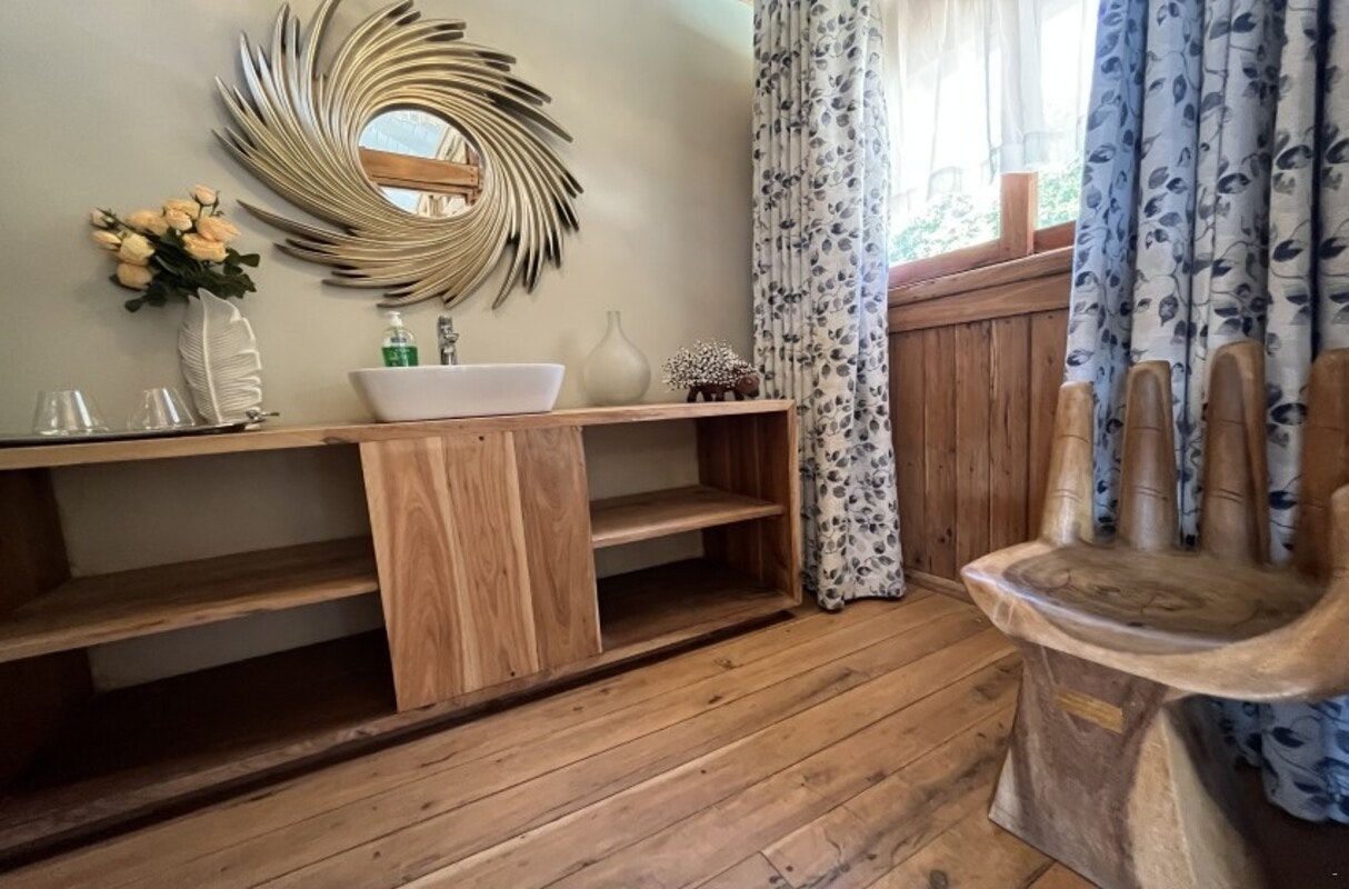 The fourth and fifth bedrooms are each furnished with 6 three-quarter beds with oversized pillows and Egyptian cotton sheets. Each suite includes a fridge, Smart TV, desk, solar air-conditioning, and high-performance fans. The en-suite bathrooms are fitted with a shower, toilet, and basin, and separate dressing areas, hairdryers, and LED-lit mirrors add to the luxury.