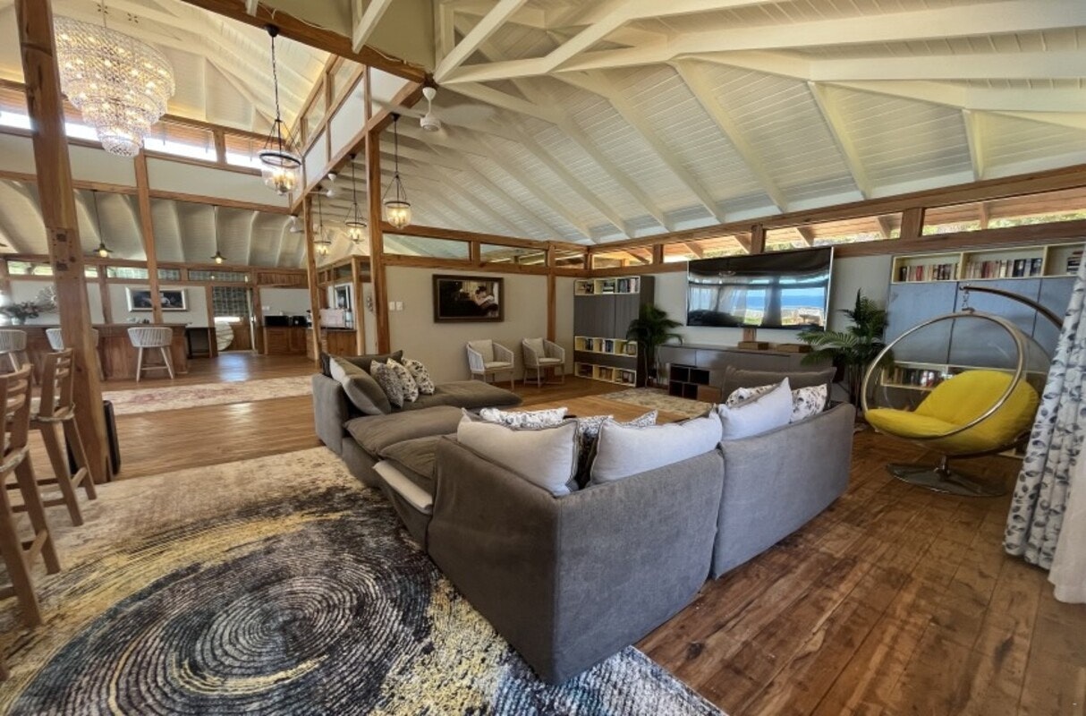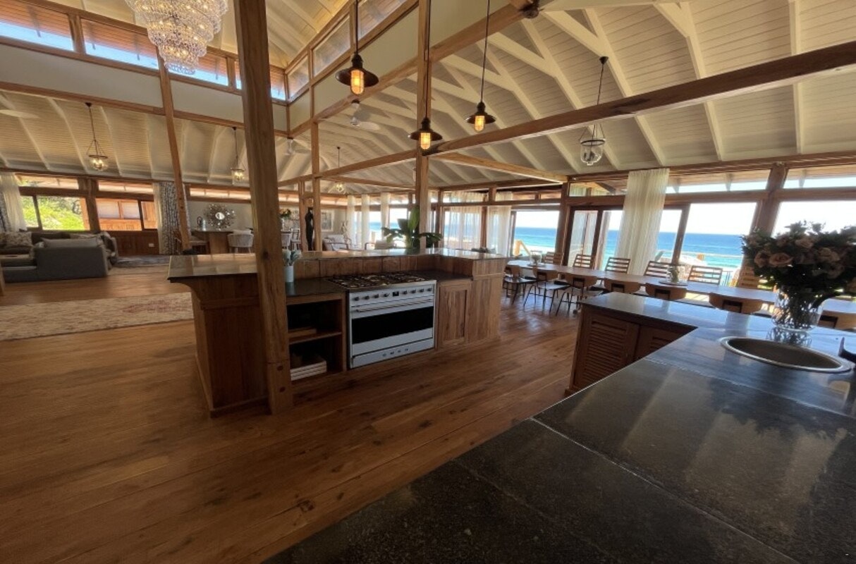 The property boasts 100 m of private beach frontage with numerous viewing decks, an outdoor lounge, and a large firepit with a seating area, offering guests a variety of inviting spaces to unwind and enjoy the tranquil setting. Each bedroom suite leads via walkways to the central entertainment area and features floor-to-ceiling glass that frames the breathtaking sea views.