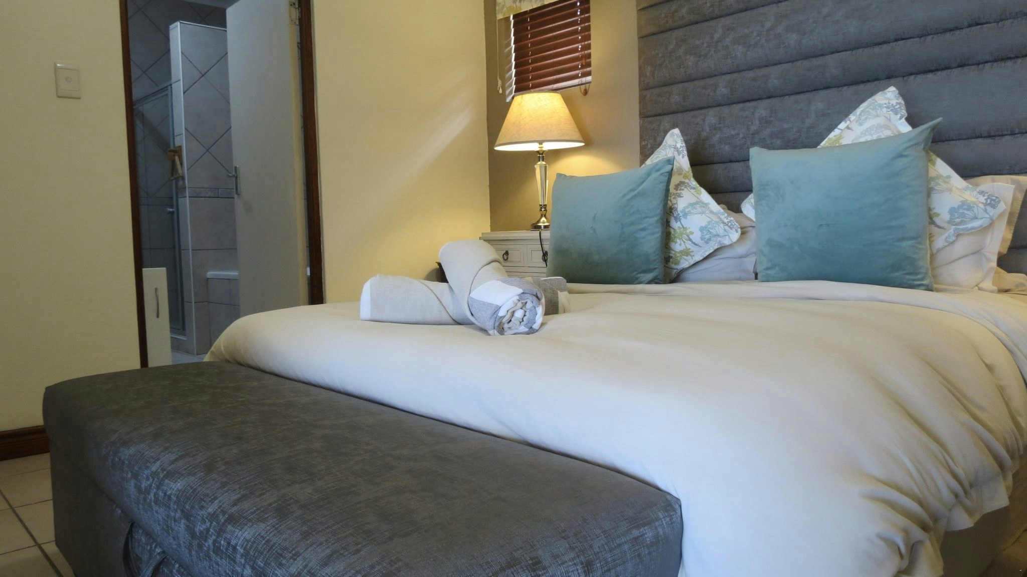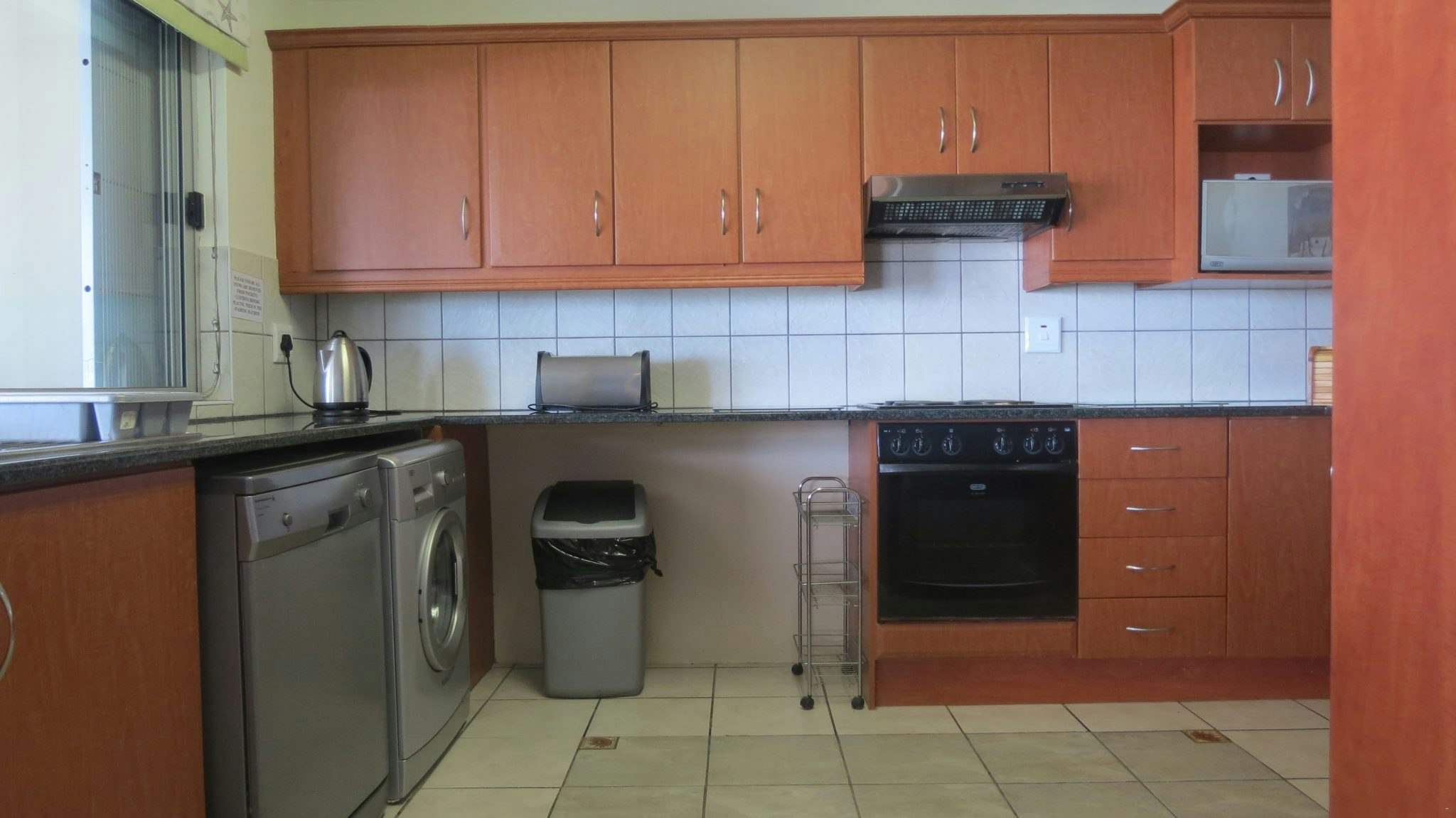 The kitchen is fully equipped for self-catering and contains a stove, oven, fridge-freezer, microwave, and cutlery and crockery. There is also a dishwasher and a washing machine. The lounge is fitted with a comfortable lounge suite seating 8 and a flat-screen TV with a full selection of DStv channels, as well as a DVD player and unlimited WiFi.