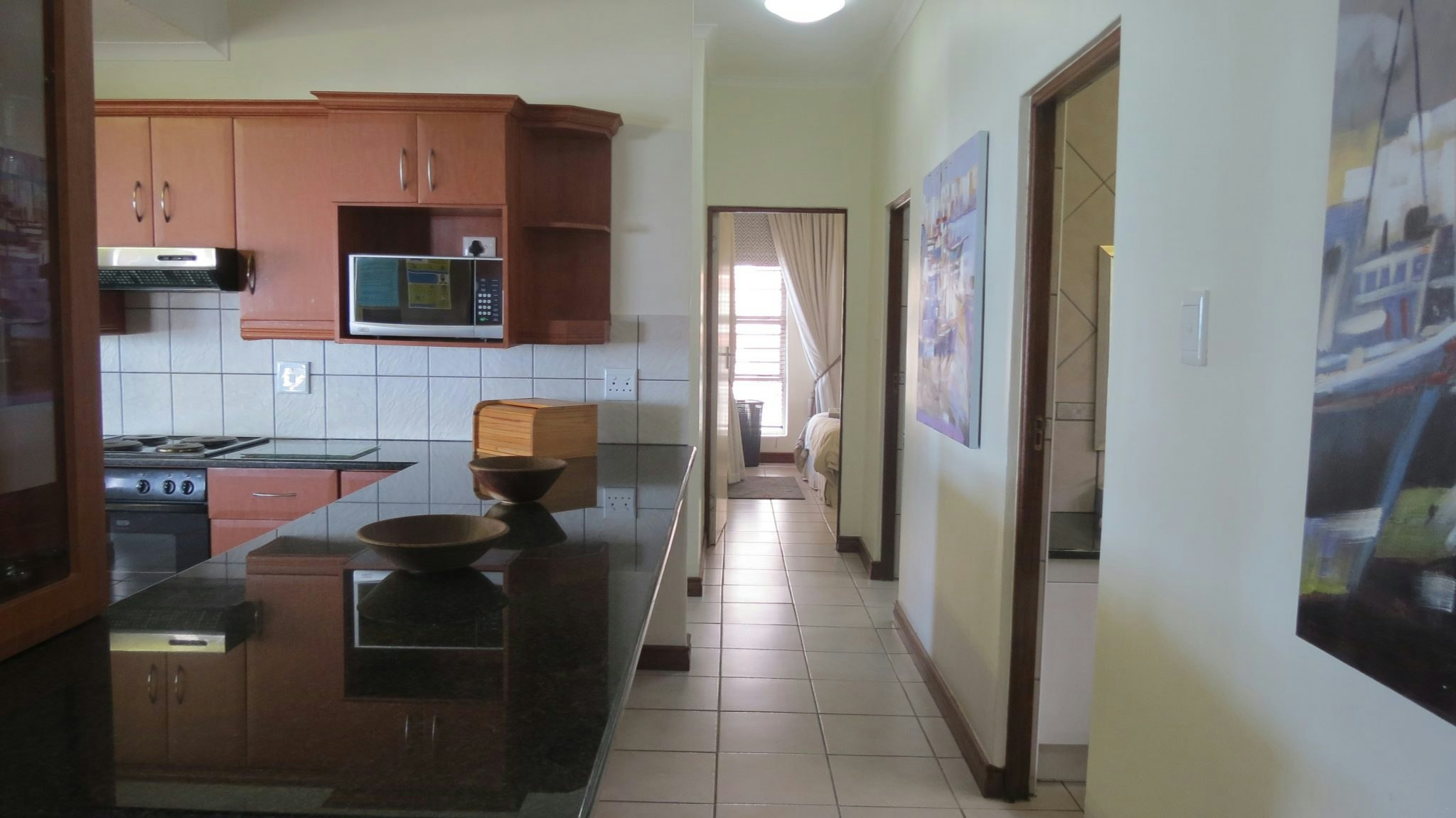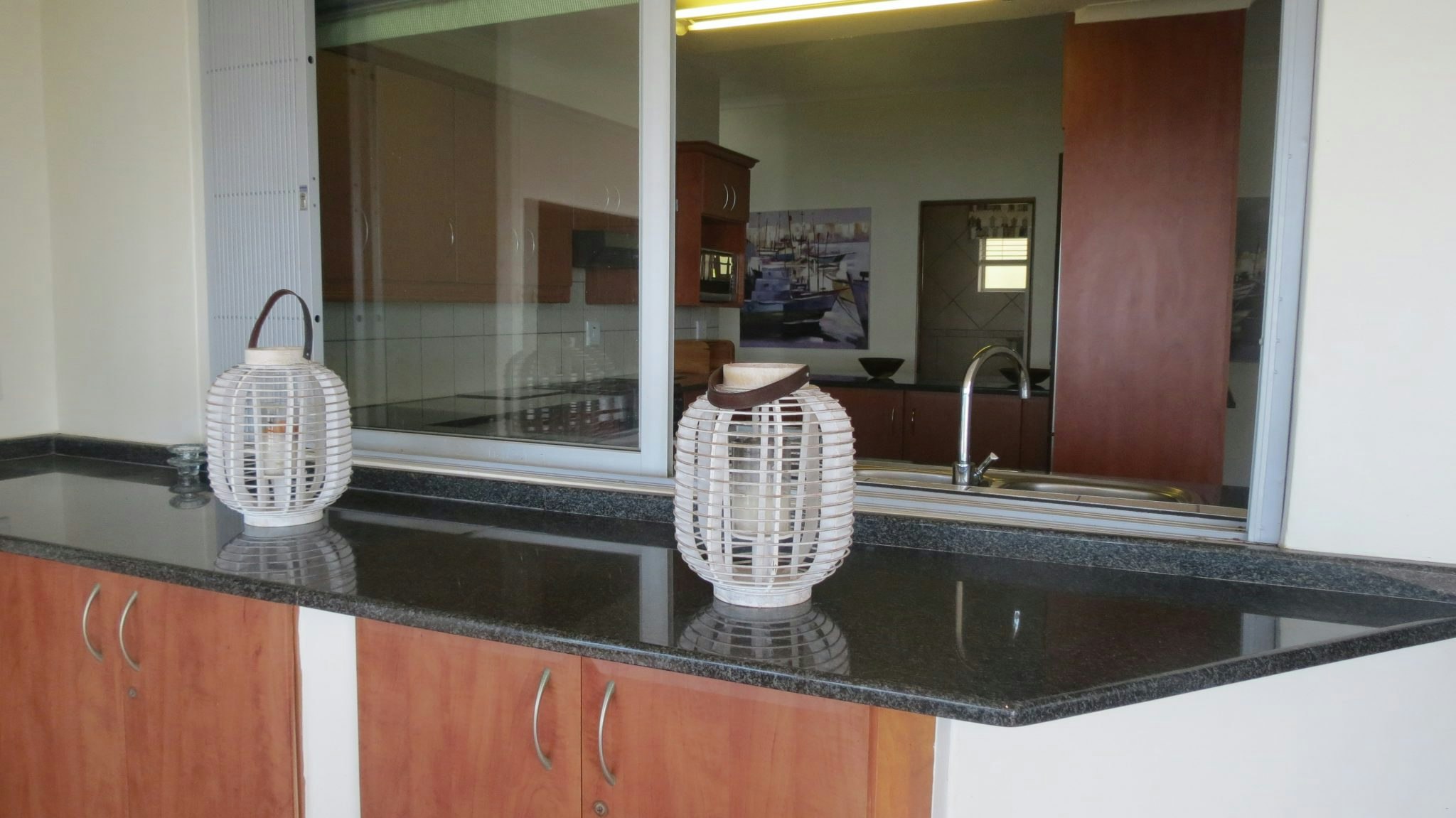 There is a spacious enclosed balcony off the lounge with aluminium stacker windows that boasts panoramic ocean views. The balcony is fitted with a dining table seating 8 as well as a built-in gas braai and a serving counter with windows opening into the kitchen.