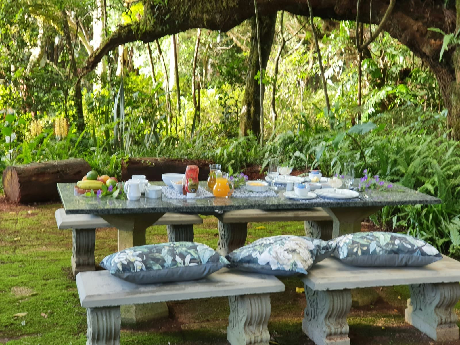 Guests can cool down or relax next to the swimming pool, or in the garden which is home to indigenous protea shrubs and lures the elusive Gurney's Sugarbird, and Blue-spotted Wood-Dove. Various animals can also be spotted in the area and range from bushbabies, bushbuck and red duikers, porcupines, baboons, monkeys, and leopards.