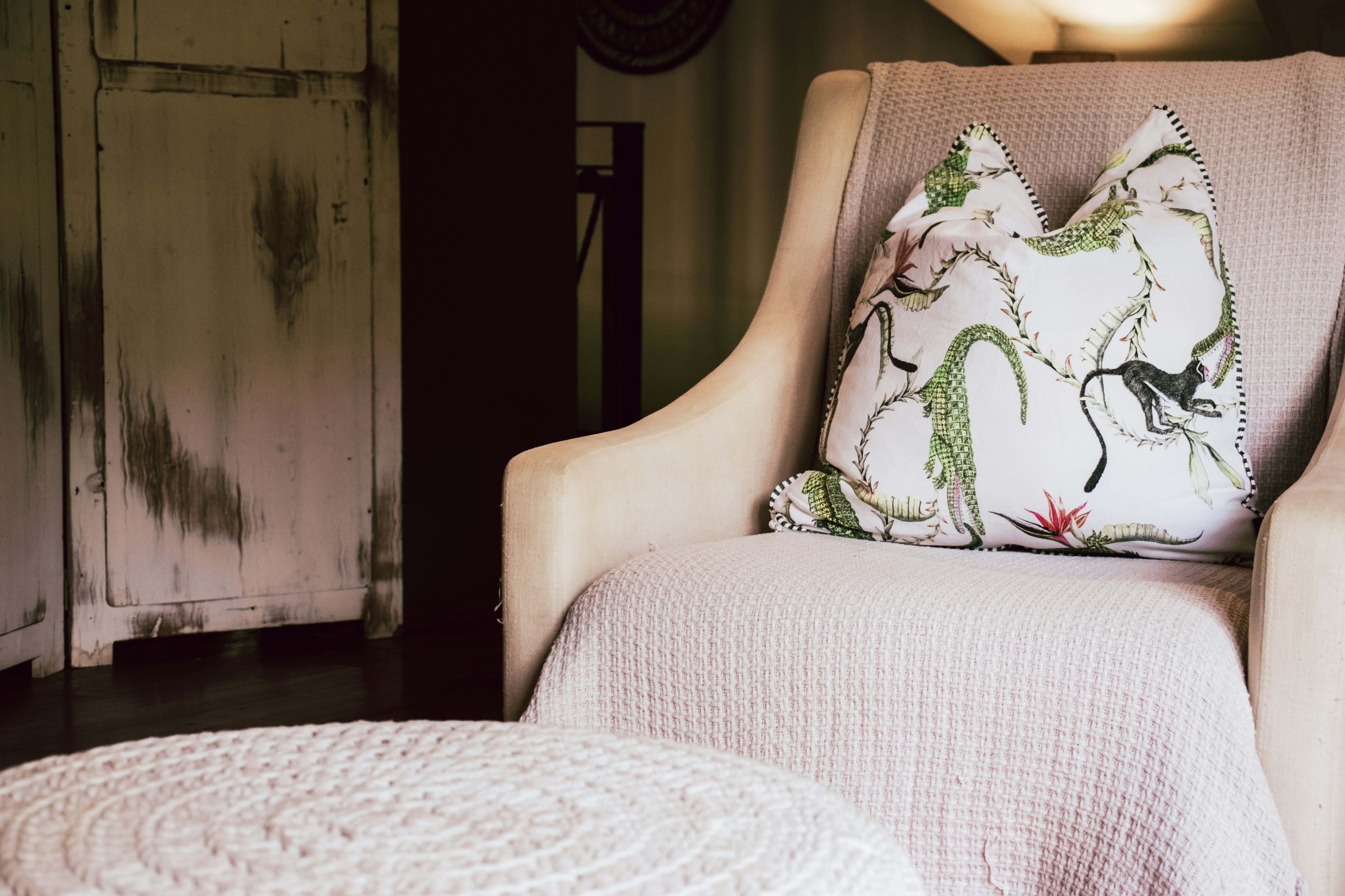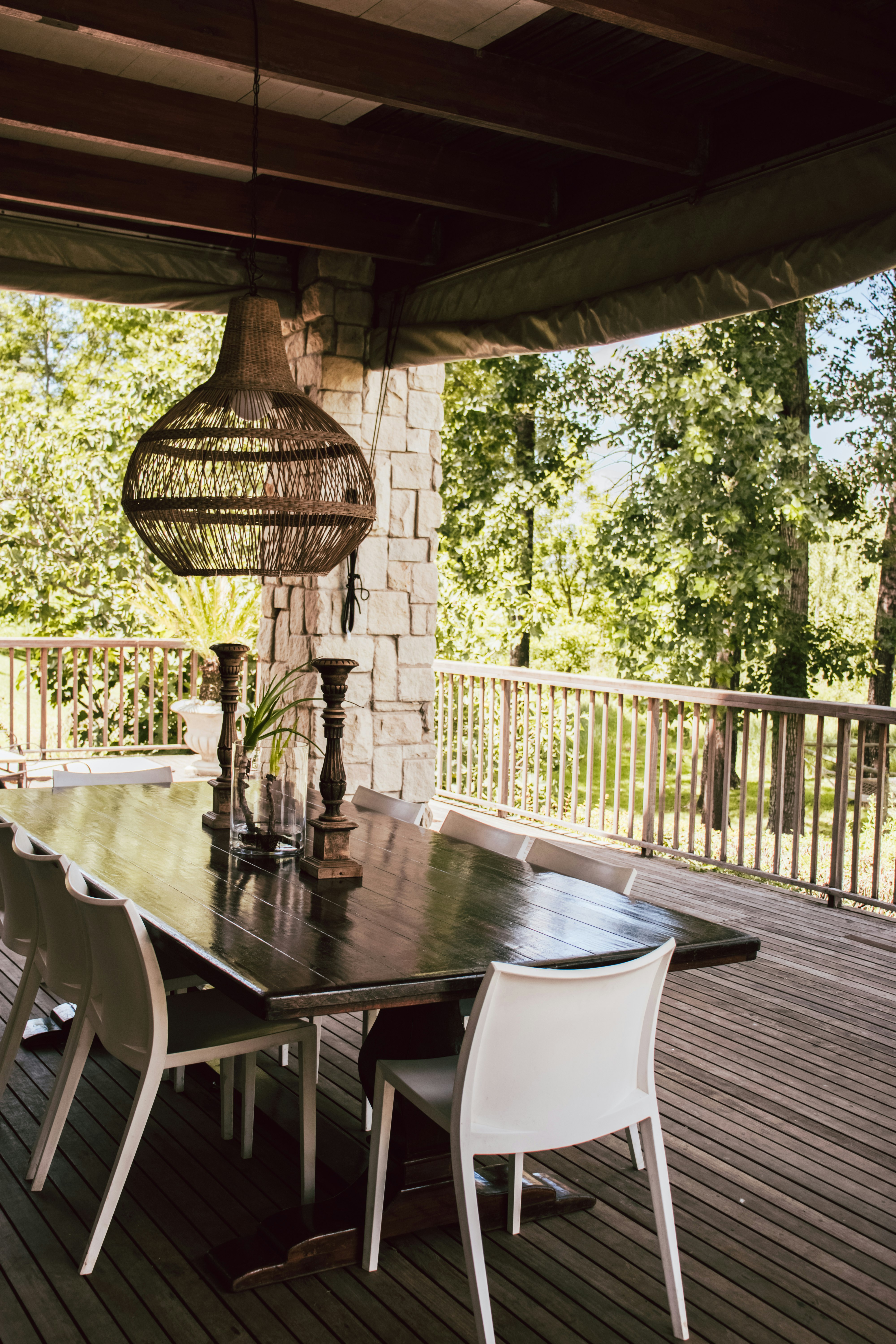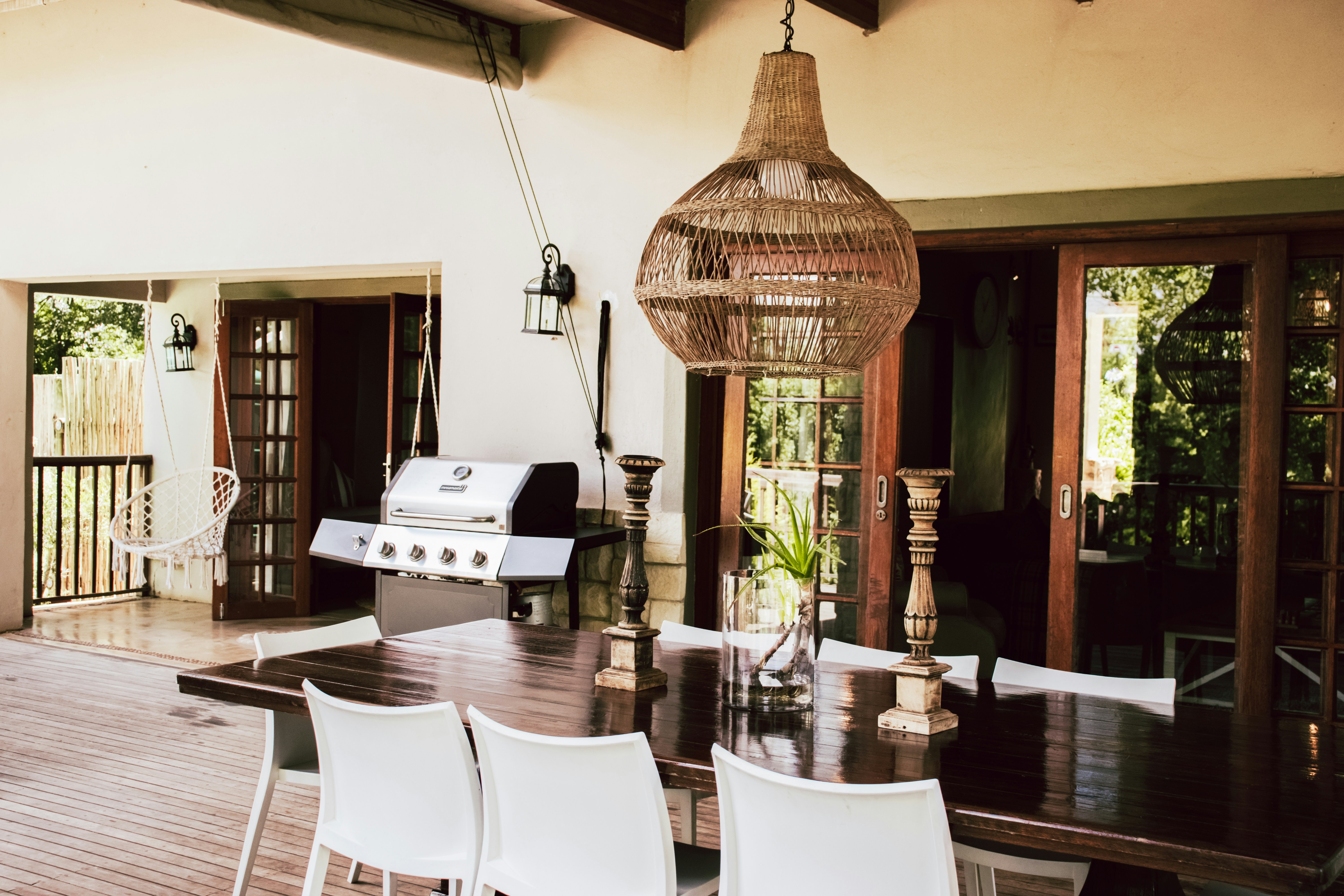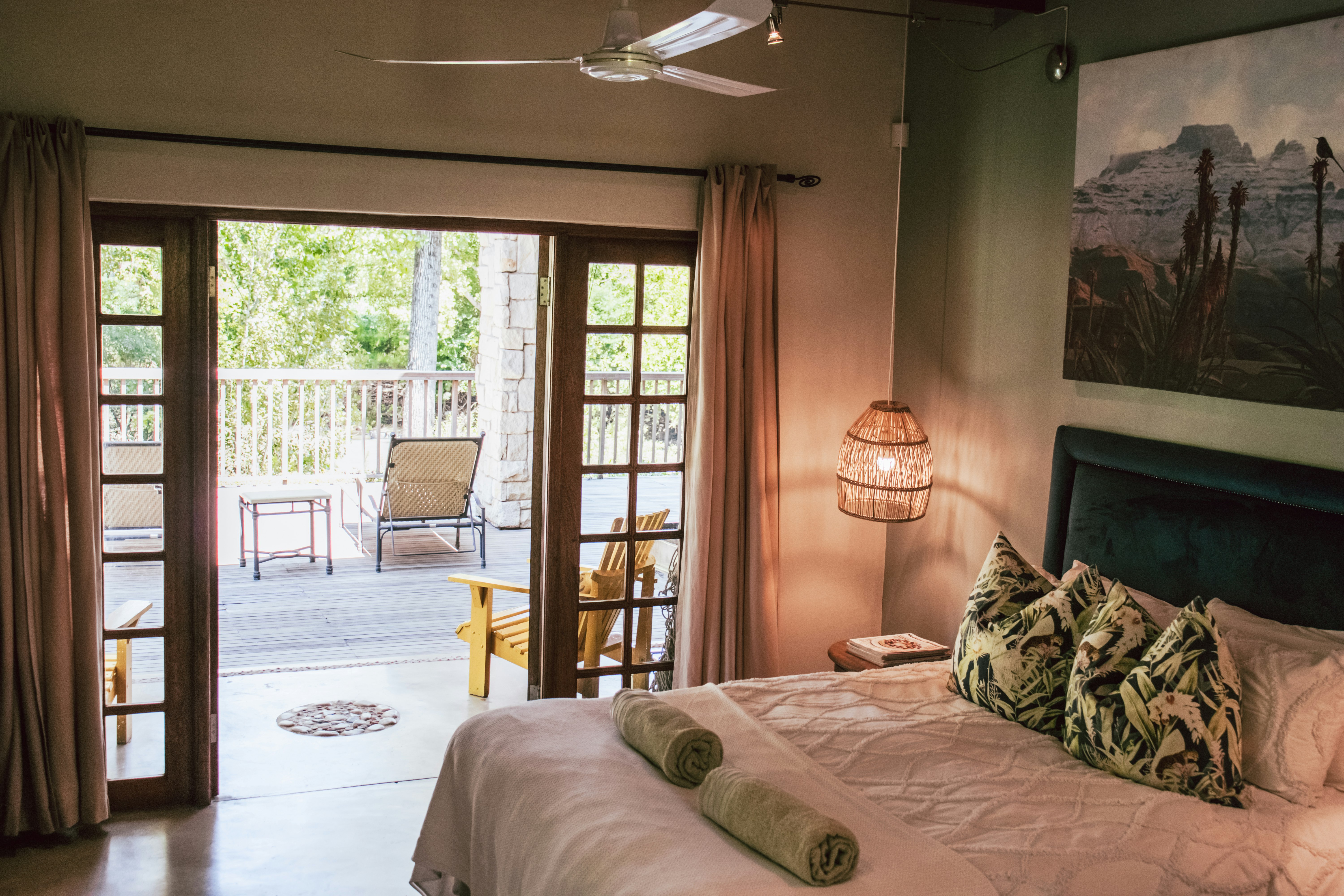 Die leefarea se dubbeldeure lei tot 'n beskutte area op die dek. Die groot houtdek het 'n uitsig oor die rivier na die Drakensberge en is die ideale plek vir kuier, braai of skemerkelkies.