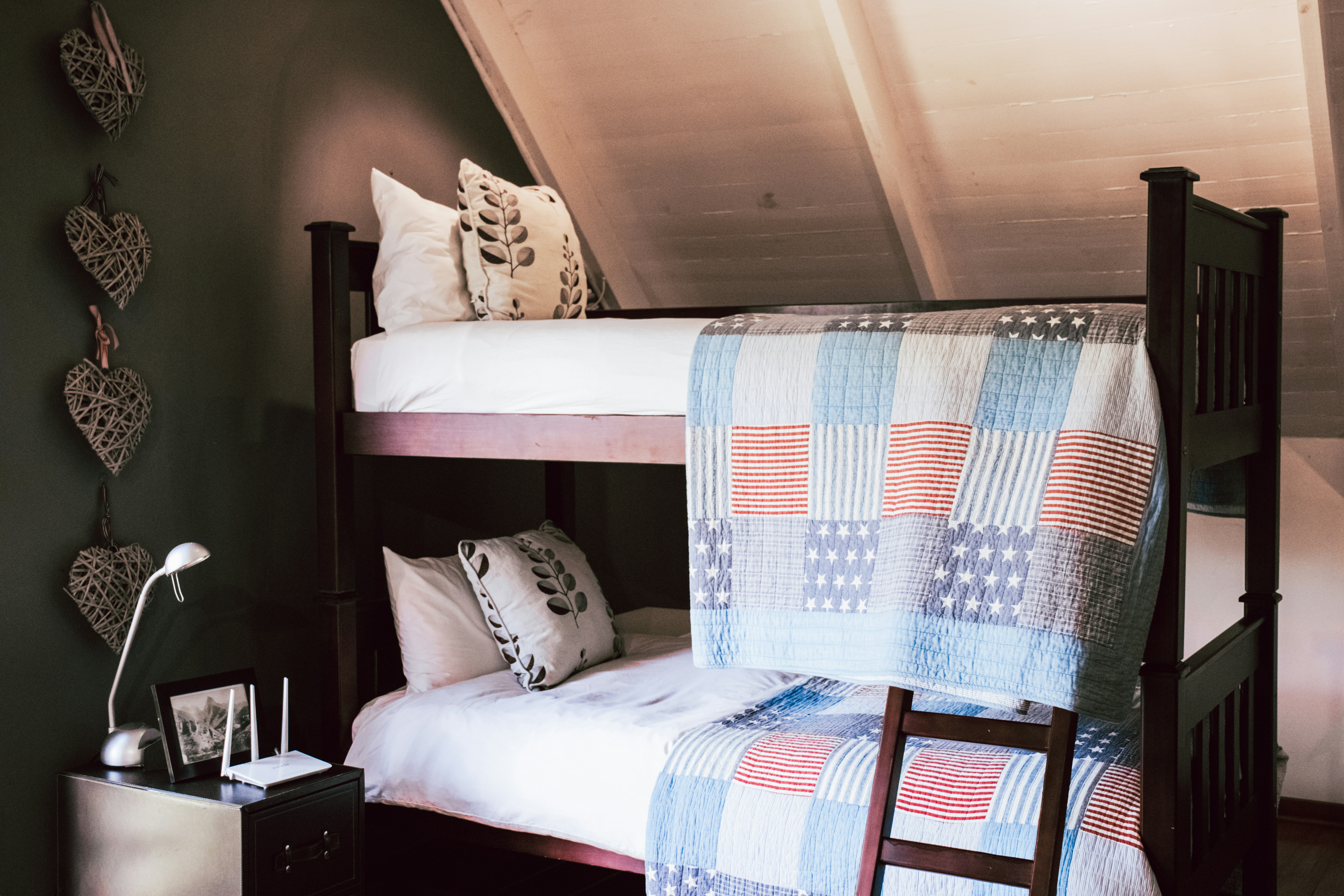Die kothuis het 3 slaapkamers, waarvan 1 op die boonste verdieping en 2 van die kamers het en suite-badkamers met 'n stort. Elkeen van die 3 slaapkamers het 'n dubbelbed. Daar is 2 enkelbeddens en 'n stapelbed in die solderarea. Daar is ook 'n ekstra badkamer onder. Die ander kamer wat onder is, het toegang tot die aangrensende badkamer. Linne en badhanddoeke word voorsien.