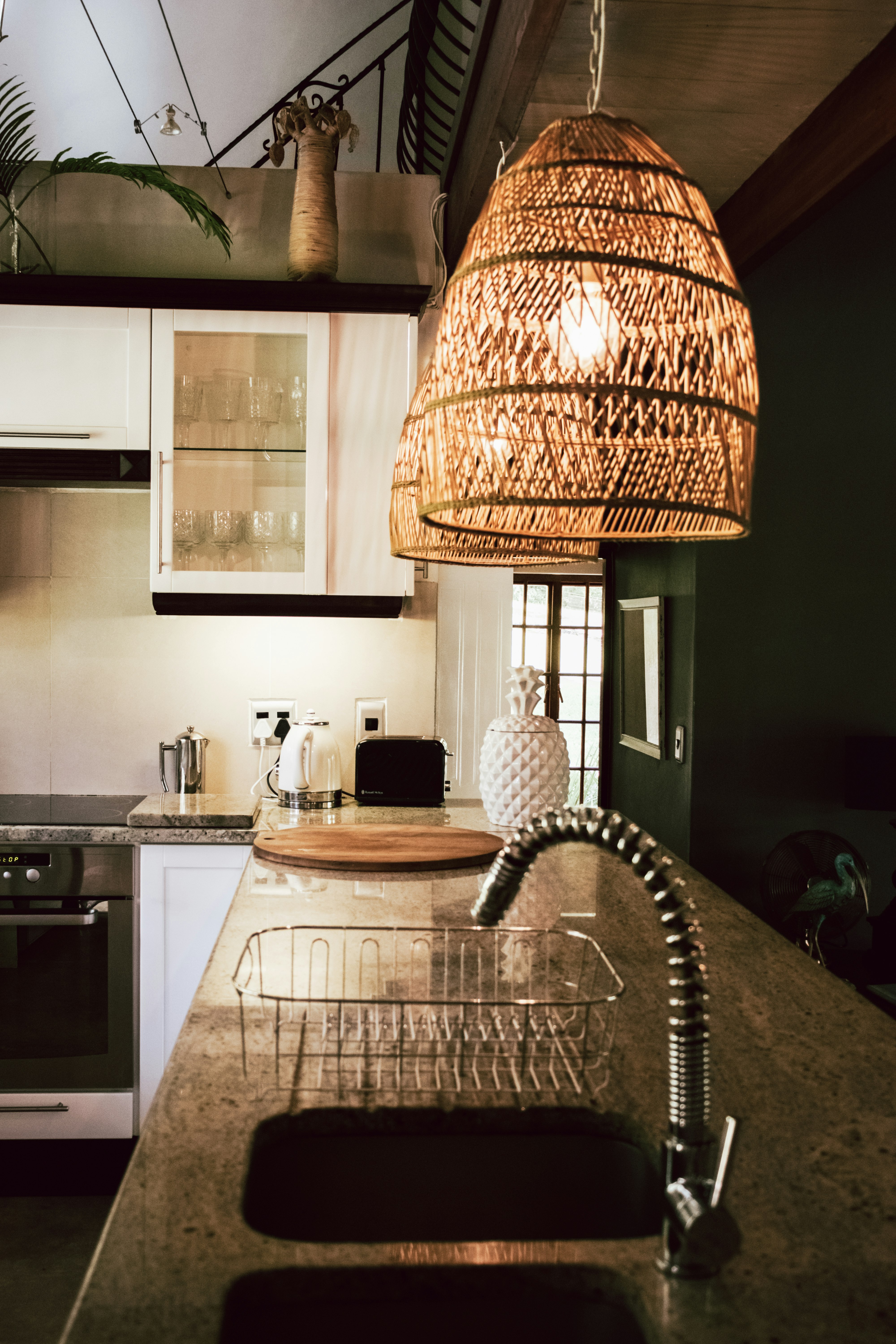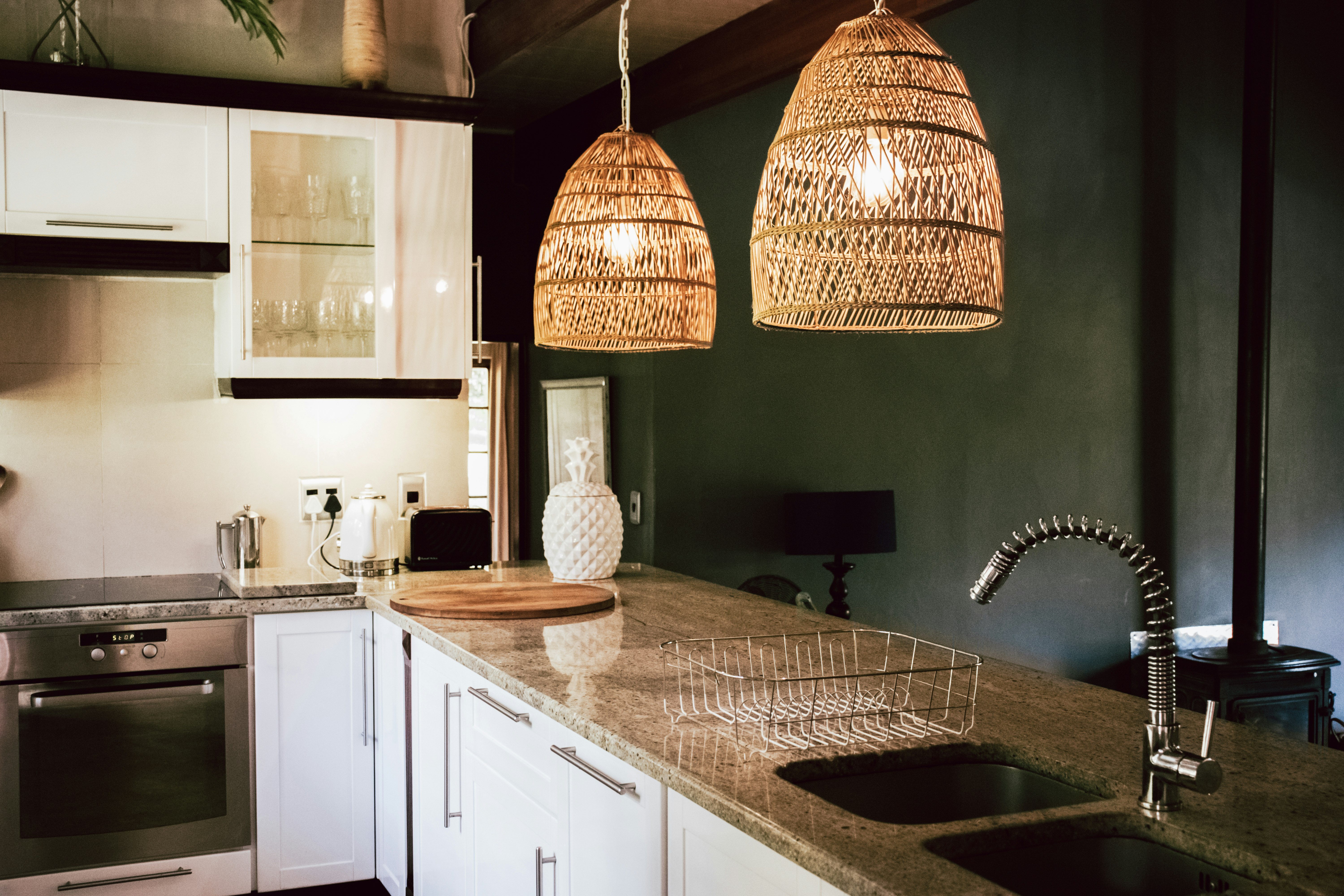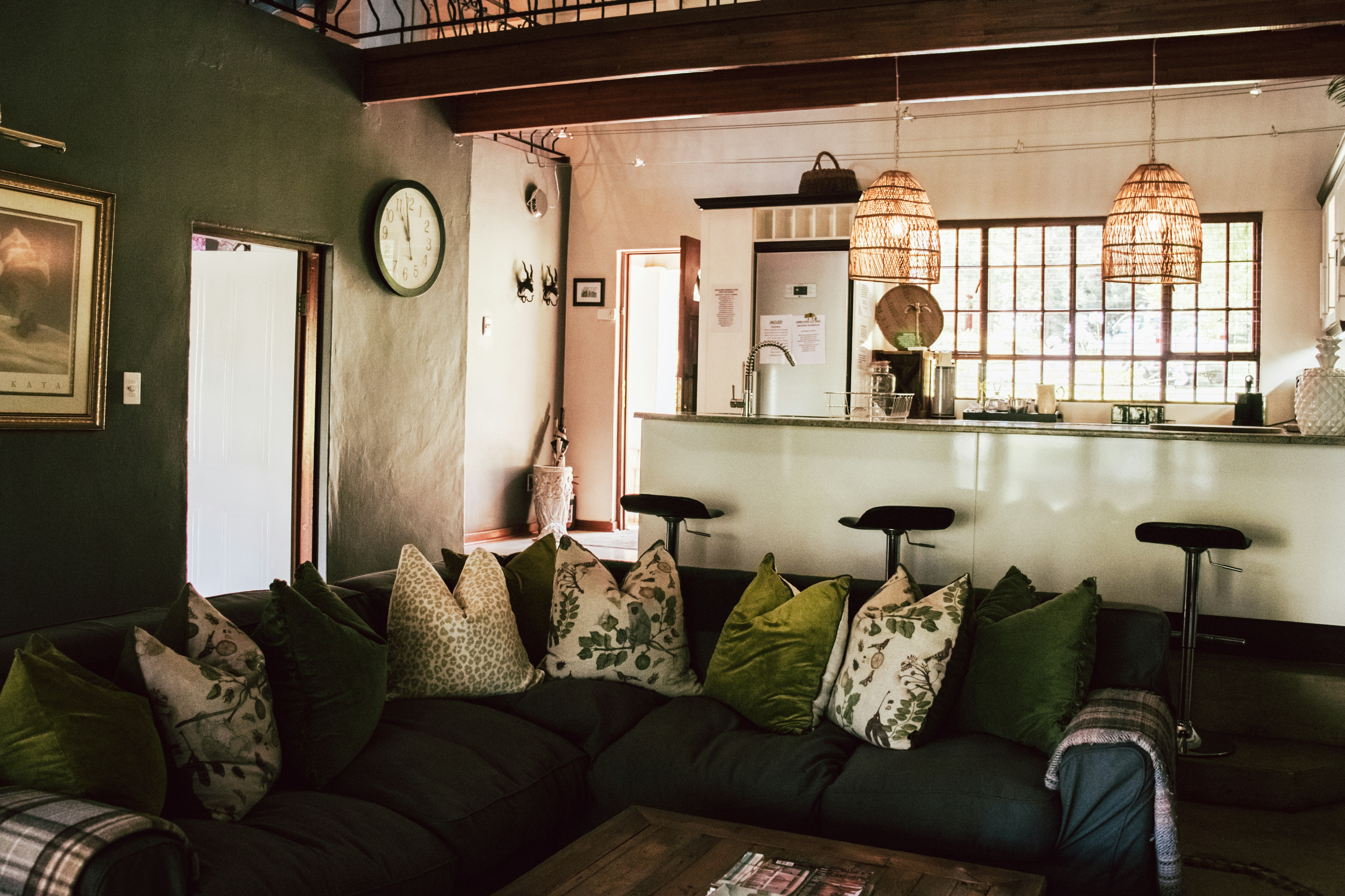 Die kothuis het 'n oopplan-kombuis en -leefarea. Die kombuis is vir selfsorg toegerus met 'n yskas-vrieskas, oond, stoof en 'n mikrogolfoond. Daar is ook 'n toonbank in die kombuis. Die oopplan-leefarea het 'n houtkaggel vir koue wintersaande en 'n TV met Netflix, 'n DVD-speler, 'n musieksentrum en WiFi.