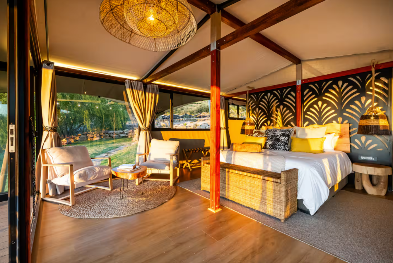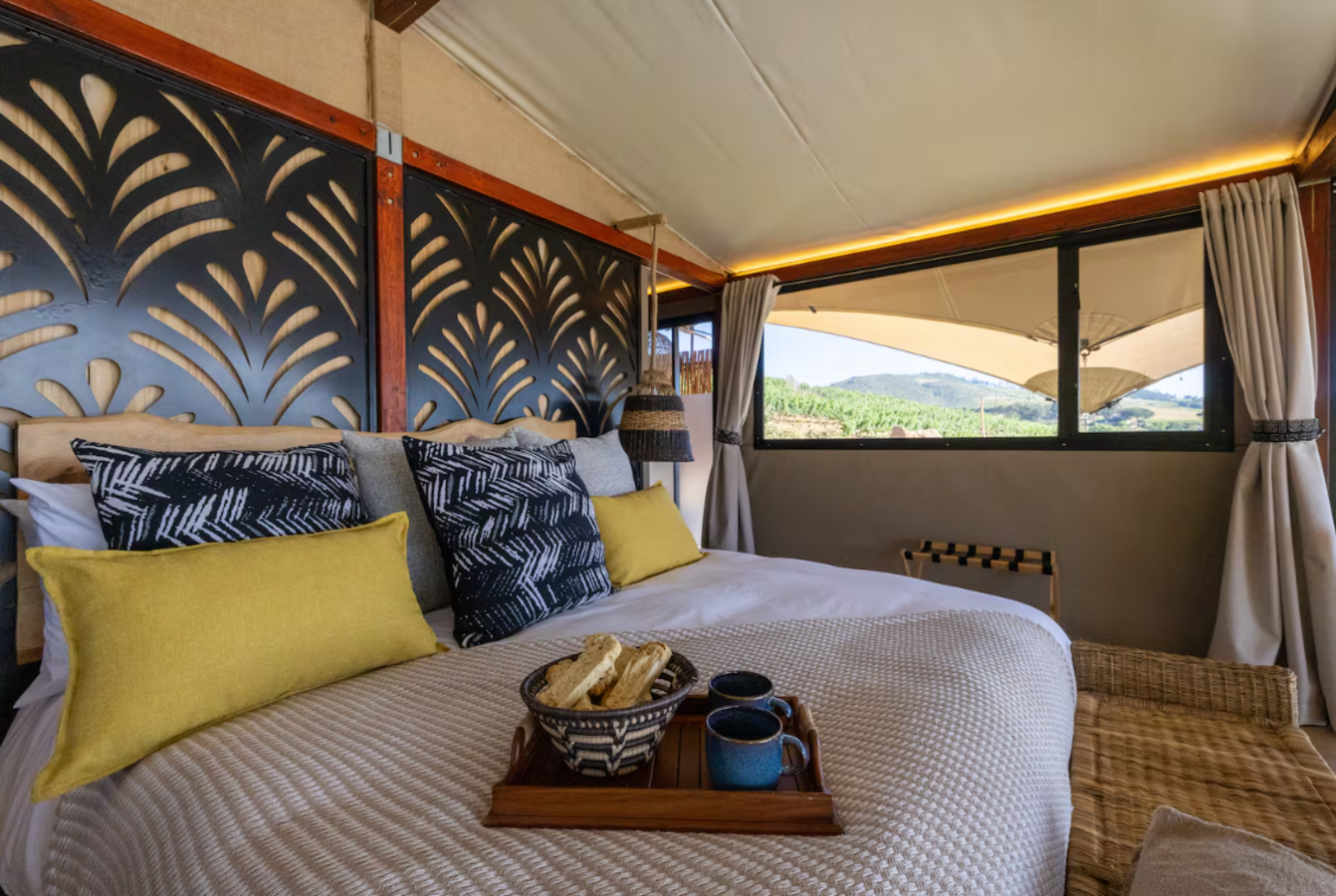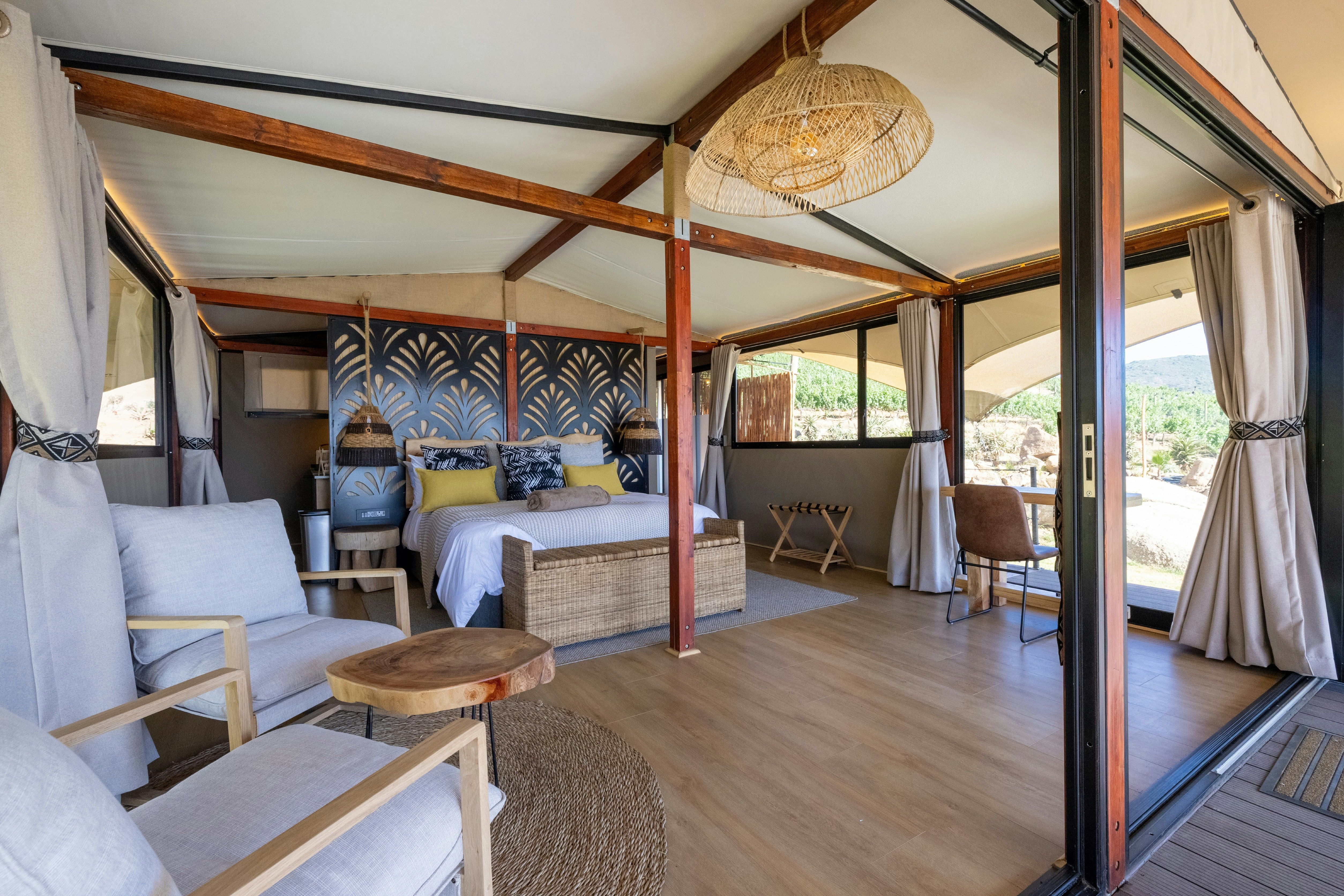 Amperbo Glamping is a luxury tented retreat set on the grounds of Amperbo Wine Estate in Stellenbosch, offering the ideal escape for guests seeking peace, comfort and a touch of romance.