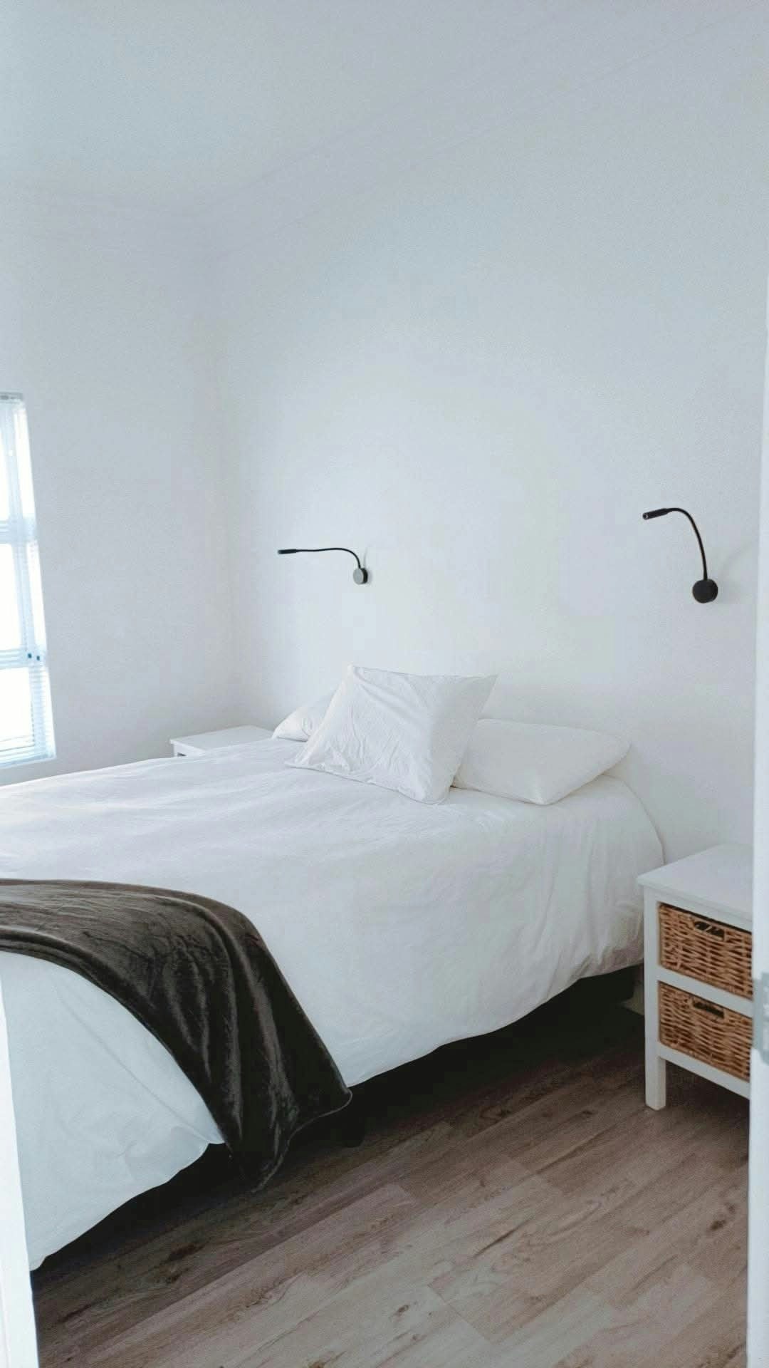This double-storey home can accommodate up to 8 guests and comprises 3 bedrooms, 2 bathrooms and a guest toilet. All 3 of the bedrooms are furnished with a double bed. The first bedroom has an en-suite bathroom fitted with a bath, double washbasin and toilet, while the rest of the bedrooms make use of a shared bathroom fitted with a shower. Linen is provided, however guests are required to bring their own bath and swimming towels.