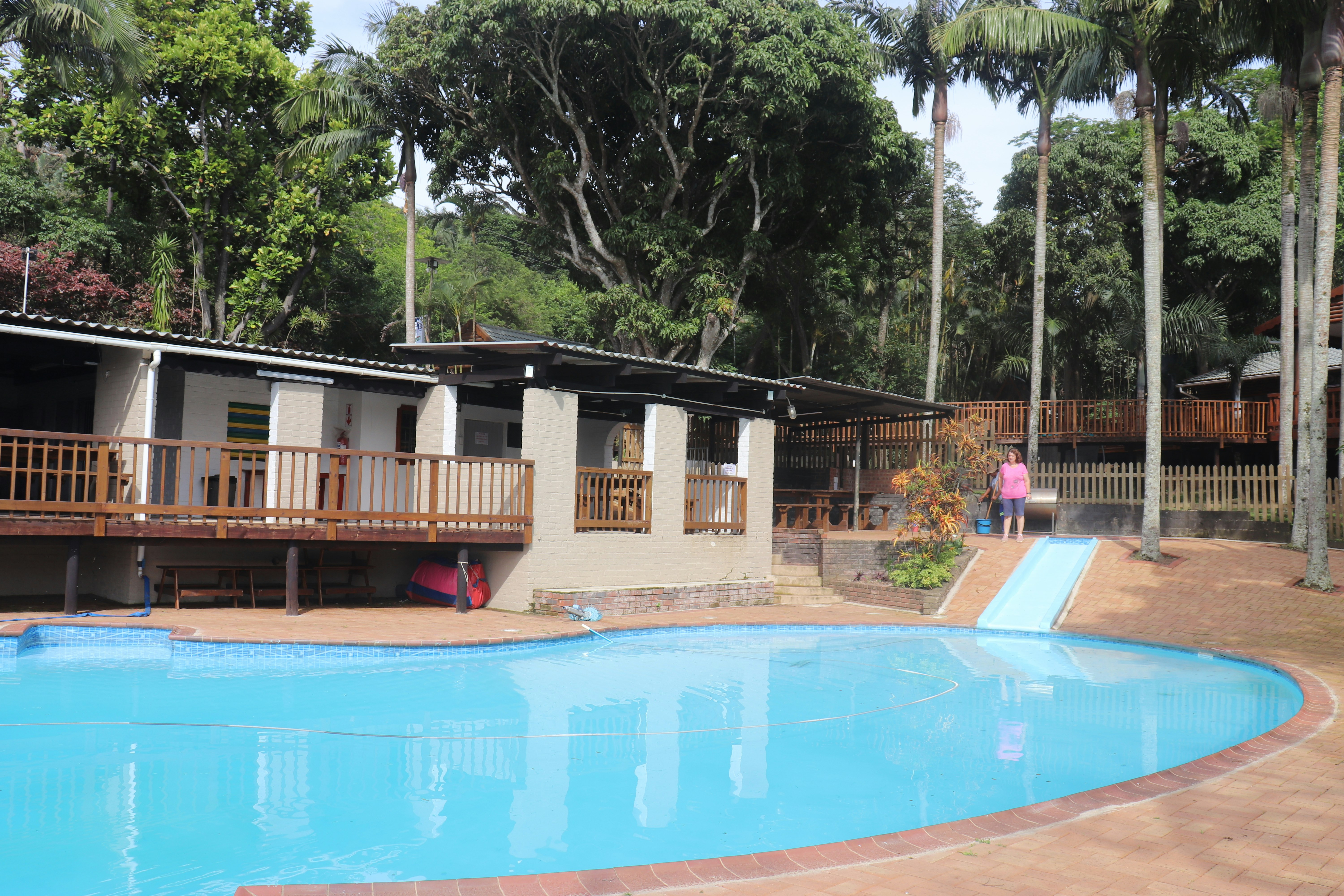 Gesin-seevakansie in en om Port-Shepstone Maart 2023. Personeel baie vriendelik en behulpsaam, hulle is heeltyd by die oord en beskikbaar. Huisie nommer 1 is baie netjies en in 'n goeie toestand, word daagliks skoongemaak. Huisie nommer 1 is vir 4 gaste, dubbelbed en afslaanbank in leefarea. Die huisie is erg warm in die middae, lugversorger werk, maar sal gediens moet word. Oord besig met opgraderings en herstelwerk. Kroeg/restaurant se kos baie lekker. Permanente inwoners baie vriendelik. Groot, netjiese, skoon swembadarea met braaigeriewe. Die wifi is beskikbaar, maar mens vang dit slegs by die kroeg op, baie stadig en konneksie laat mens heeltyd in die steek. Oord raas ongelukkig baie in die aande.