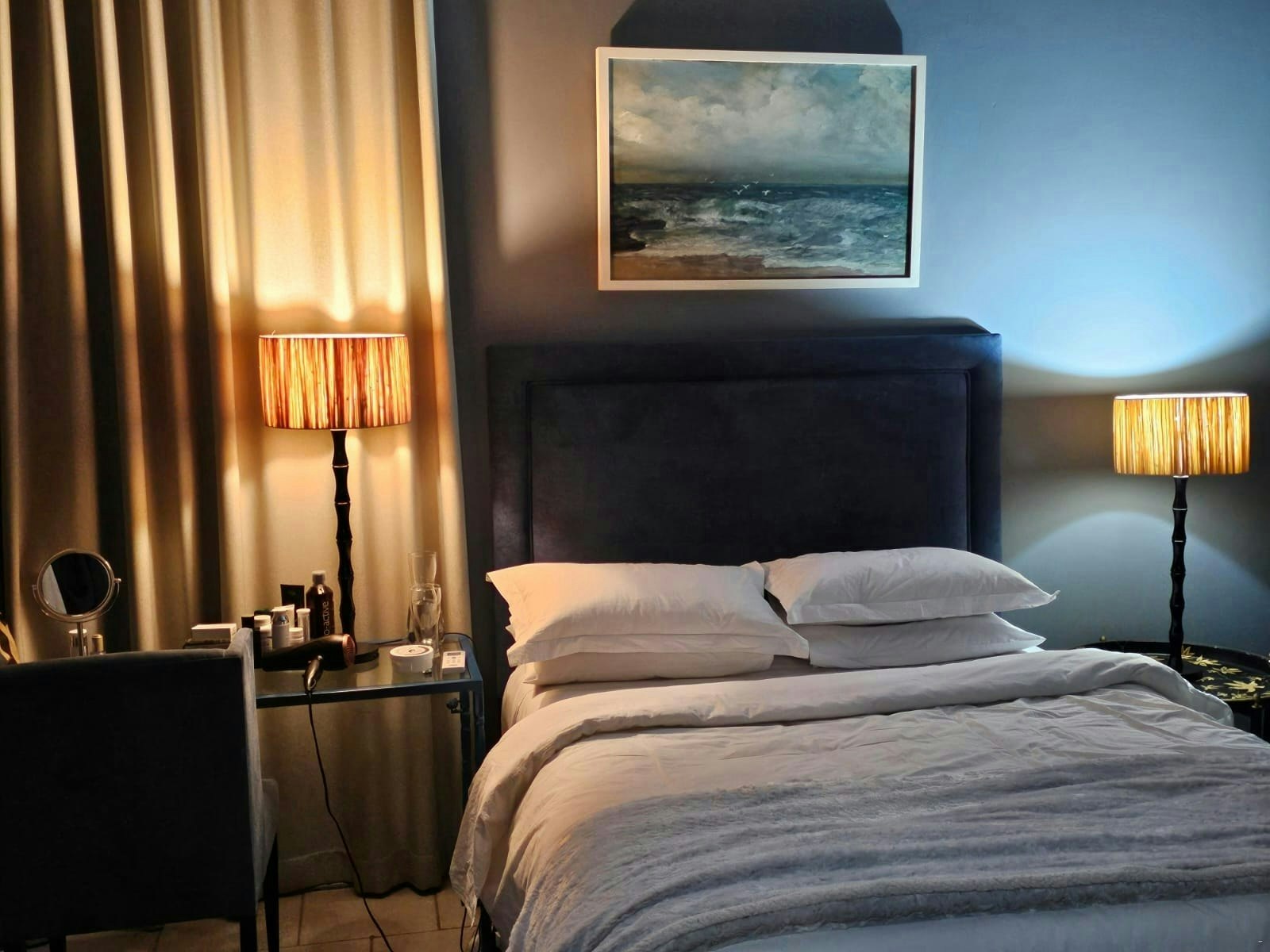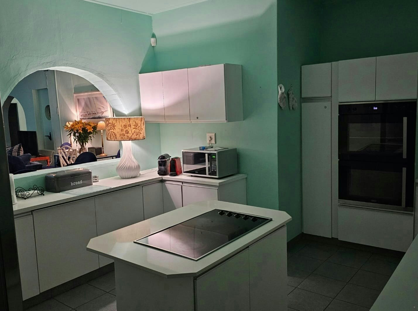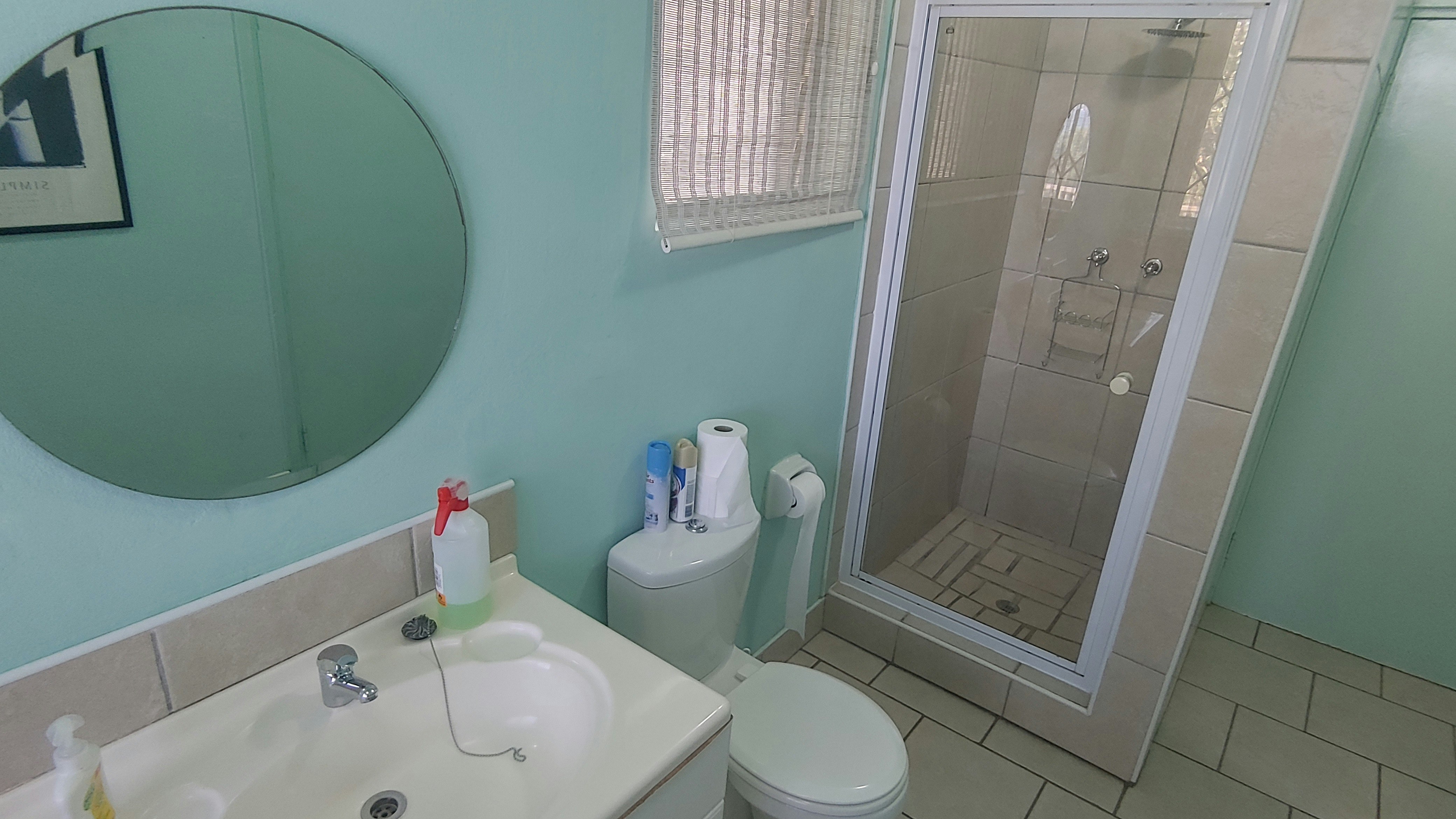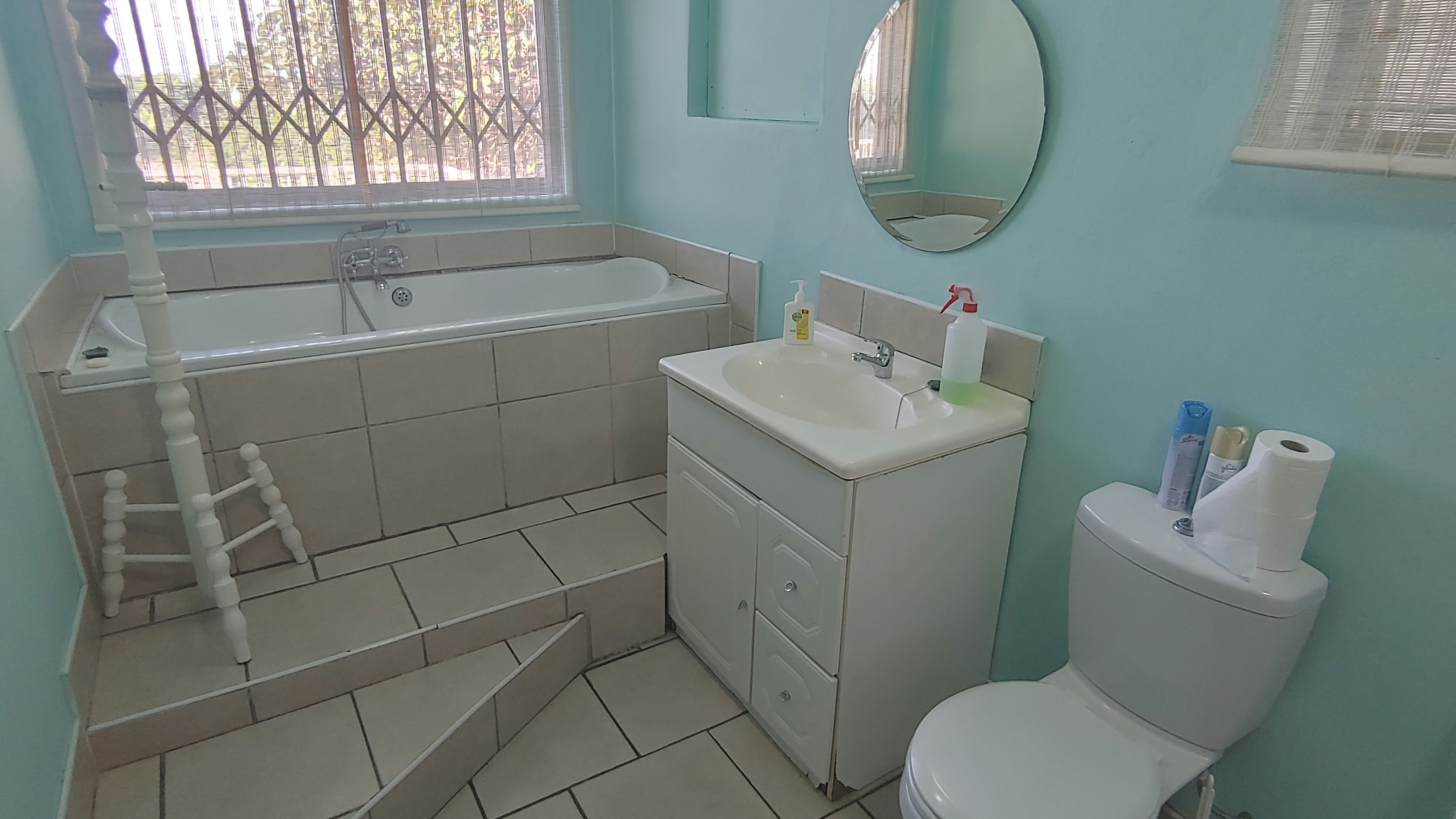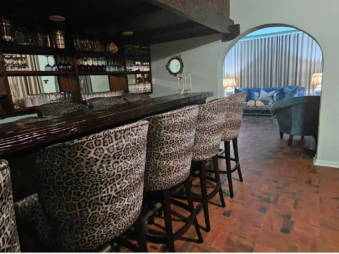 The kitchen is equipped with a fridge-freezer, stove, oven, microwave, cutlery and crockery, and tea- and coffee-making facilities. A washing machine and tumble dryer is available for the guests convenience in the scullery. The living room is furnished with comfortable seating, a Smart TV is provided for streaming off your own DSTV account, and a dining table. Guests can also enjoy the bar that is equipped with the necessary crockery and a bar with stools. The living area has doors that open onto a patio that is furnished with a dining table and sun loungers. Access to Wi-Fi is available.