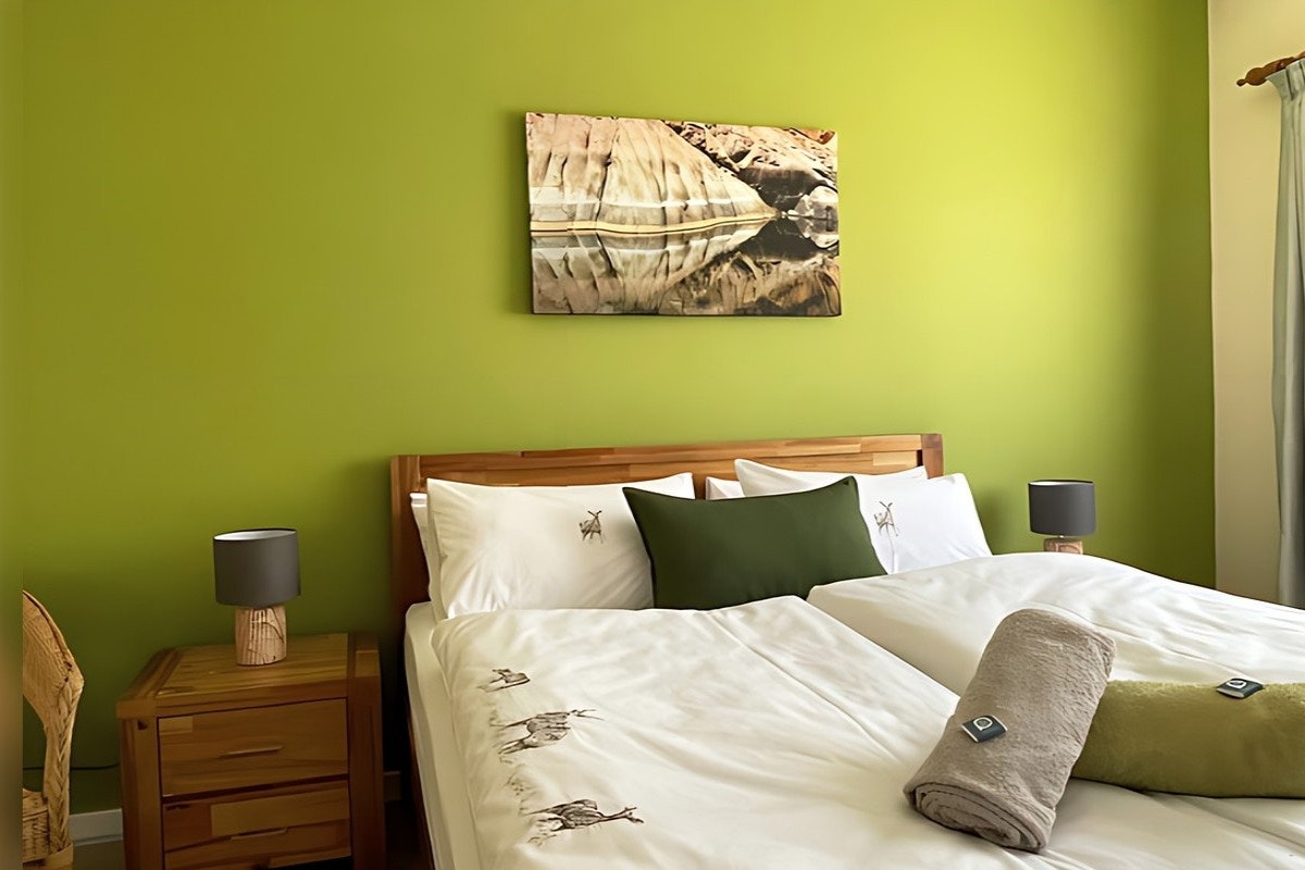 Dié verblyf bied slaapplek aan 6 gaste en beskik oor 3 slaapkamers en 2 badkamers. Elke slaapkamer het 'n koningingrootte-bed en elke badkamer het 'n instapstort, toilet en 'n wasbak. Linne, badhanddoeke en seep word voorsien.