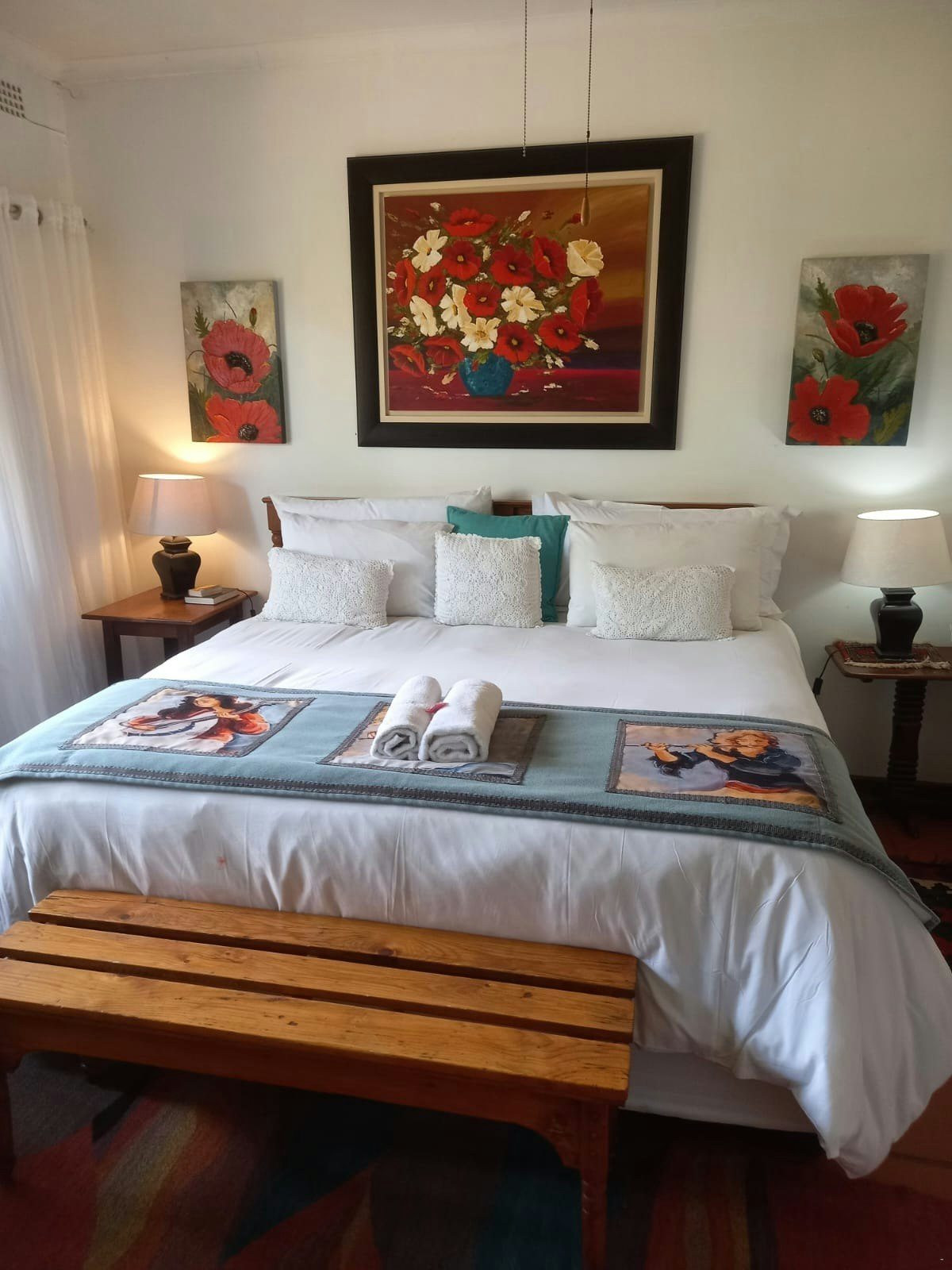 The guesthouse features 8 beautifully appointed rooms, each with an en-suite bathroom. All rooms are equipped with air-conditioning, comfortable beds, soft duvets, crisp linen, and private entrances. Additional in-room amenities include hairdryers, TVs, tea- and coffee-making facilities, bar fridges, and complimentary Wi-Fi.