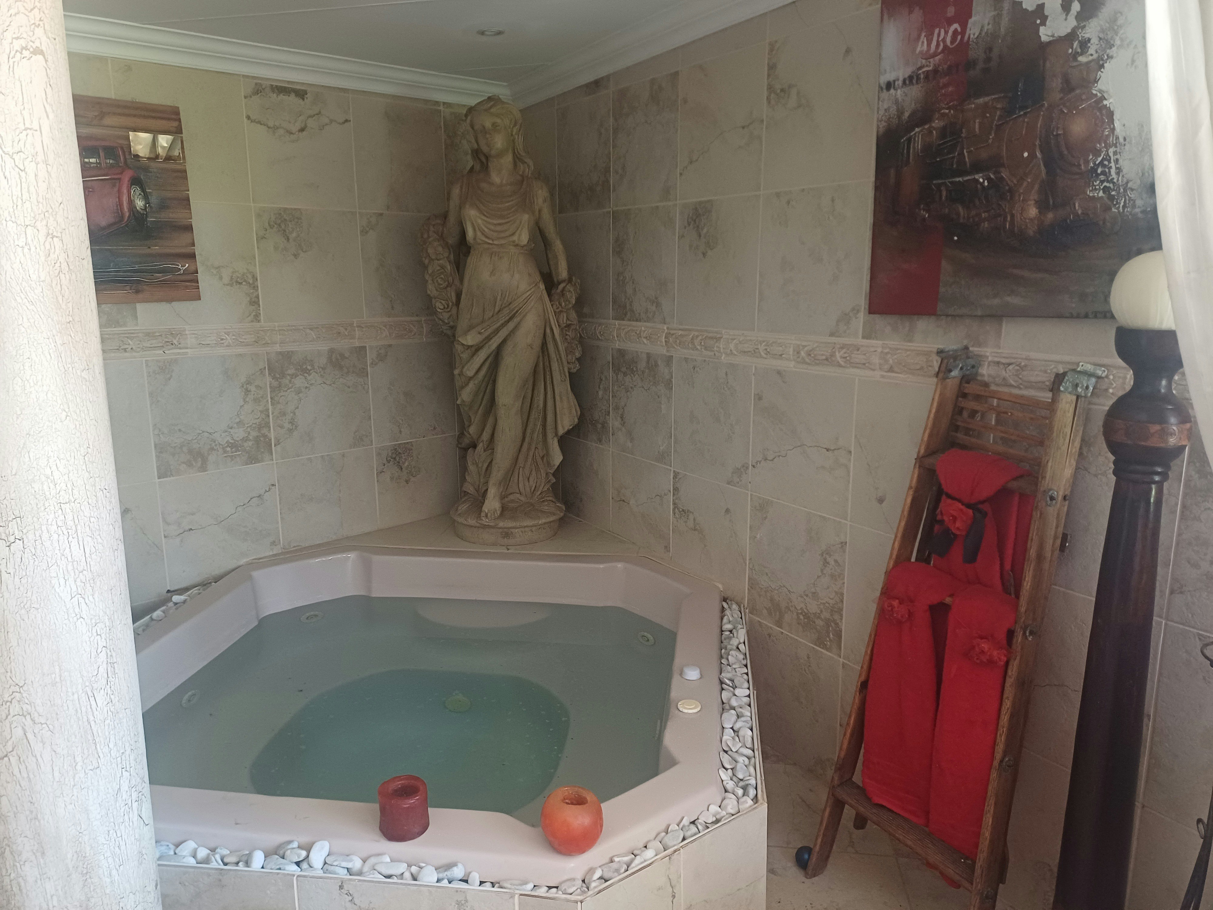 Buite kan gaste ontspan by die gedeelde braai-area of afkoel in die gemeenskaplike swembad. 'n Privaat jacuzzi is op aanvraag beskikbaar teen 'n bykomende koste, perfek om te ontspan na 'n lang dag. Veilige parkering op die perseel word voorsien.