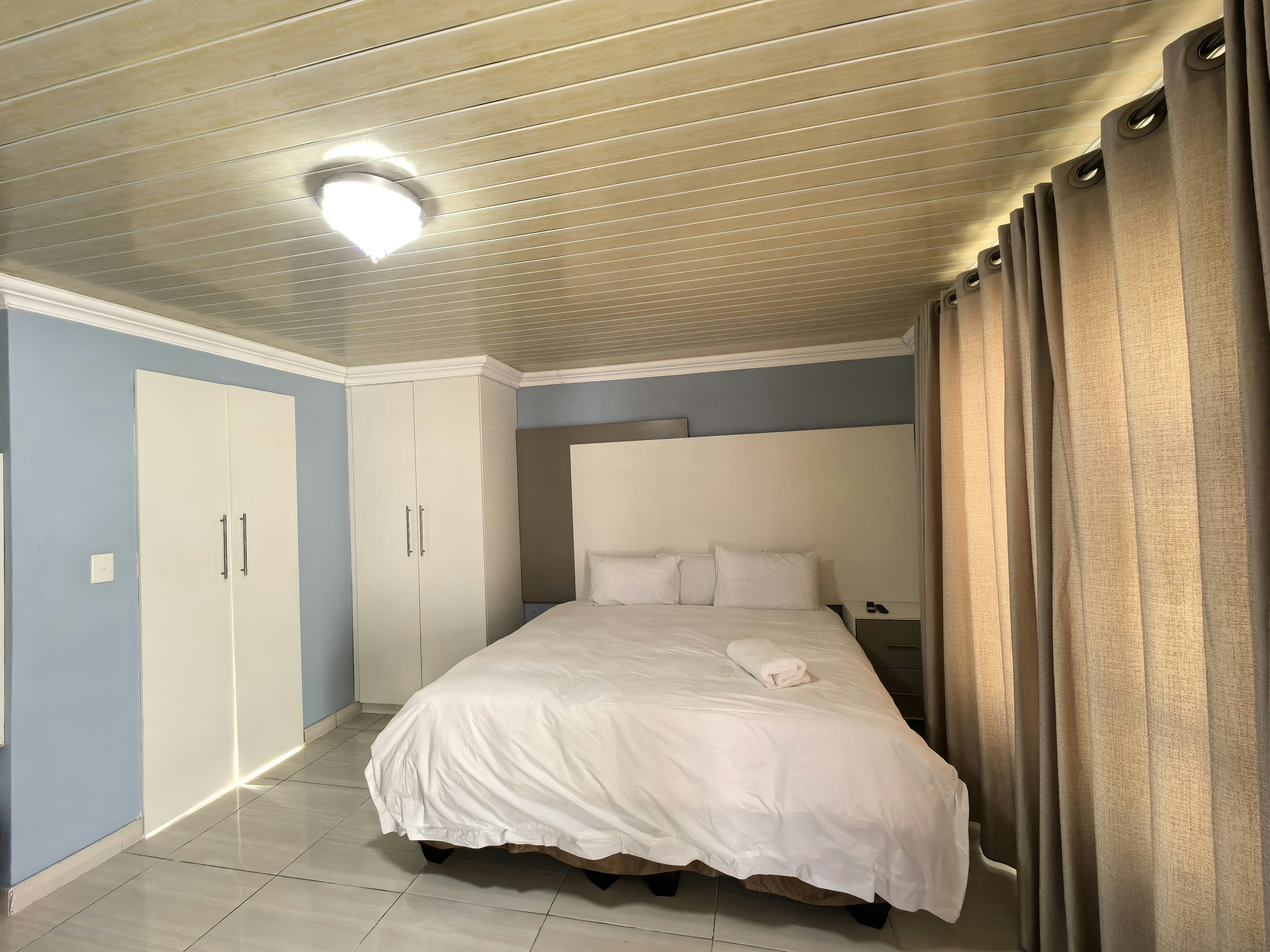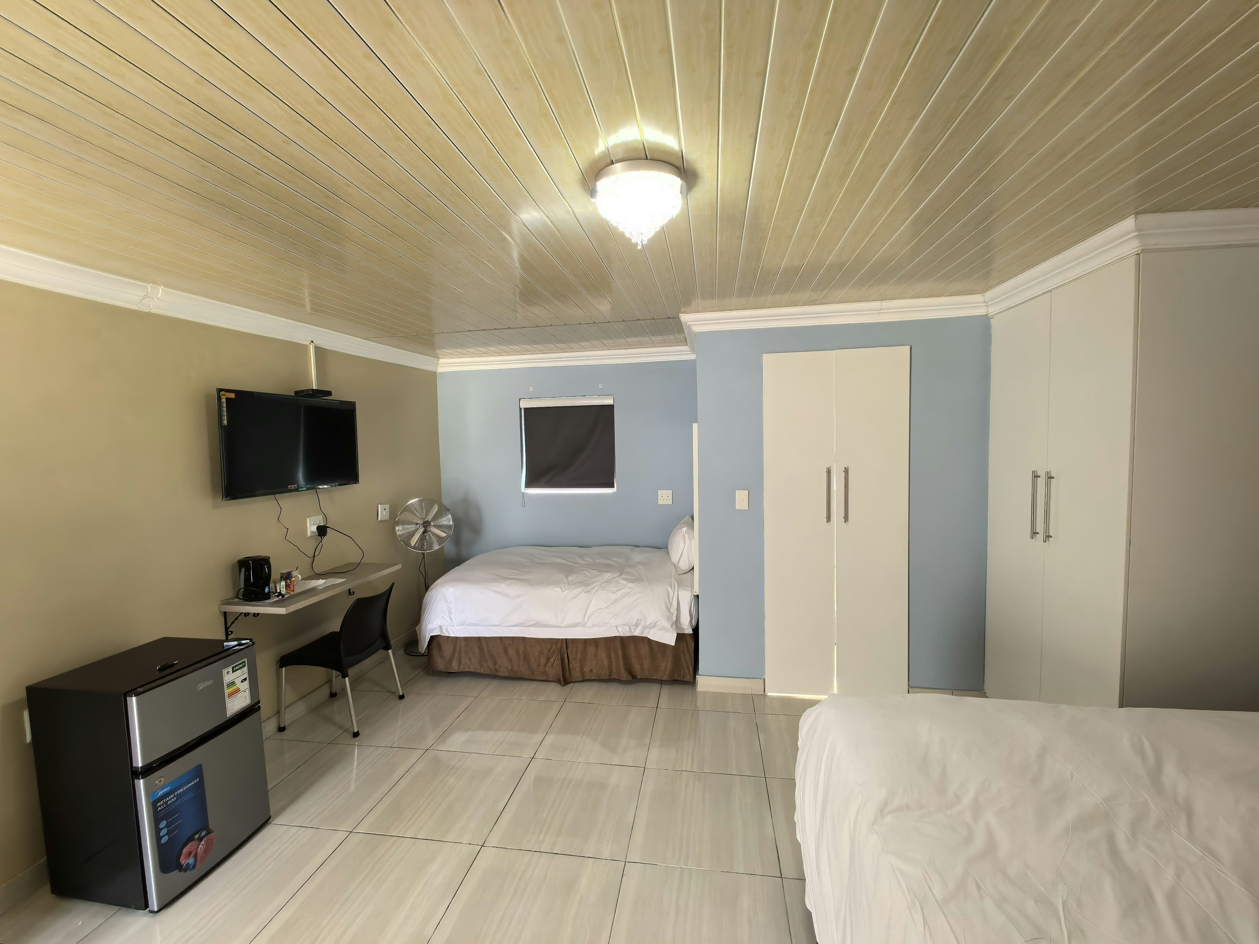 The guesthouse features 15 beautifully furnished rooms, each equipped with a TV offering DSTV channels and free Wi-Fi facilities. Each room includes a private en-suite bathroom, coffee- and tea-making facilities, ceiling fans, a work desk, and a bar fridge.
