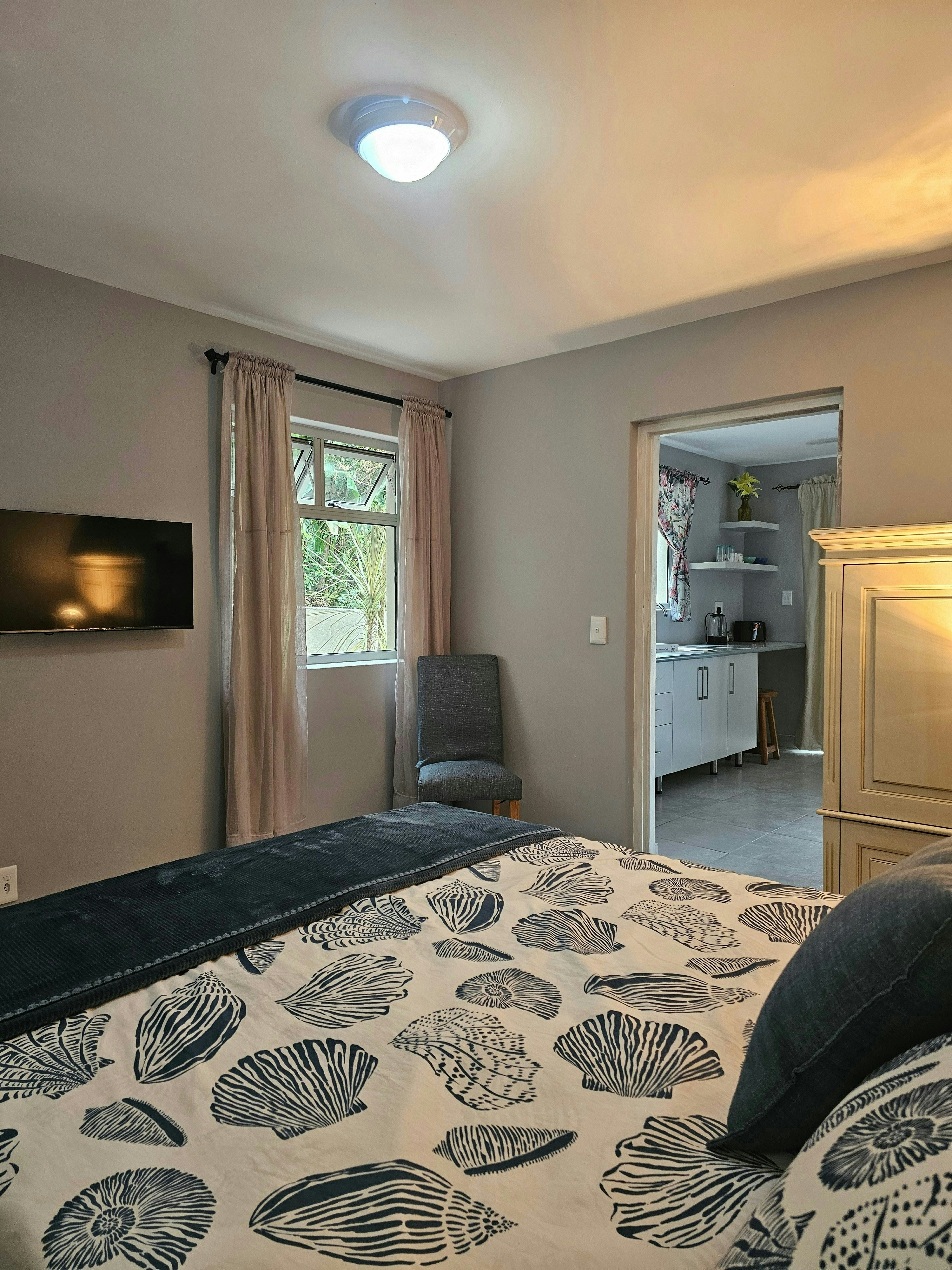 Ants Nest 2 accommodates 2 guests, the bedroom is furnished with a queen bed. The bathroom has a shower, toilet, and washbasin. The open-planned kitchenette has an induction plate, microwave, kettle, toaster and bar fridge there is a cosy couch as well for guests to unwind. Other in-unit facilities include a TV in the bedroom.