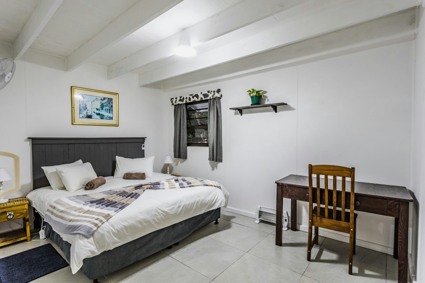 Die skuifdeure lei na 'n onderdakstoep met piekniekbankies, braaigeriewe en hangmatte. Veilige parkeerplek is beskikbaar.