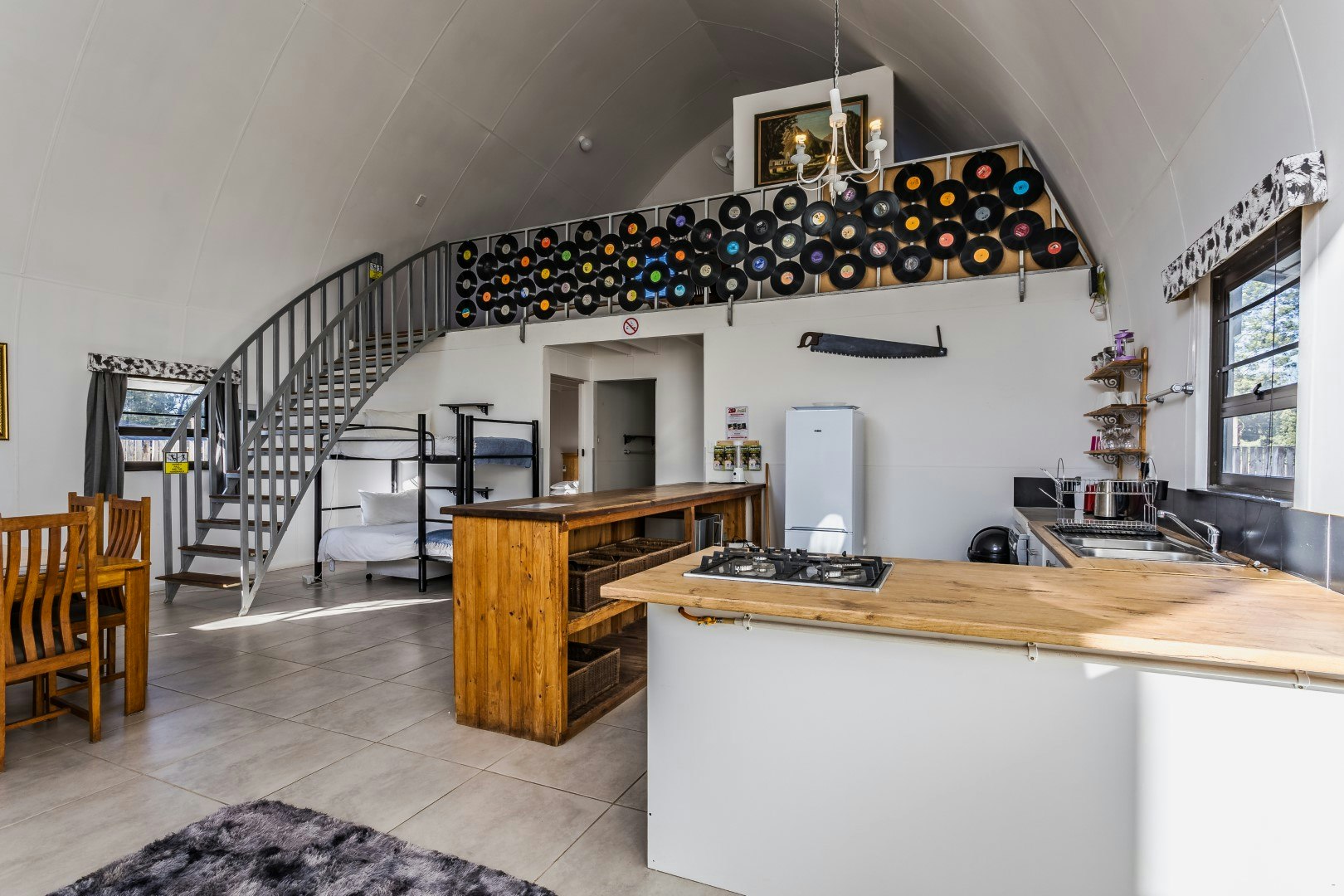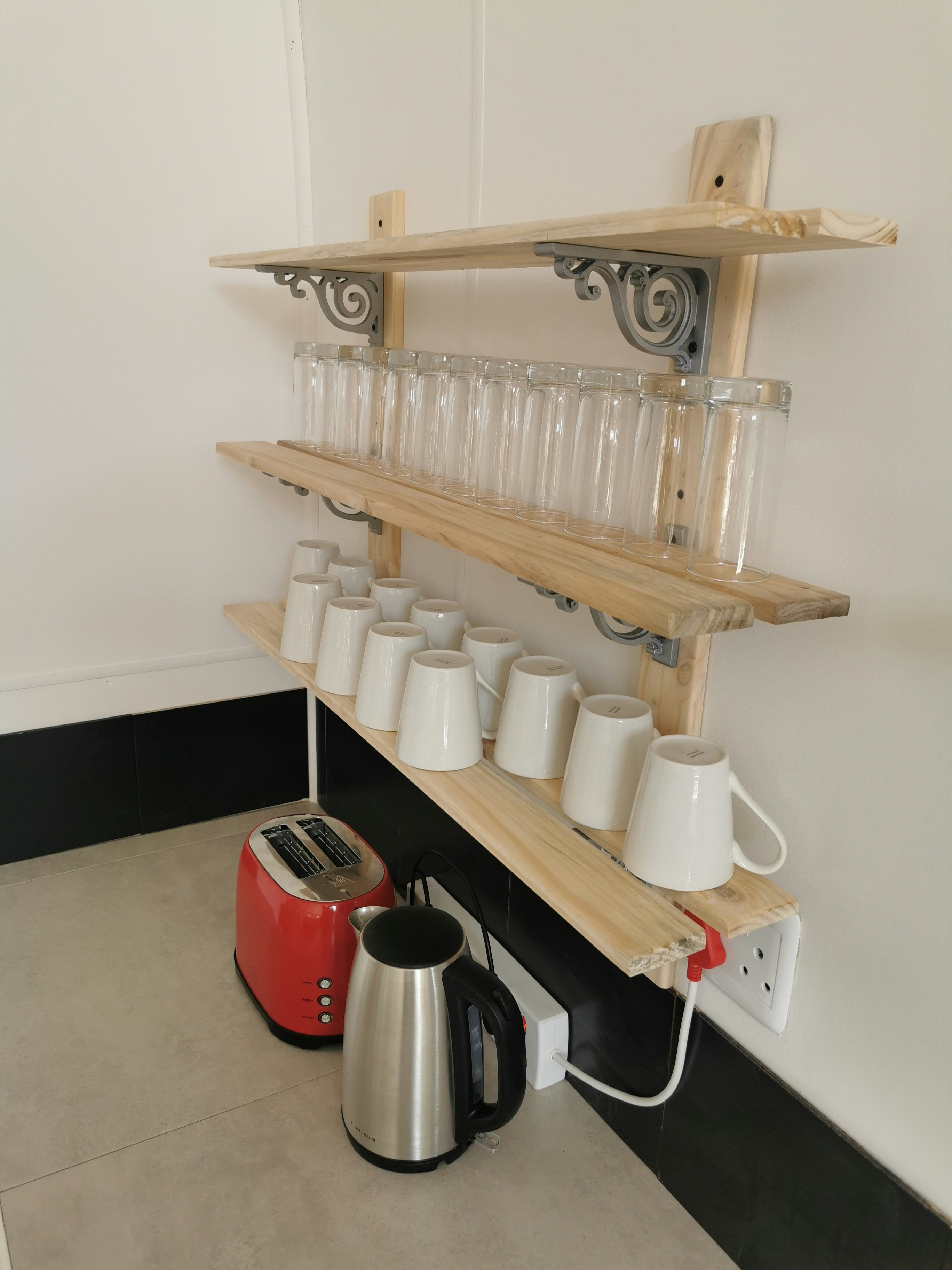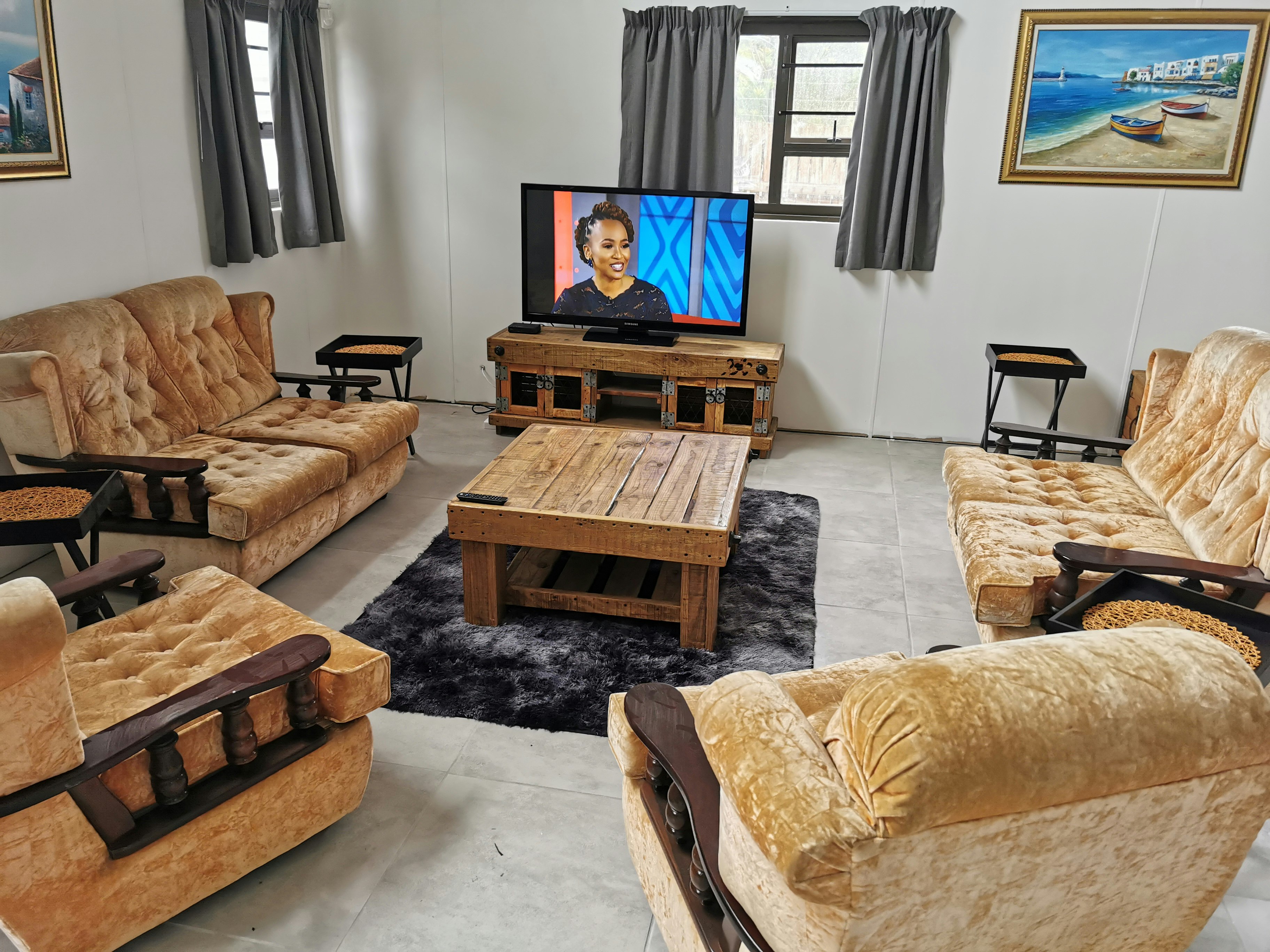 Die kombuis is met 'n gasstoof, yskas-vrieskas, mikrogolf, ketel, broodrooster, potte en panne, eetgerei en breekware toegerus. Die eetarea het 'n etenstafel vir 8 en stoele. Die sitarea het 'n afstandbeheerde waaier, gemaklike sitplek, 'n TV met sekere DStv-kanale en 'n DVD-speler met 'n keuse van DVD's, asook 'n speletjiesstelsel. 'n Radio of LP-speler en WiFi is beskikbaar. Bord- en kaartspeletjies word voorsien.