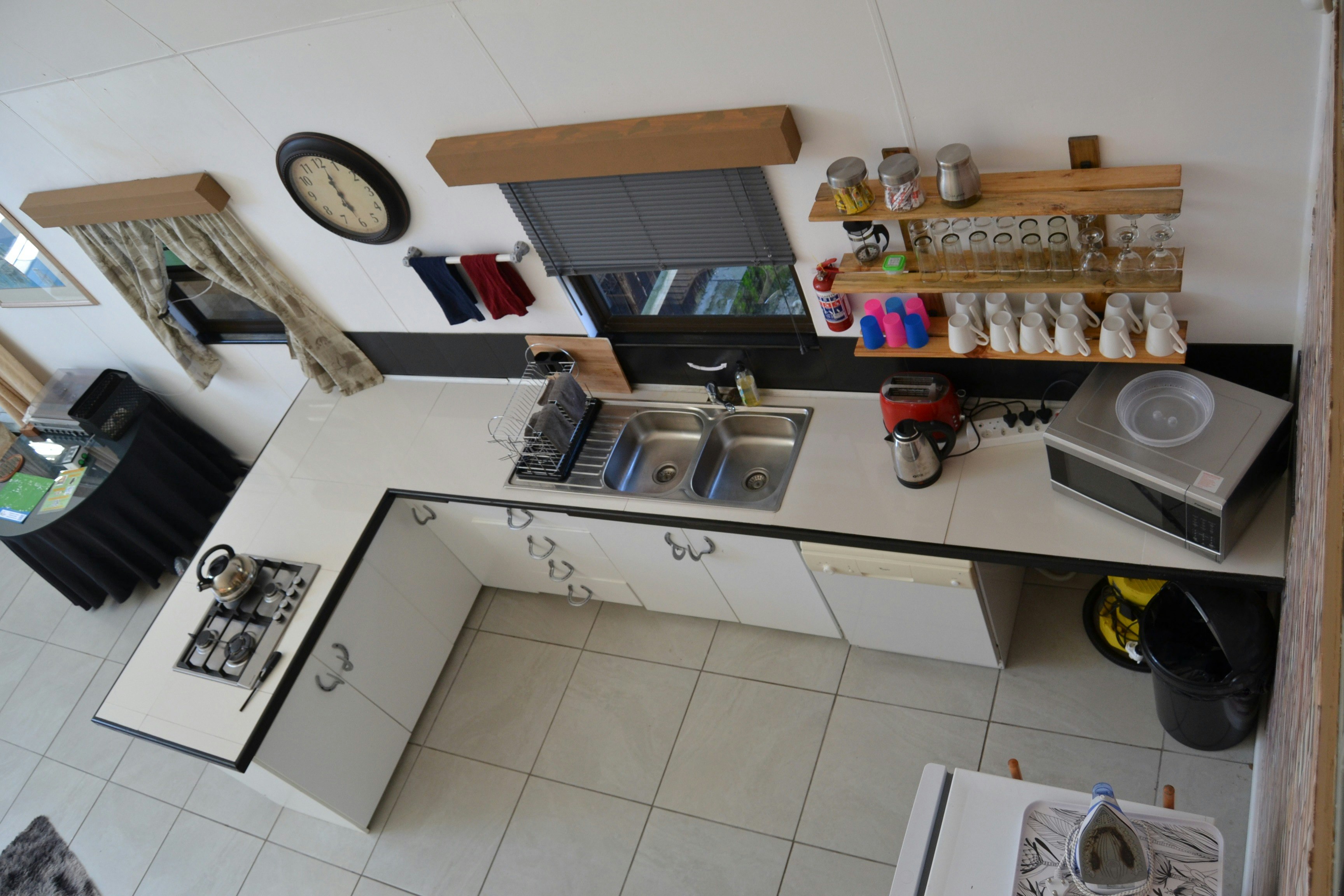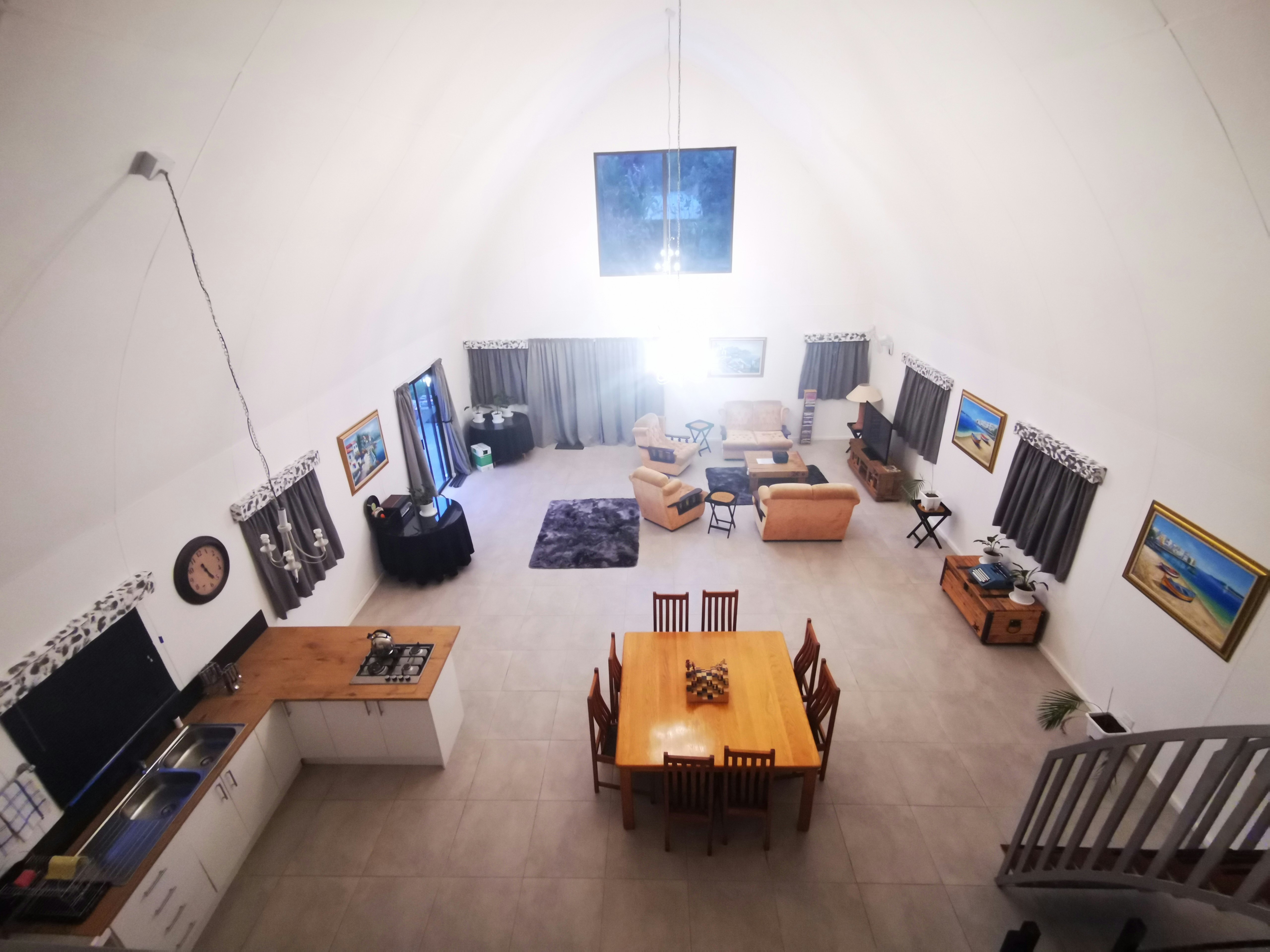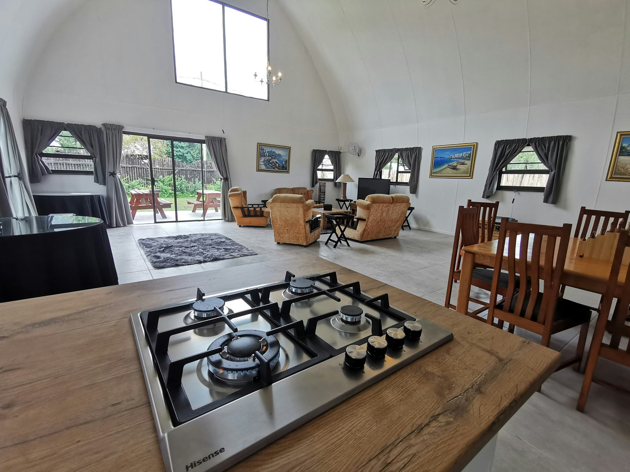 Die kombuis is met 'n gasstoof, yskas-vrieskas, mikrogolf, ketel, broodrooster, potte en panne, eetgerei en breekware toegerus. Die eetarea het 'n etenstafel vir 8 en stoele. Die sitarea het 'n afstandbeheerde waaier, gemaklike sitplek, 'n TV met sekere DStv-kanale en 'n DVD-speler met 'n keuse van DVD's, asook 'n speletjiesstelsel. 'n Radio of LP-speler en WiFi is beskikbaar. Bord- en kaartspeletjies word voorsien.