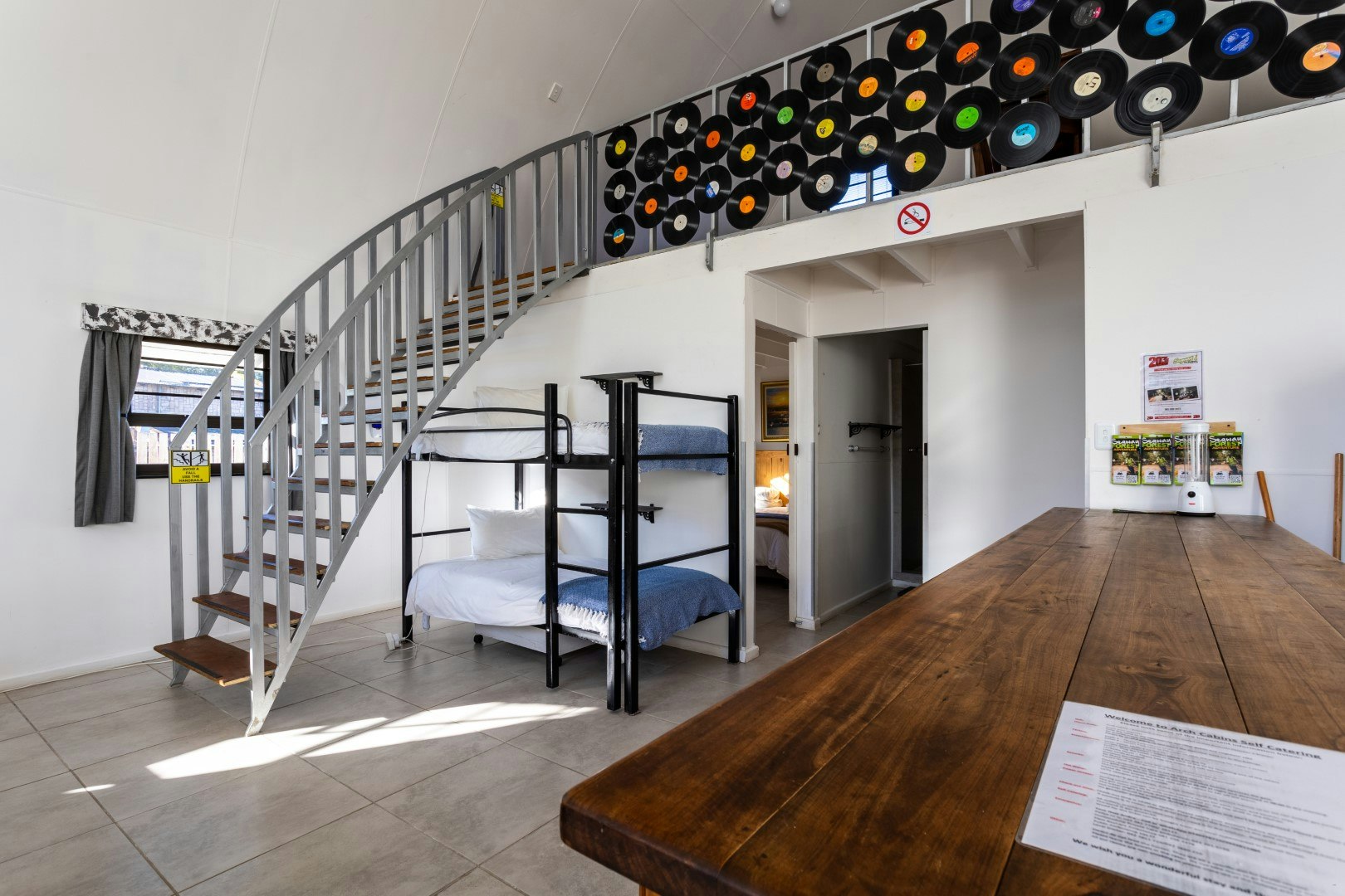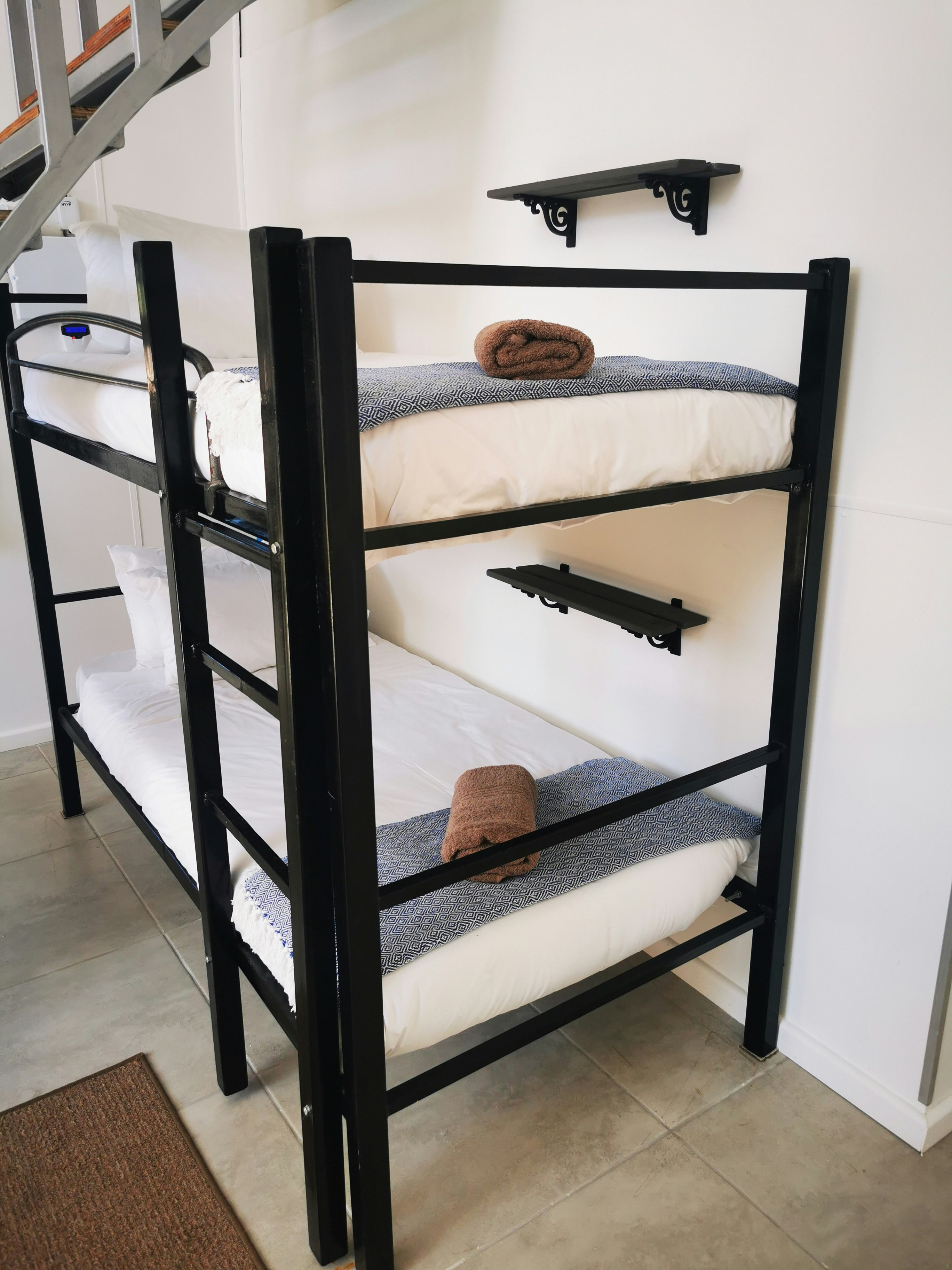 Elke houthuisie bied verblyf aan tot 8 gaste en beskik oor 3 slaapkamers, 2 badkamers en 'n oopplan-kombuis, -eetarea en -leefarea. Die eerste slaapkamer is op 'n tussenvloerverdieping, en is 'n solderstylkamer met 'n koninggrootte-bed, 'n en suite-badkamer wat 'n stort, toilet en 'n wasbak het. Die tweede en derde slaapkamers is op die onderste verdiepings. Die tweede slaapkamer het 'n koninggrootte-bed en die derde slaapkamer het 2 enkelbeddens. Al die slaapkamers het afstandbeheerde waaiers. Gaste in die tweede en derde slaapkamer deel 'n badkamer met 'n stort, toilet en wasbak. Daar is 'n stapelbed in die leefarea, onder die trappe, wat ideaal is vir 2 kinders.