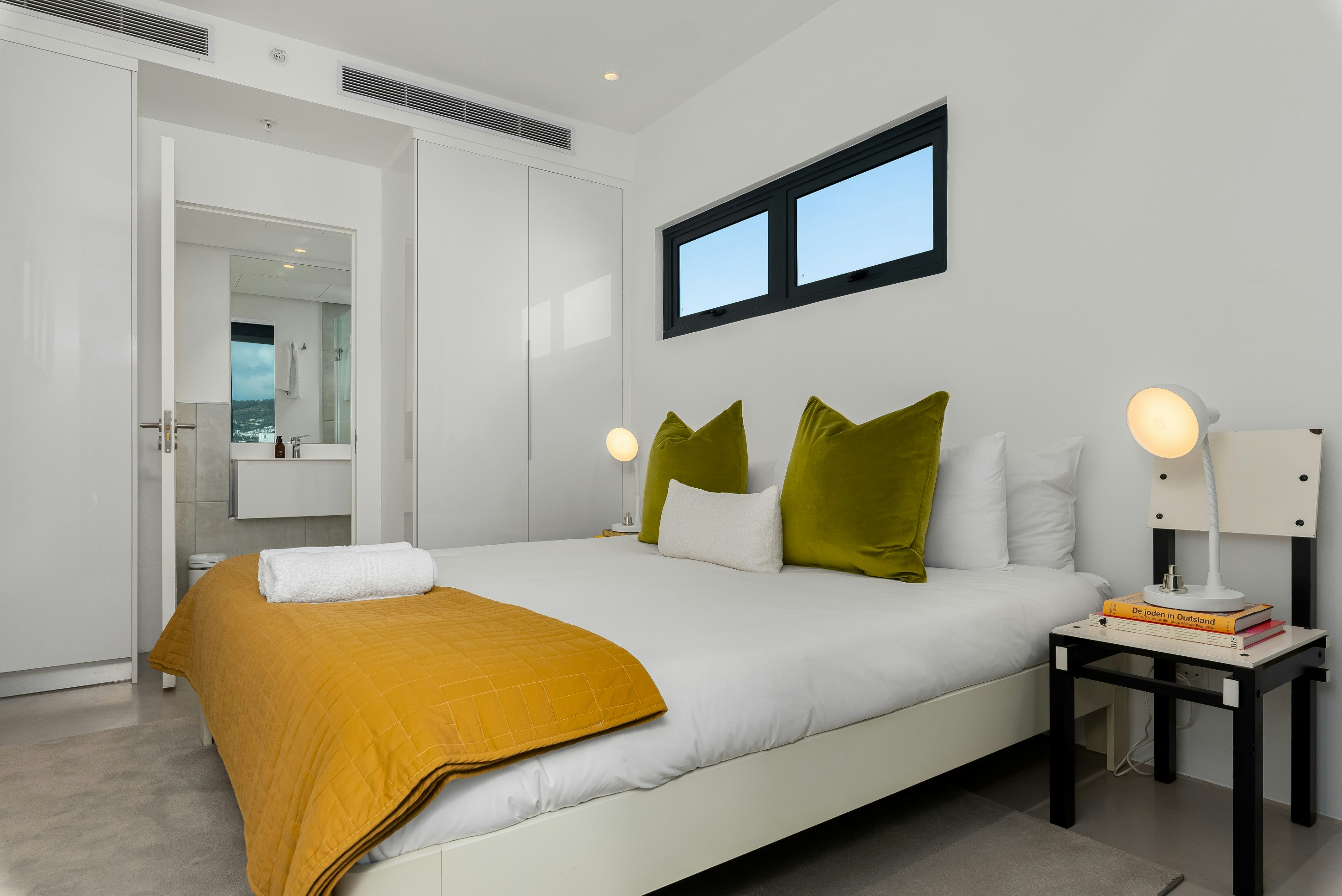 Guests have access to communal facilities, including a swimming pool and gym area, both boasting spectacular views of the city skyline and Table Mountain. With its prime location, the apartment is within a short distance of top restaurants, shops, and major attractions, making it an ideal base for those exploring Cape Town.