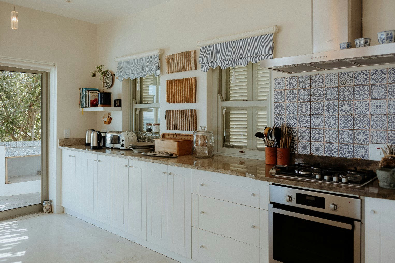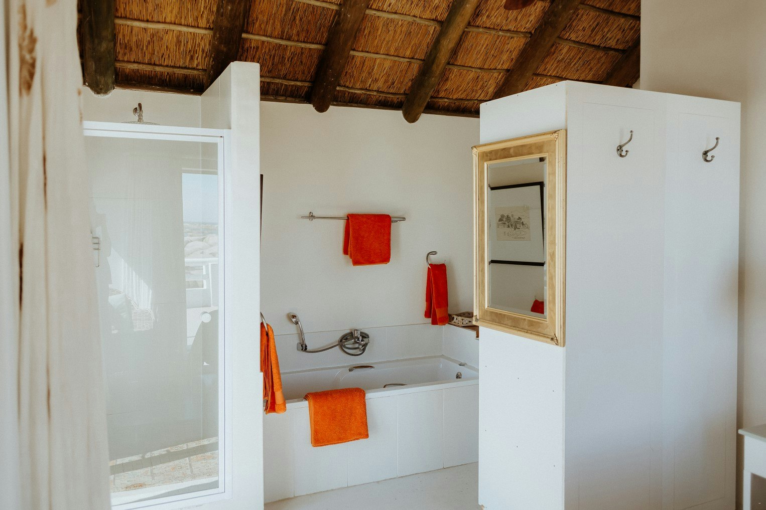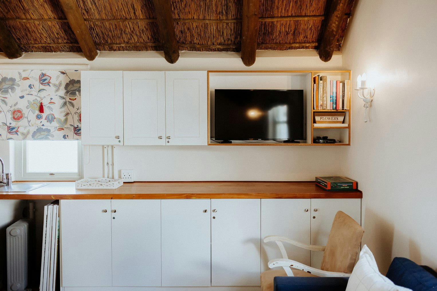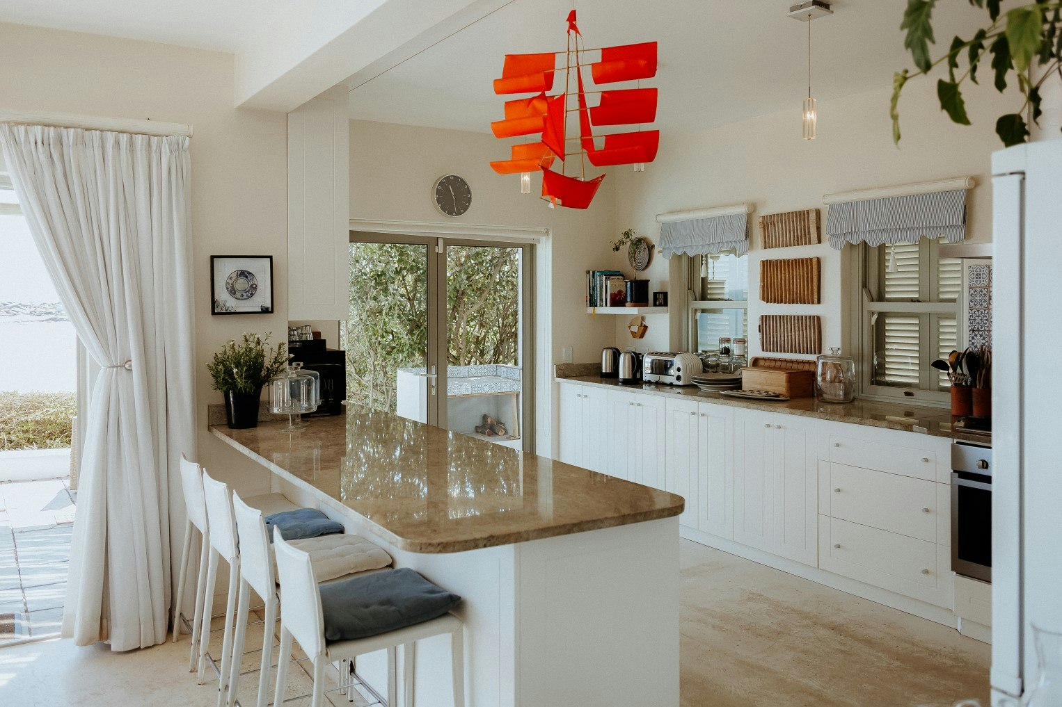 Die ruim leefarea het ook 'n eetarea, 2 sitareas, 'n leeshoekie en 'n kombuis met groot deure wat na 'n stoep lei. Die kombuis is met 'n yskas, stoof, oond, mikrogolfoond en tee- en koffiemaakgeriewe toegerus.