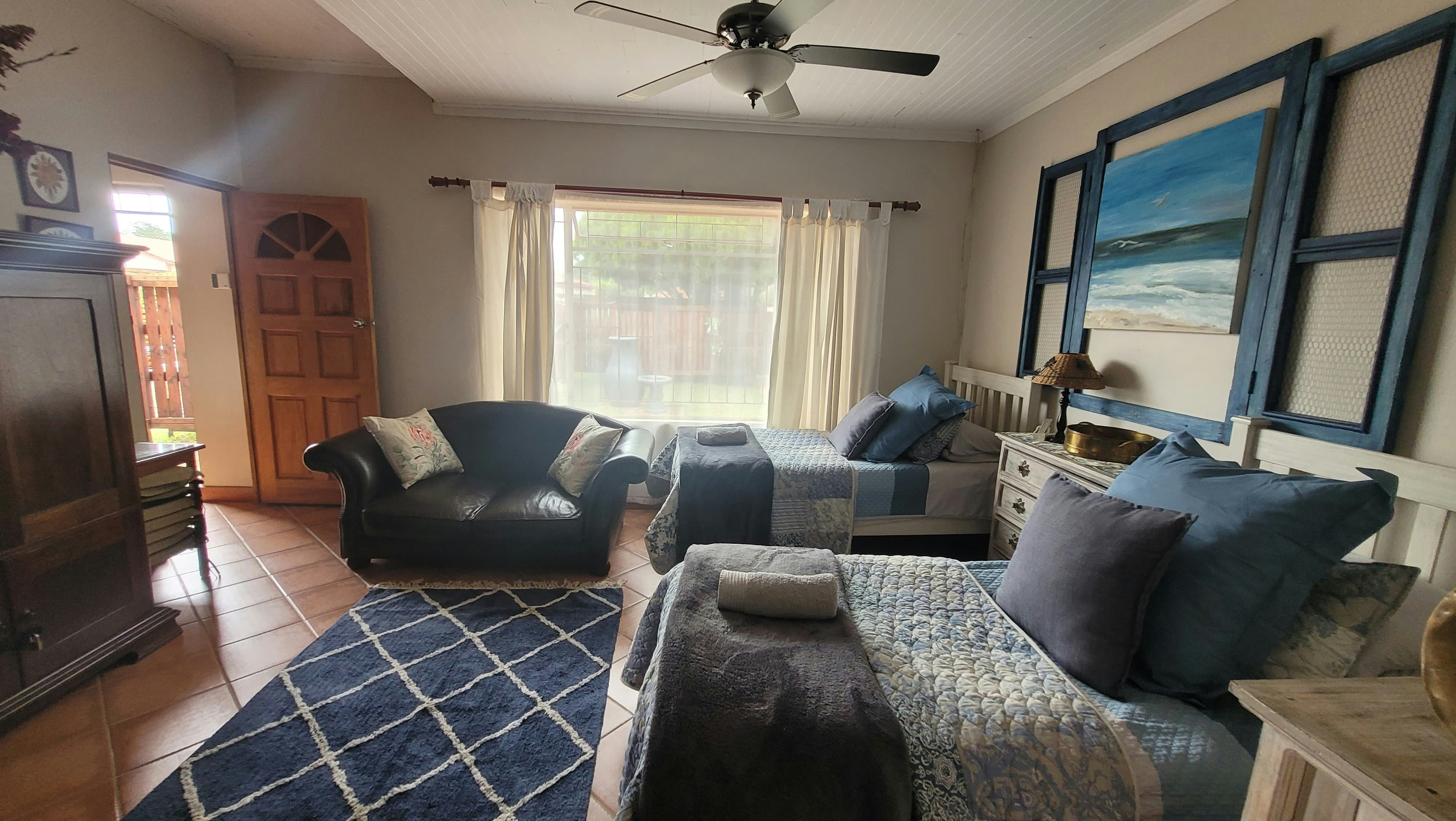 This first unit can accommodate 2 adults with a child. The bedroom is furnished with a double bed as well as a single bed, with aircon and ceiling fan while the bathroom is fitted with a shower. It has an open-plan lounge area with a ceiling fan and a TV with Netflix. The kitchen is equipped with a fridge-freezer, gas stove, air fryer kettle and microwave. Guests have access to a lounge suite and a TV with Netflix is available for guest's entertainment. The bathroom with shower only is accessible from the bedroom and the lounge. The unit has its own patio, own yard and its own remote-controlled gate. The unit has a carport with space for one vehicle or a second with prior arrangements.