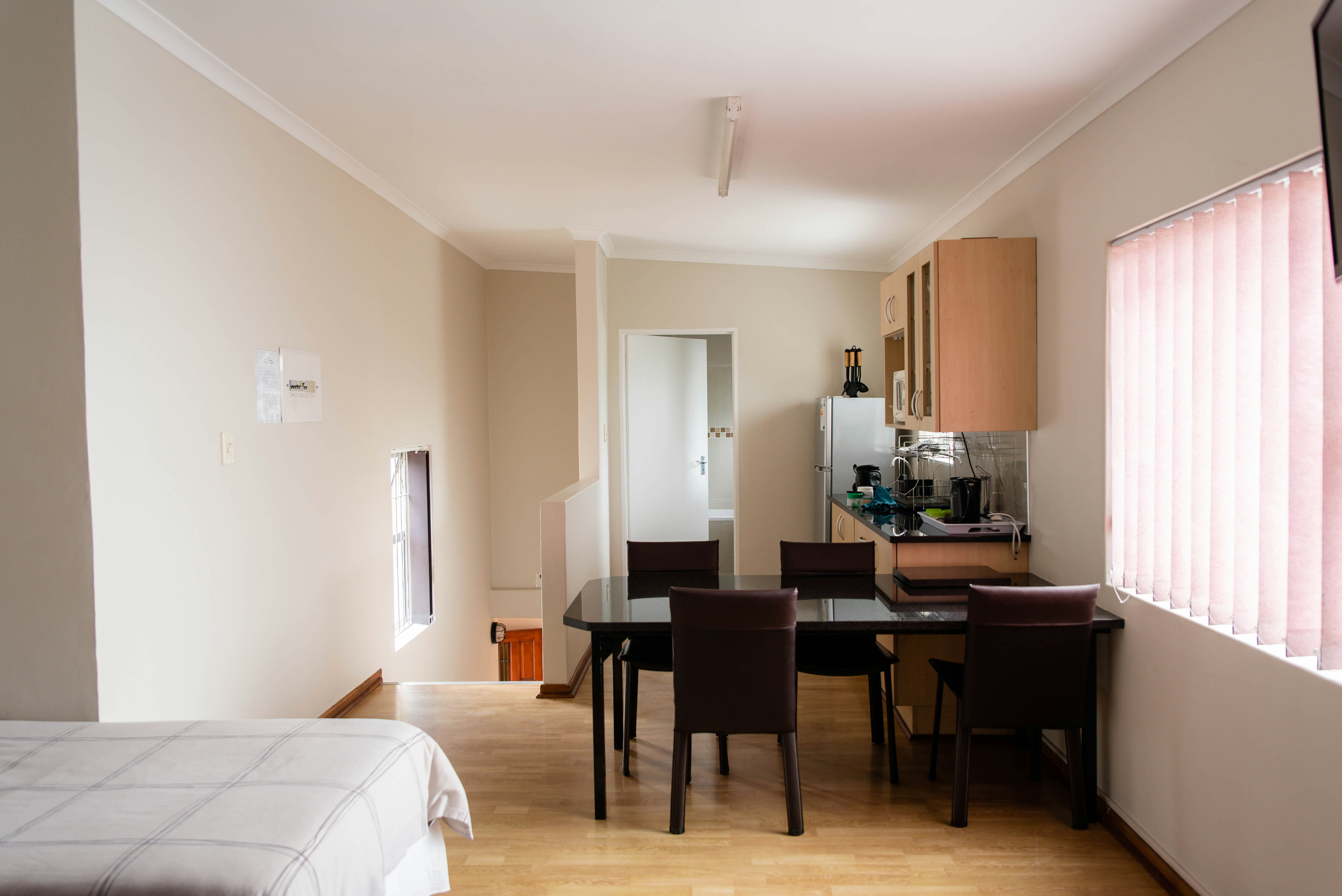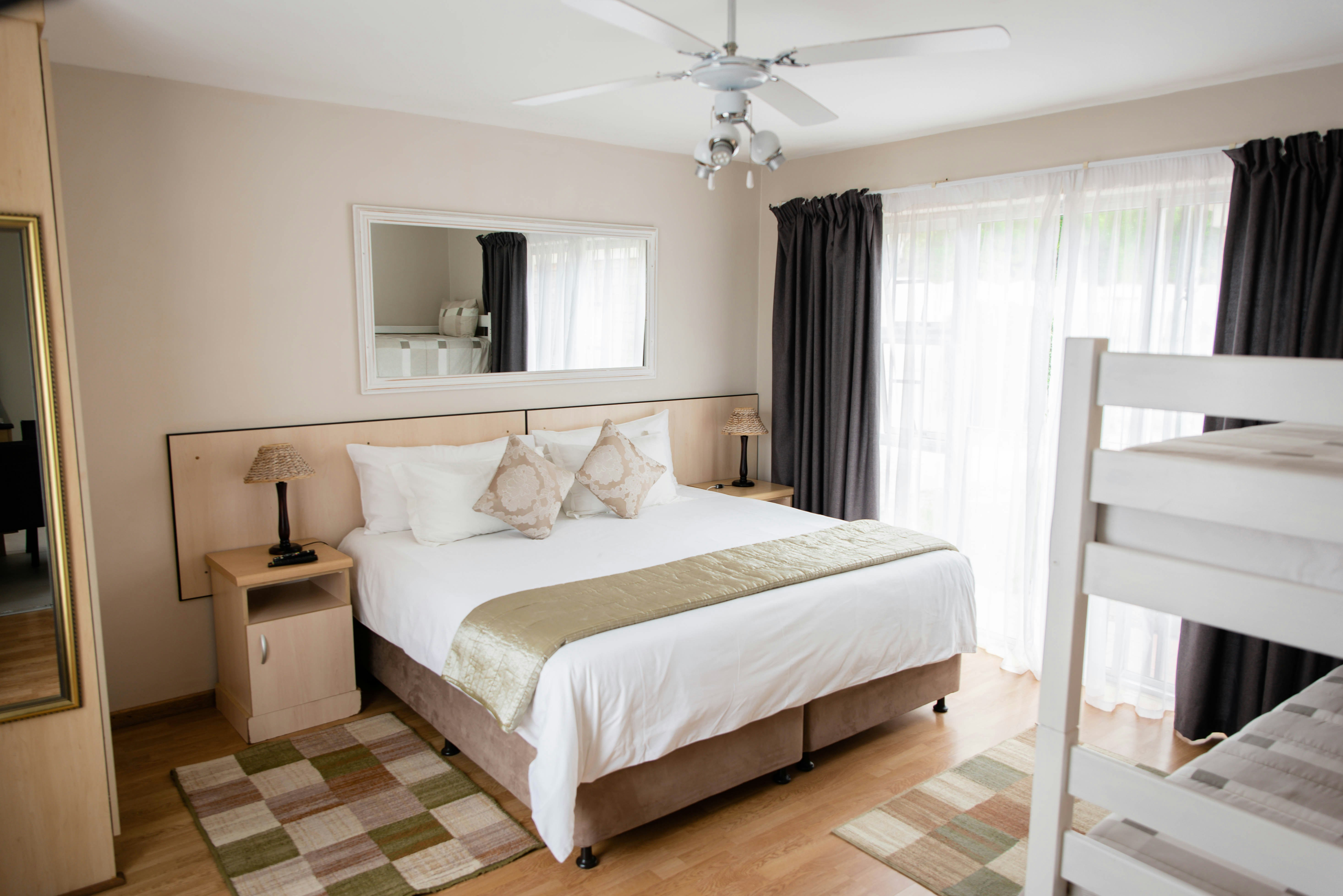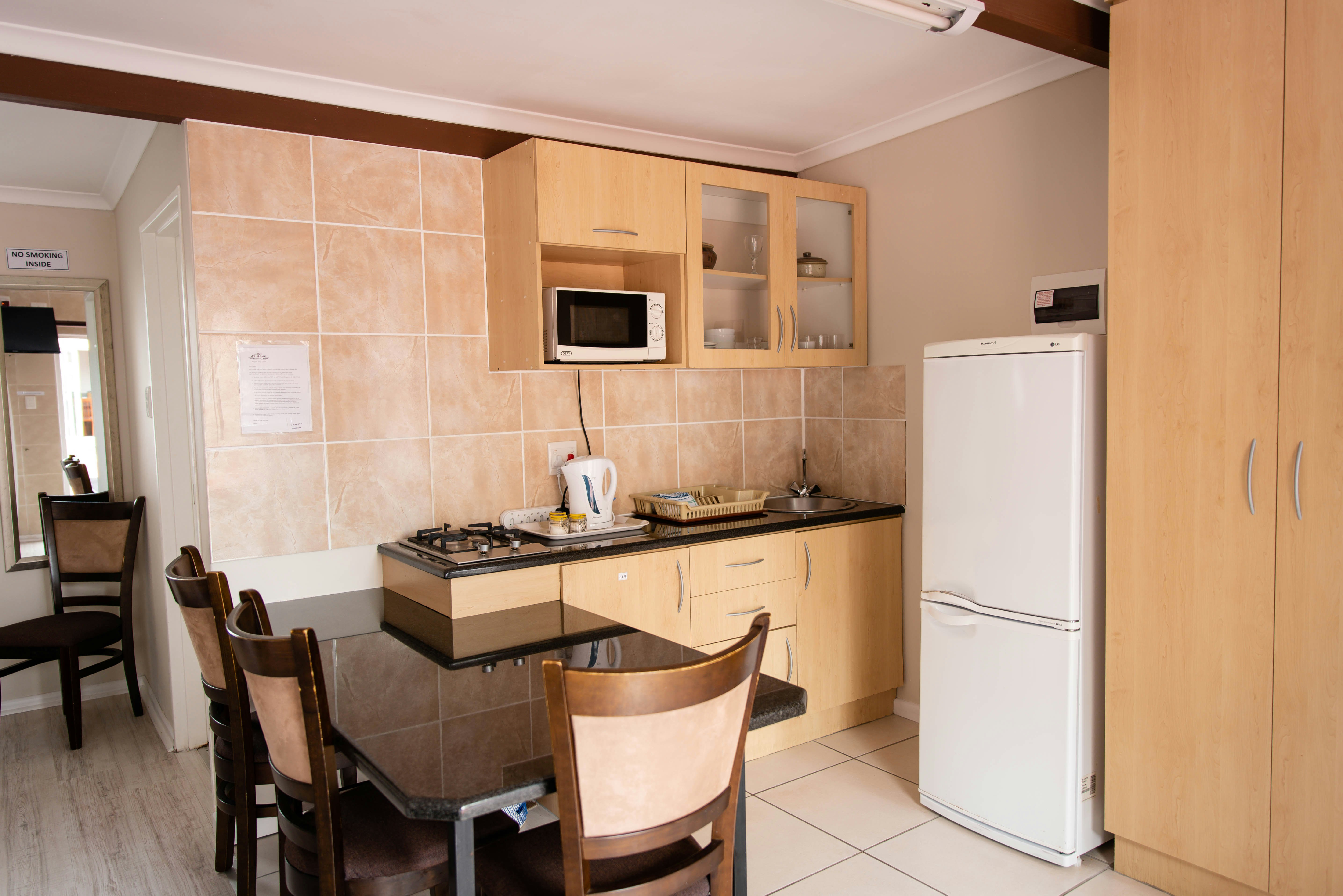 Accommodation is offered in a variety of guest rooms which can accommodate 2, 3 or 4 guests respectively. Each unit has its own private entrance, an en-suite bathroom, Wi-Fi, a TV with DStv Hotel Package, a bar fridge, microwave, and tea- and coffee- making facilities. Breakfast is available at an additional fee.