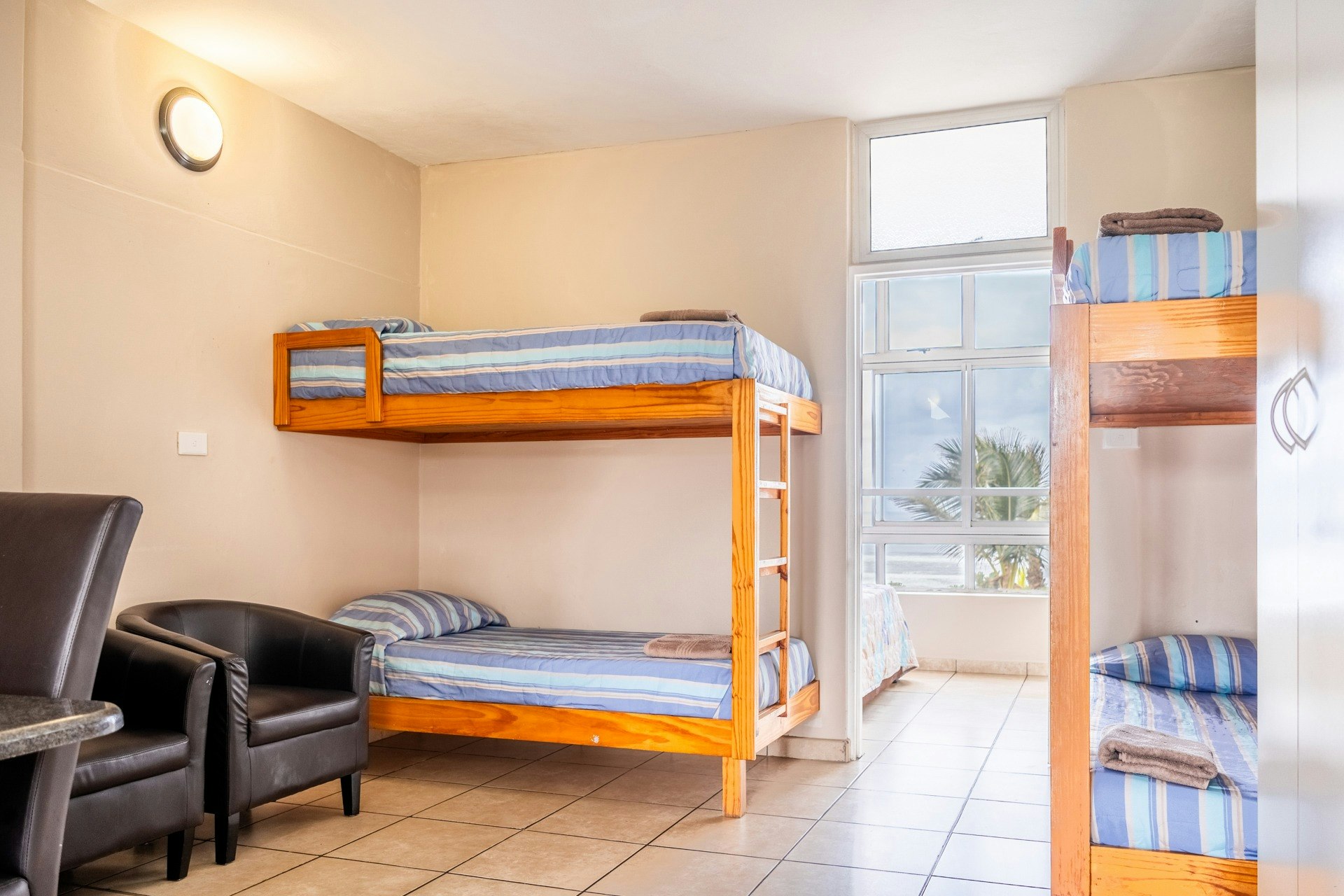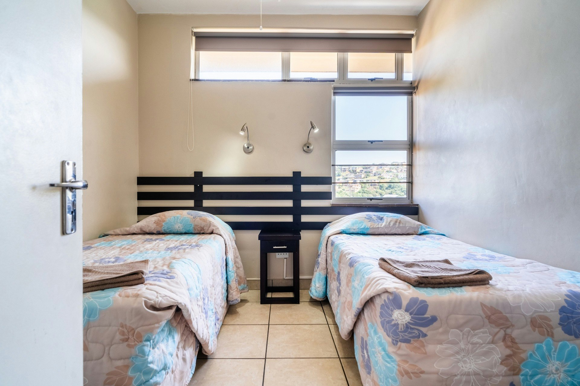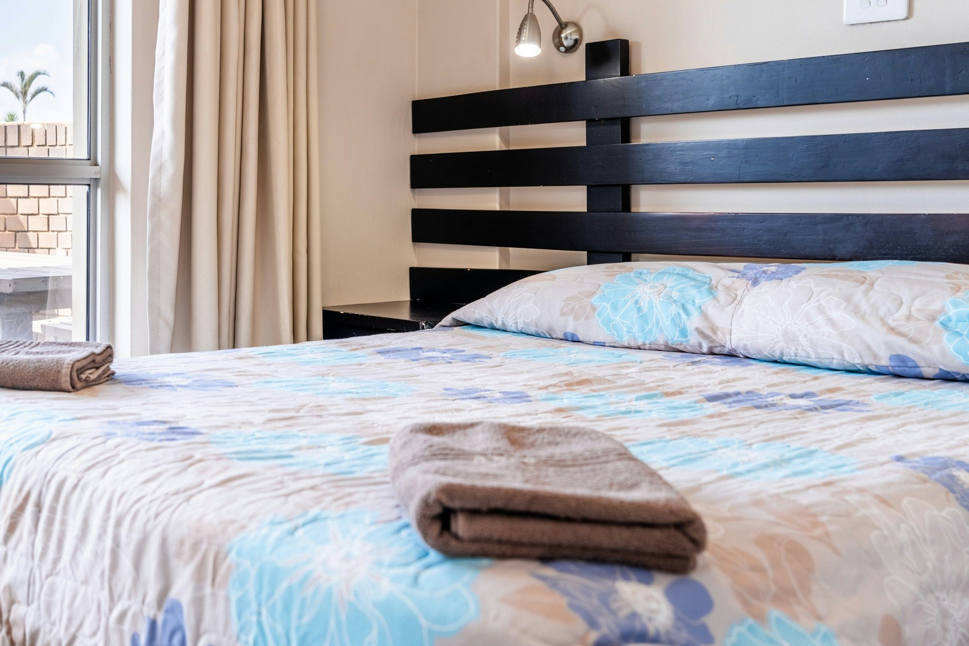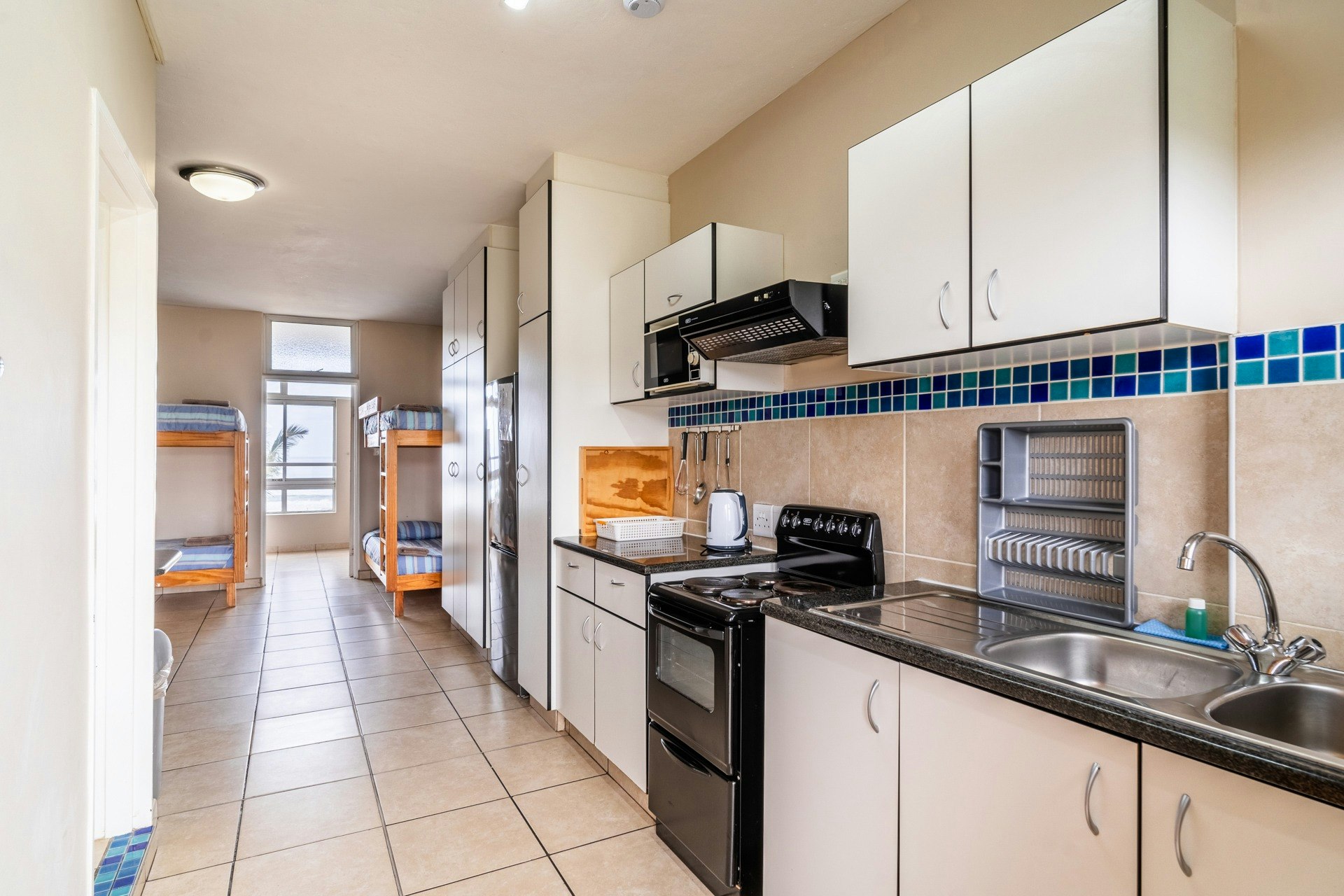 Accommodation comprises a selection of spacious, homely, and furnished apartments equipped for self-catering. The apartments, some with sea views and some with balconies, can accommodate between 2 and 6 guests. All units are equipped with a bathroom with a bath and/or shower, a TV with selected DStv channels, a kitchenette and a living area. The ground floor units have an outdoor patio with a table and chairs. Bedding and towels are replaced every fourth night, and guests are required to bring their own swimming towels. Guests have access to a communal swimming pool and braai facilities. Other resort facilities and activities include mini golf, trampolines, snooker, fishing, and an arcade. The nearby beach has shark nets and lifeguards for safe swimming.