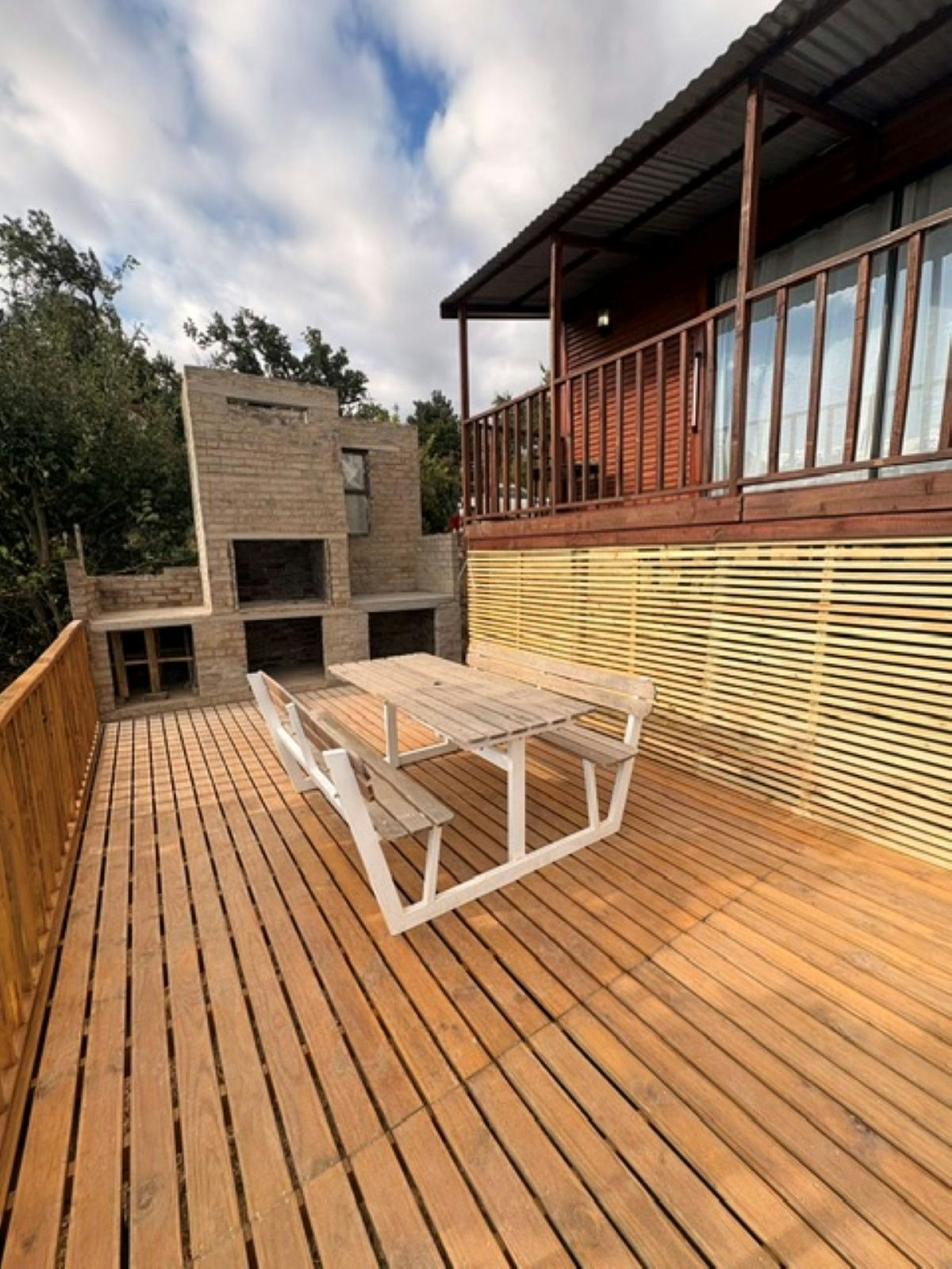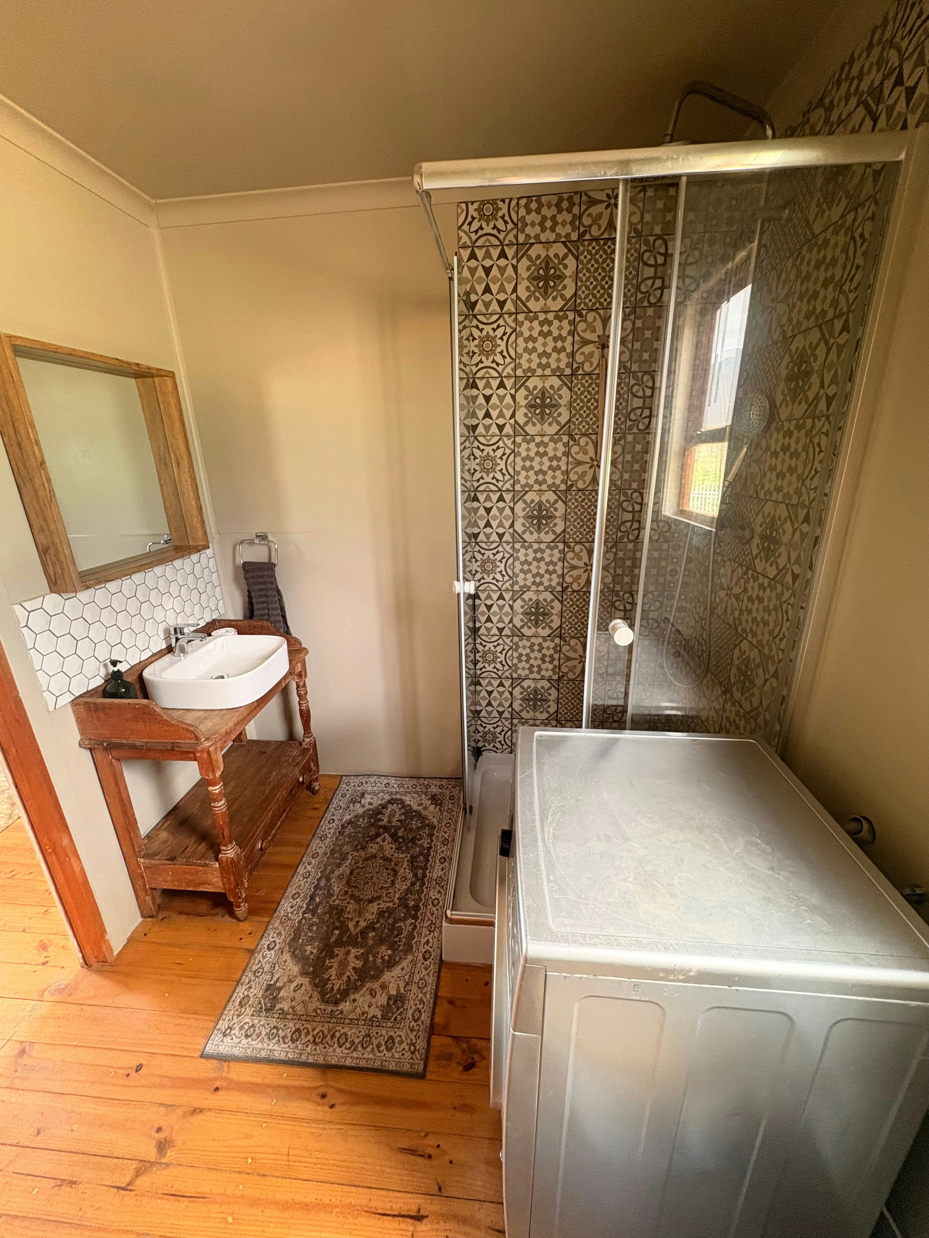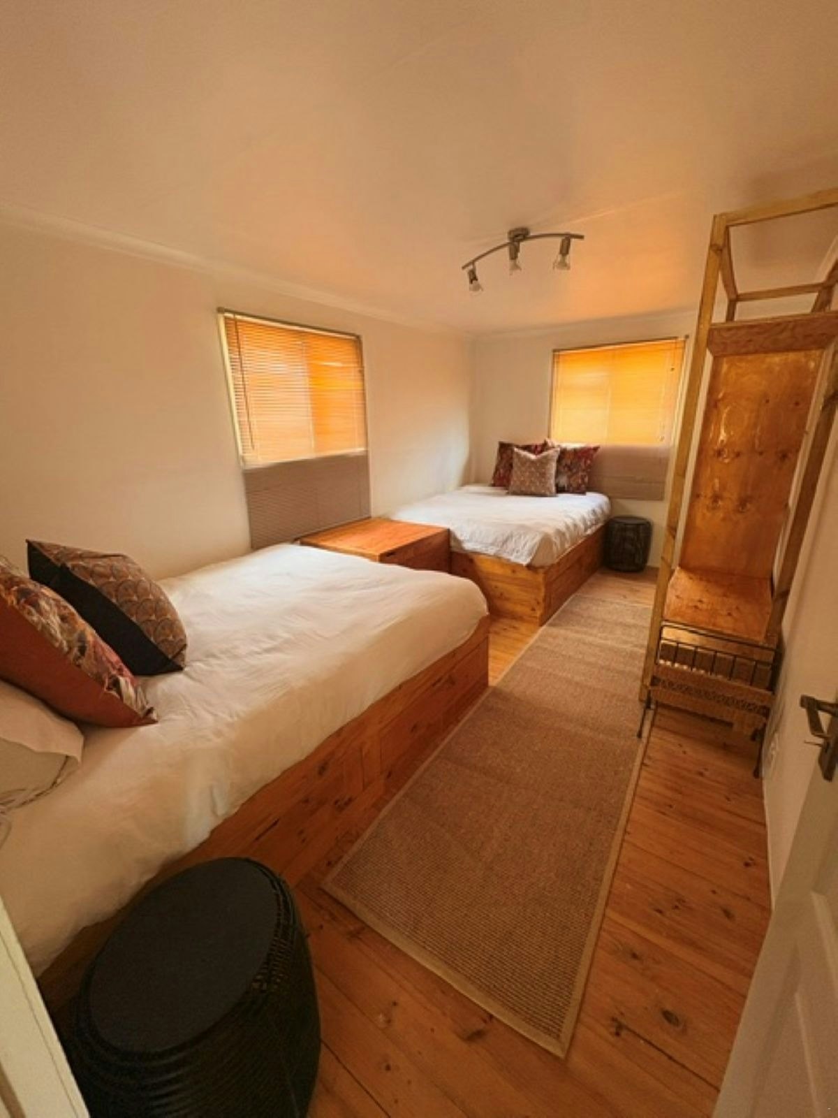 Minie Farm Manor House sleeps 6 guests in 2 bedrooms. Both bedrooms have a queen-size bed, and one bedroom also has 2 single beds. One bathroom is fitted with a bath, shower, basin and toilet, and the second bathroom has a shower, basin and toilet. There is also a guest bathroom with a toilet and basin. The kitchen is equipped with a fridge-freezer, microwave, stove-oven and kettle. The open-plan living area and lounge feature comfortable seating, a pool table, a TV with DStv, Wi-Fi, a fireplace, indoor braai and 2 outdoor braai areas. Guests are required to bring their own wood or briquettes. The house can accommodate an additional 9 guests at an extra cost and is not affected by load shedding.