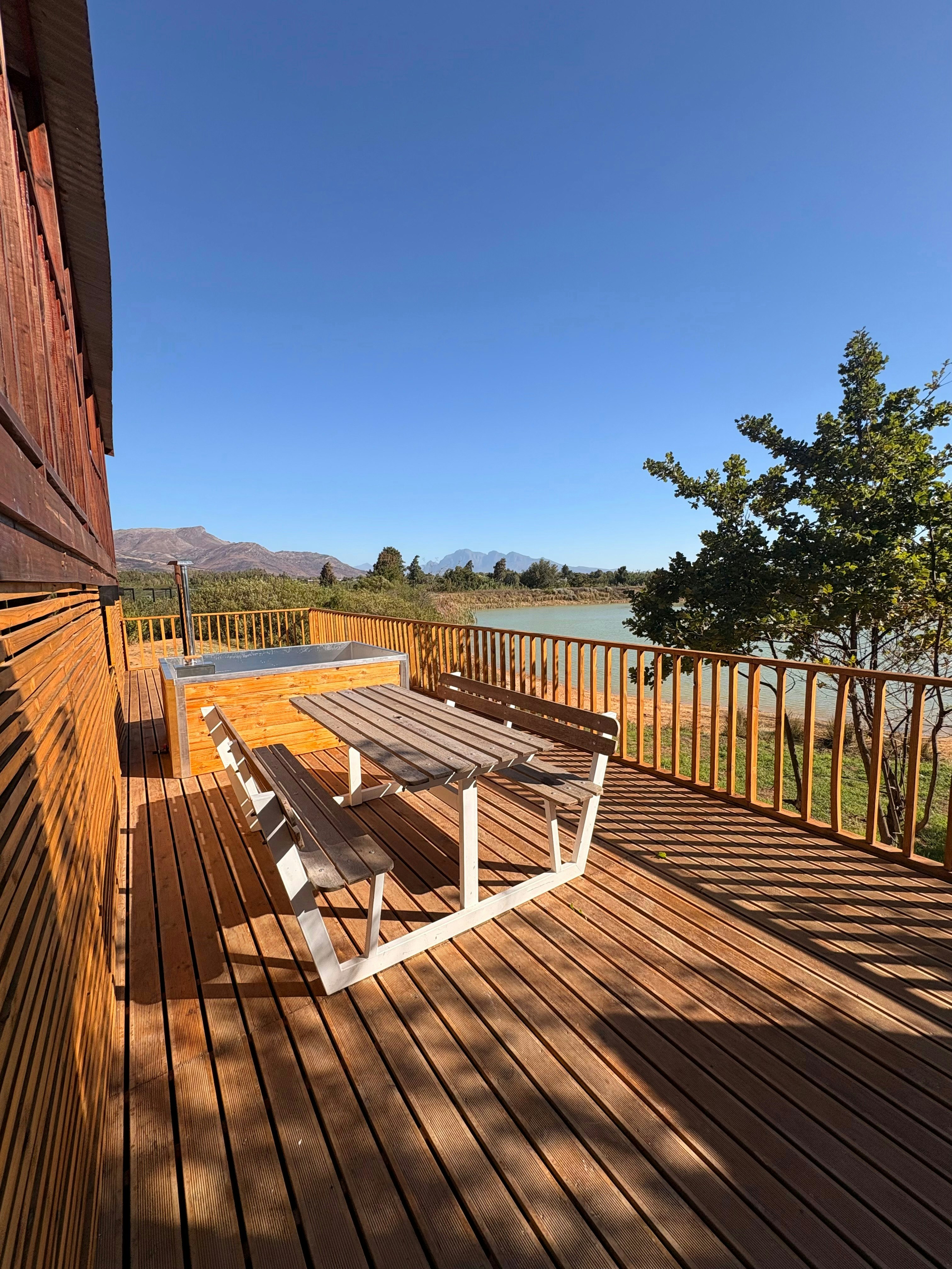 Minie Farm Manor House accommodates up to 6 guests in 2 bedrooms. Both bedrooms are furnished with queen-size beds, and one bedroom also includes 2 single beds. One bathroom is fitted with a bath, shower, basin, and toilet, while the second bathroom has a shower, basin, and toilet. There is also a guest bathroom with a toilet and basin. The kitchen is equipped with a fridge-freezer, microwave, stove and oven, and a kettle. The open-plan living area and lounge offer comfortable seating, a pool table, a TV with DStv, Wi-Fi, and a fireplace. The house also features an indoor braai area, as well as two outdoor braai areas. Guests are required to bring their own wood or briquettes. The house can accommodate an additional 9 guests at an extra cost and is not affected by load shedding.